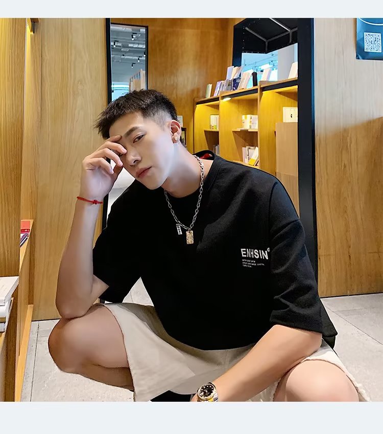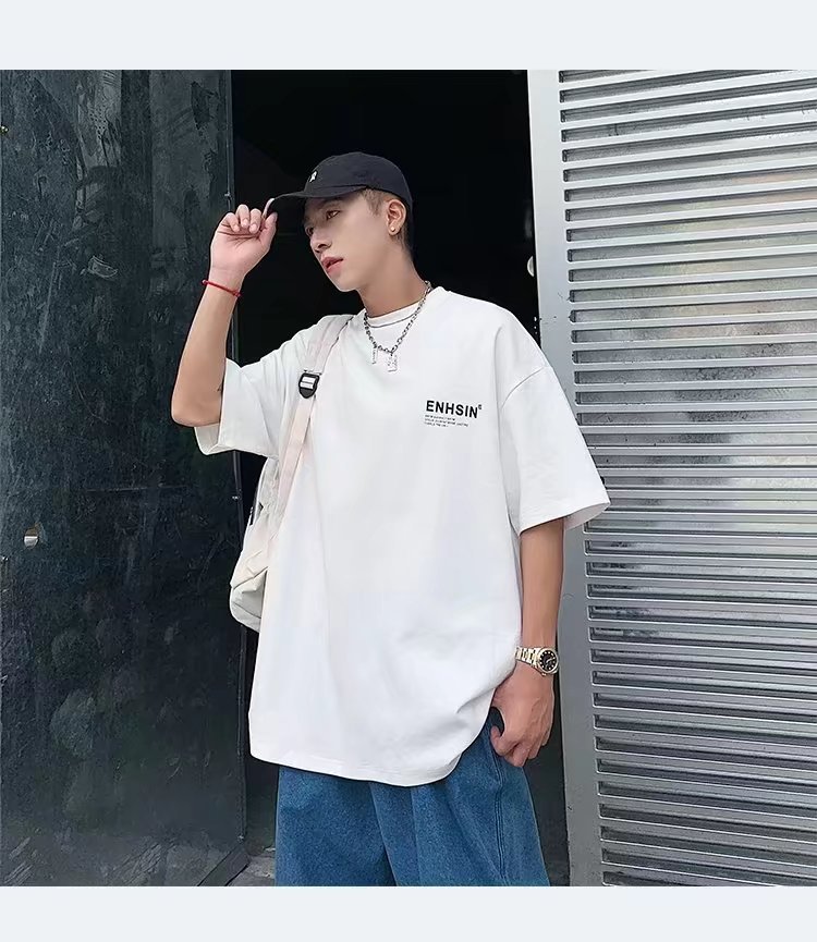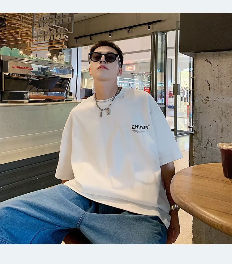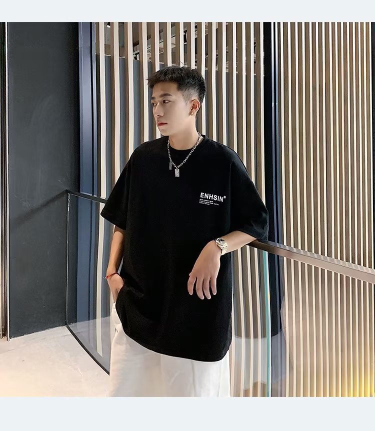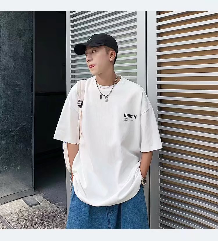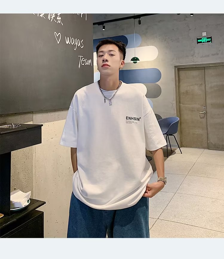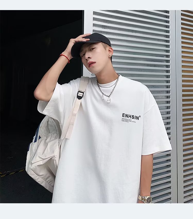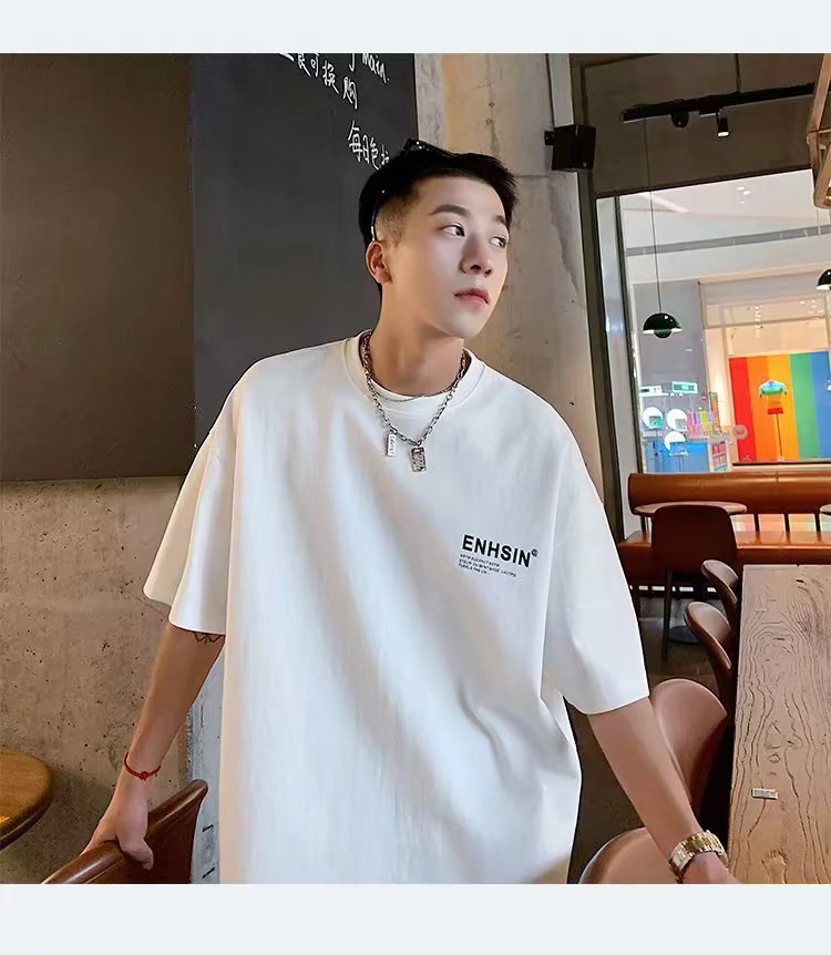 260g 헤비 코튼 반팔 티셔츠 남성 여름 홍콩 스타일, 패션 브랜드 루안 잘 생긴 간단한 편지 반팔 티셔츠스토어 가기