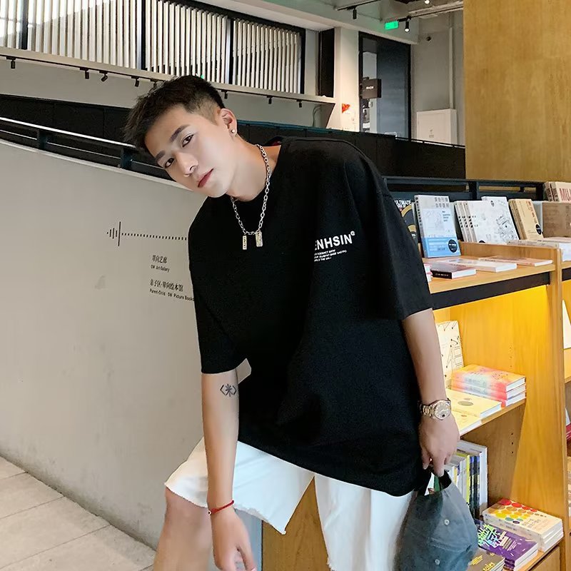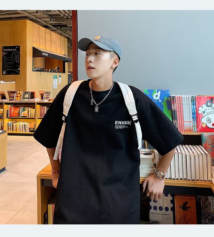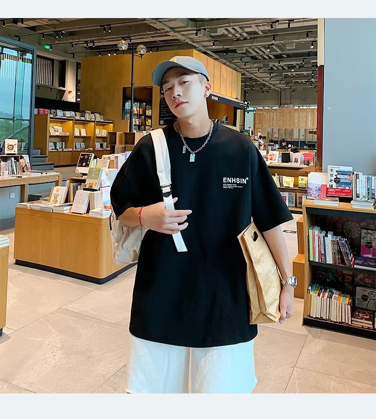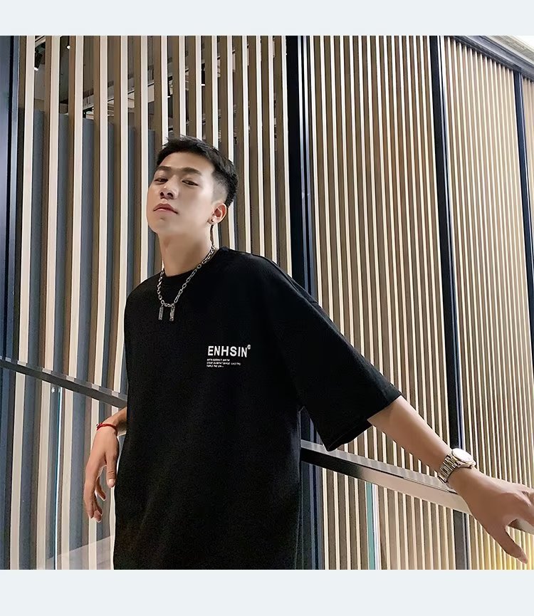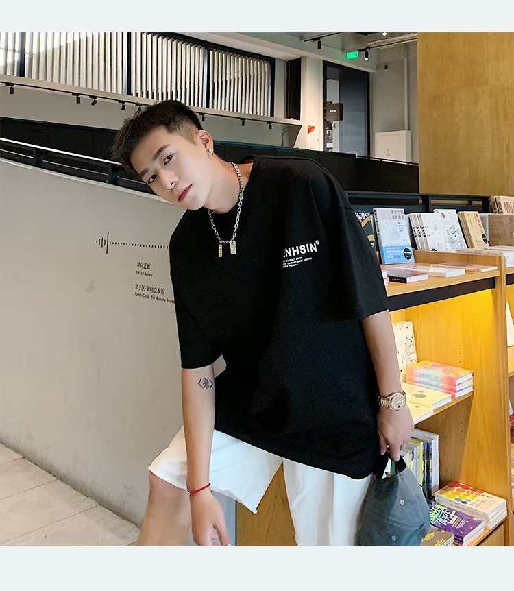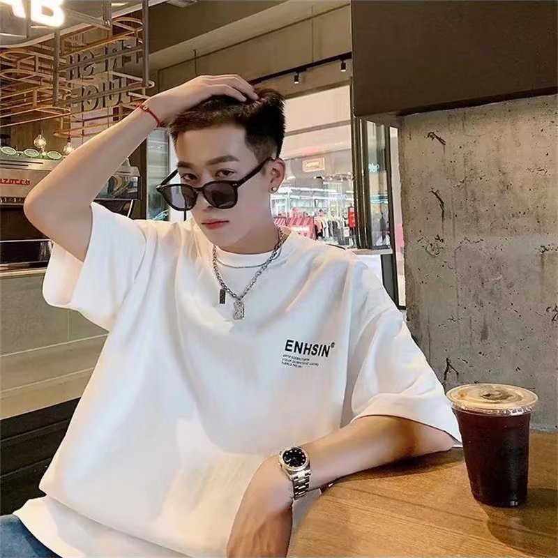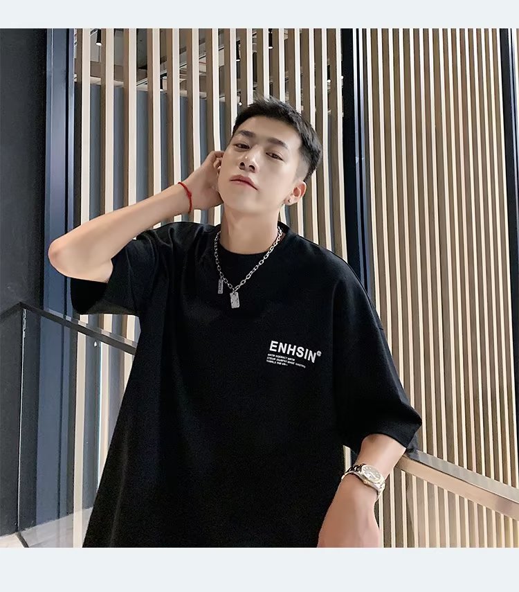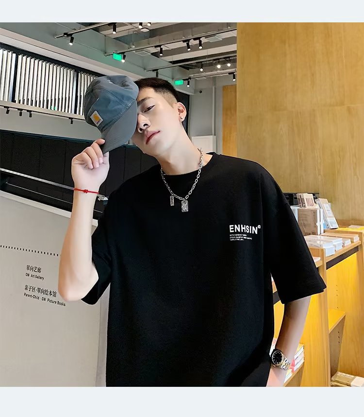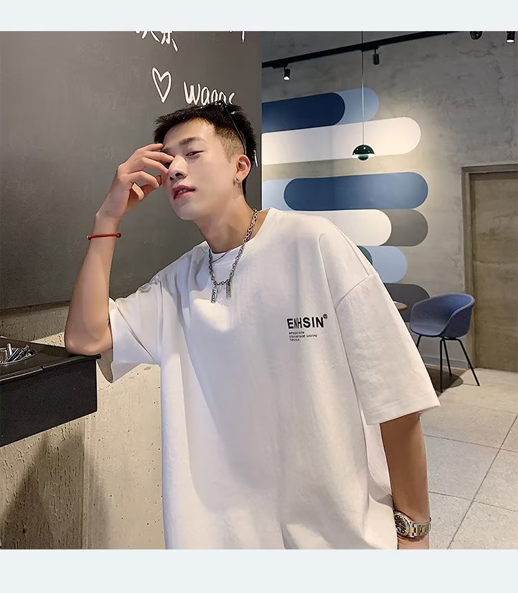 260g 헤비 코튼 반팔 티셔츠 남성 여름 홍콩 스타일, 패션 브랜드 루안 잘 생긴 간단한 편지 반팔 티셔츠스토어 가기