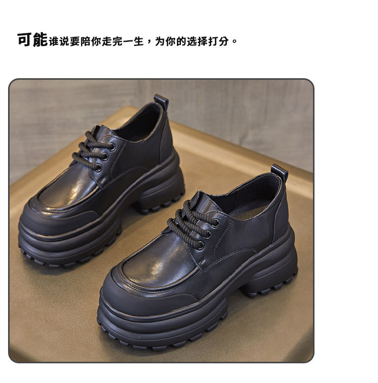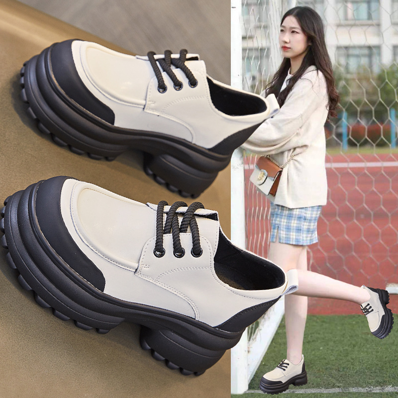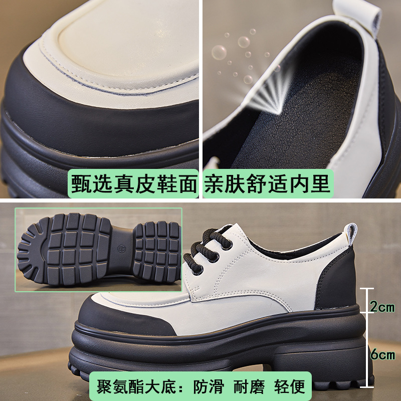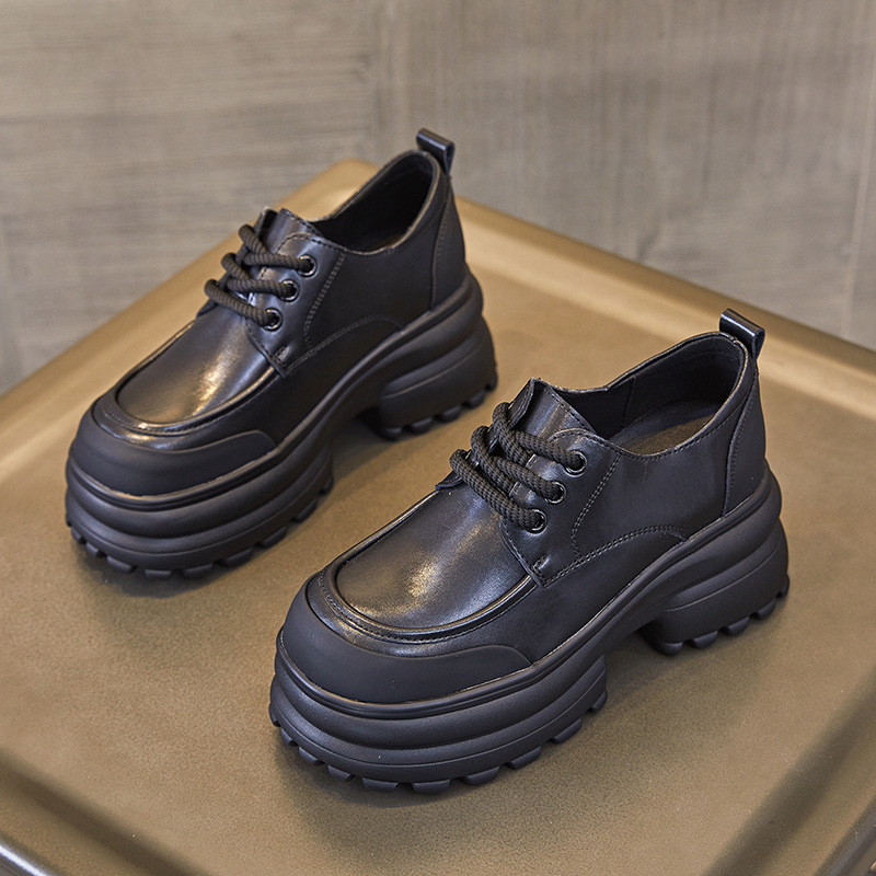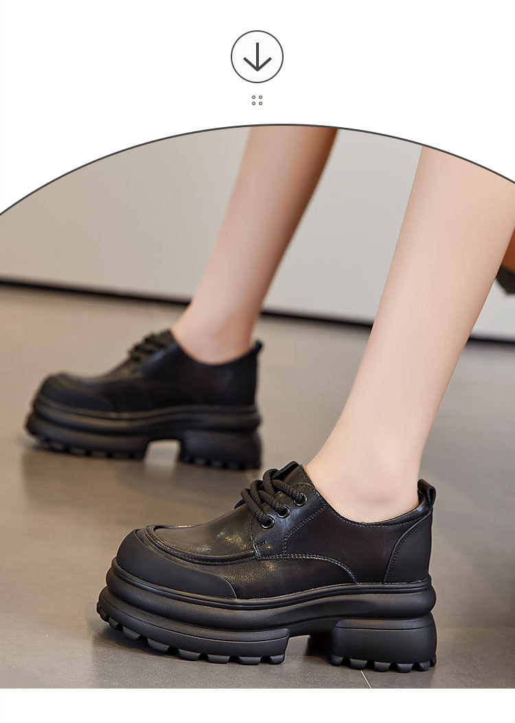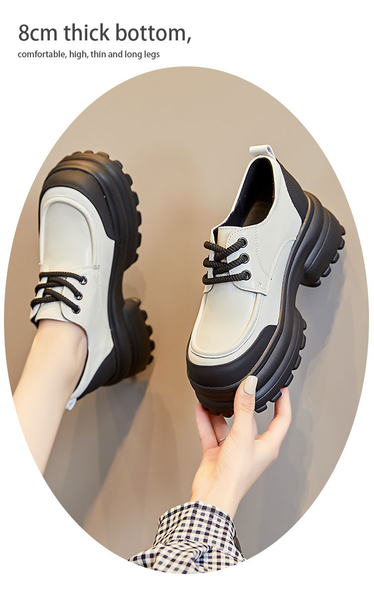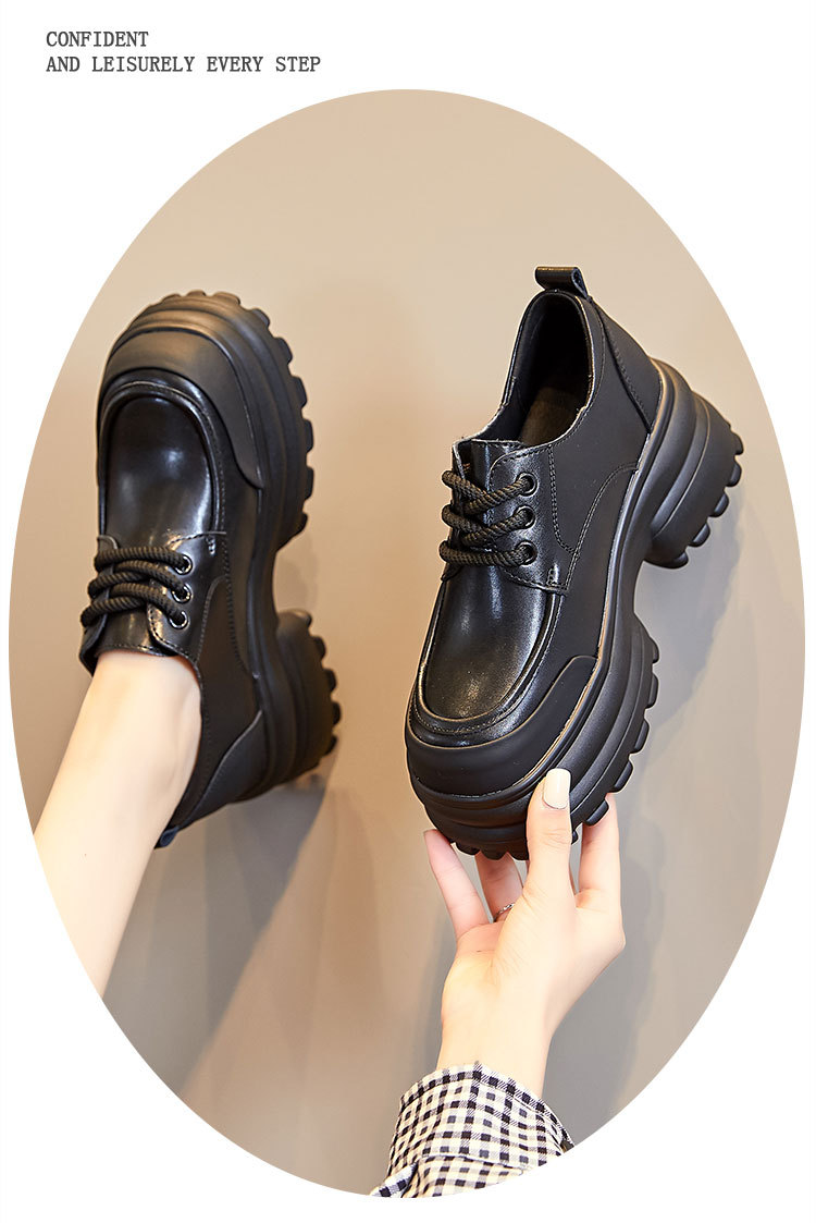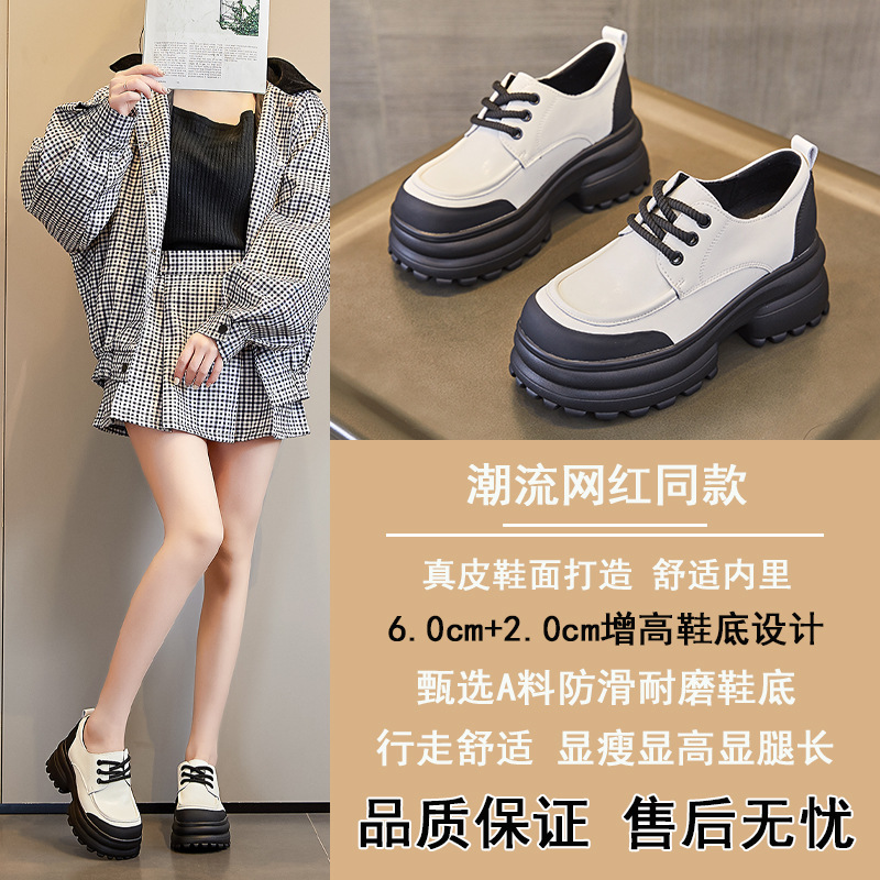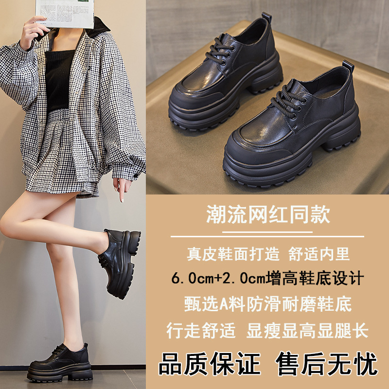 여성을위한 정품 가죽 로퍼 2024 봄 새로운 두꺼운 밑창 증가 8CM 작은 가죽 신발 캐주얼 레이스 업 트렌디 한 작은 신발스토어 가기