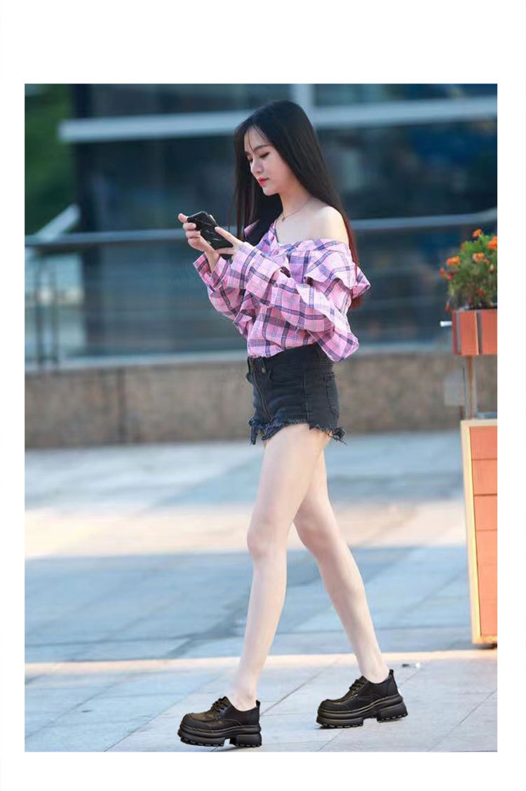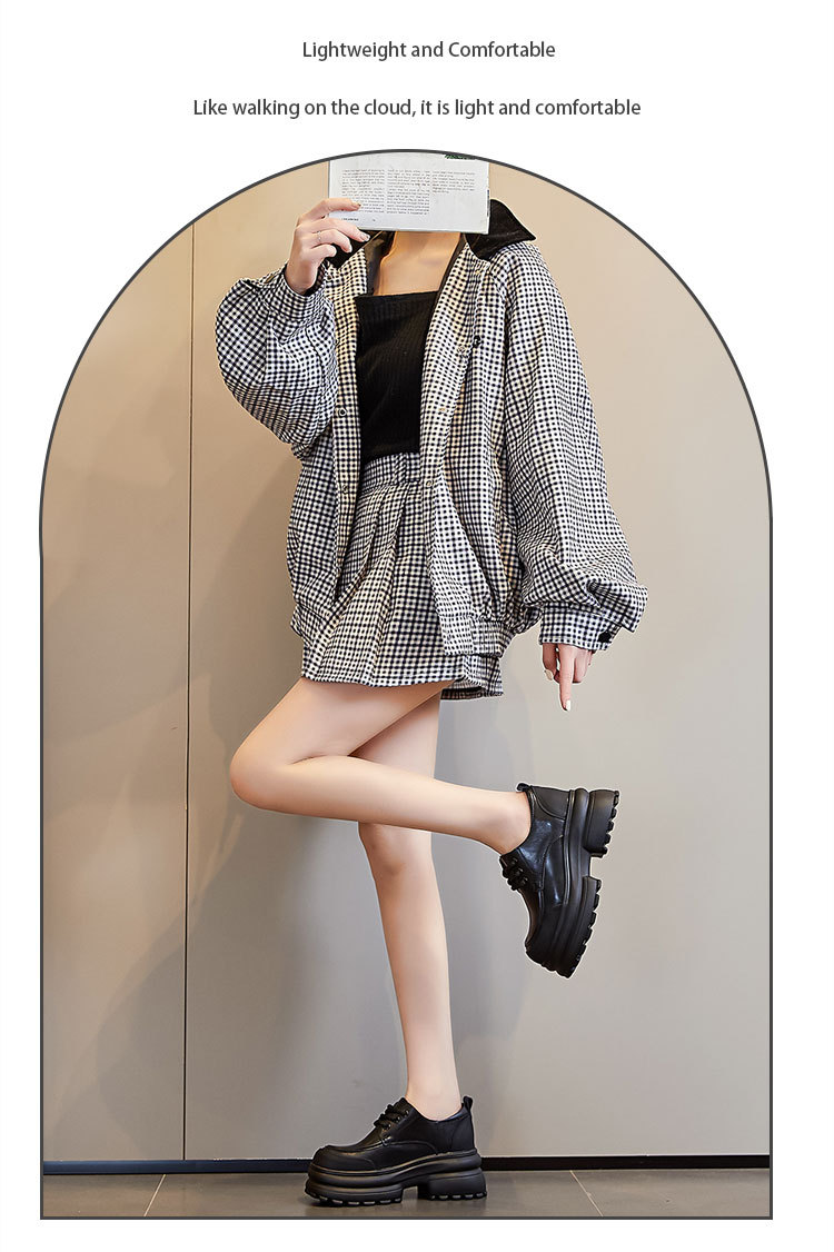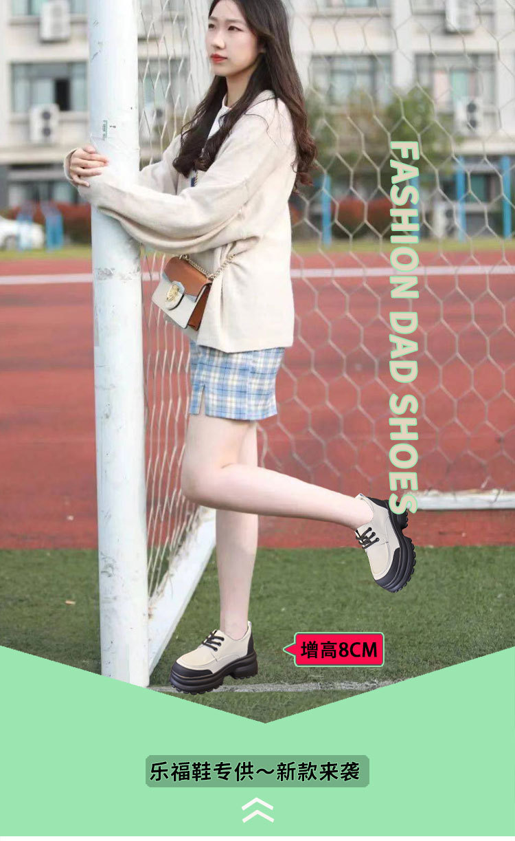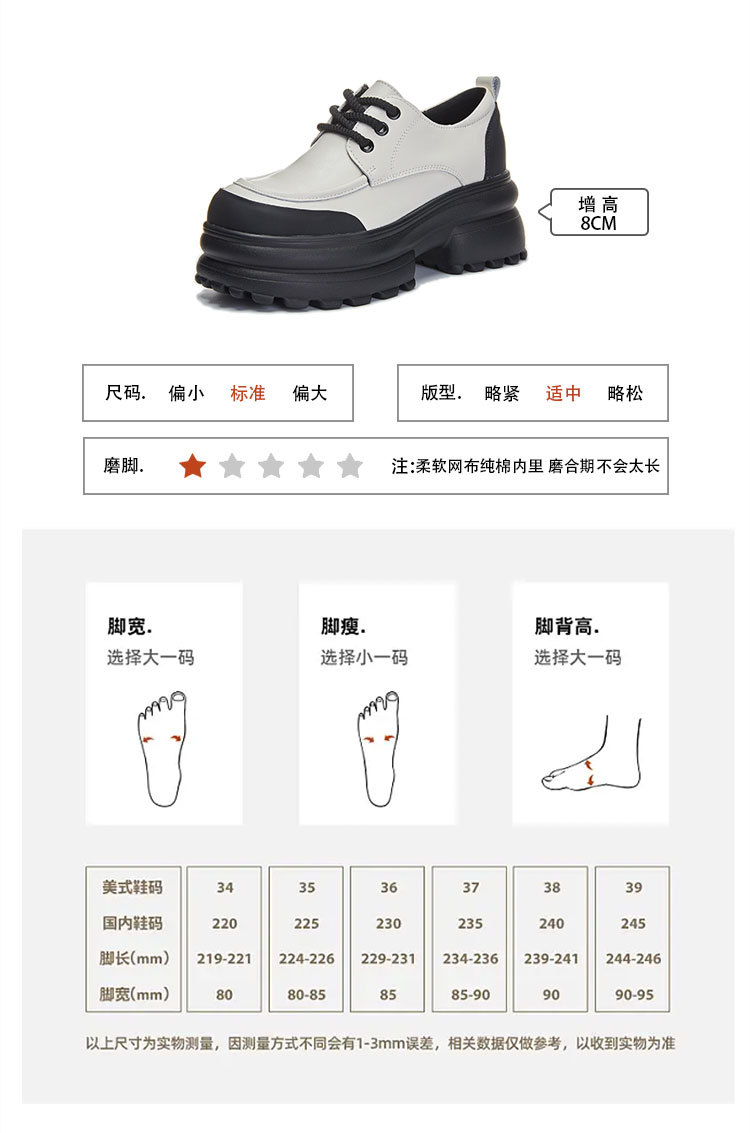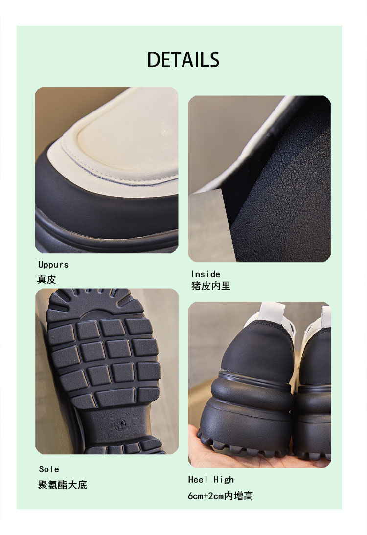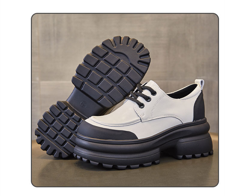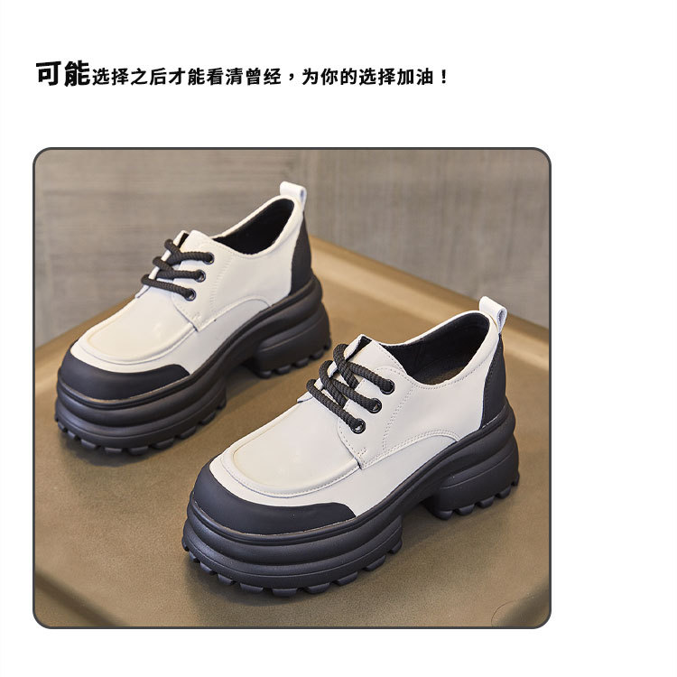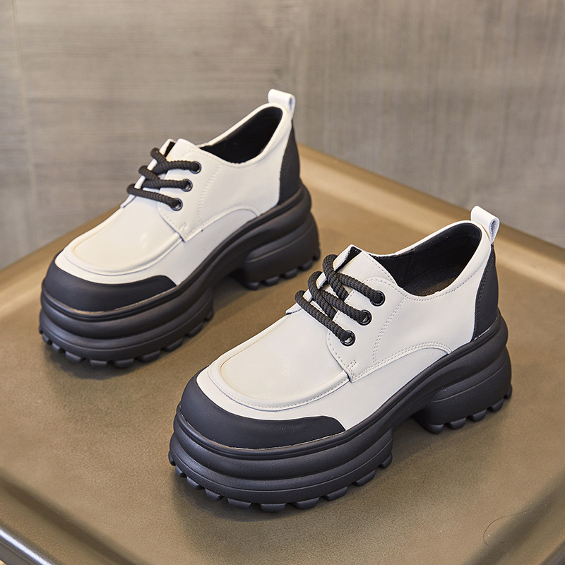 여성을위한 정품 가죽 로퍼 2024 봄 새로운 두꺼운 밑창 증가 8CM 작은 가죽 신발 캐주얼 레이스 업 트렌디 한 작은 신발스토어 가기