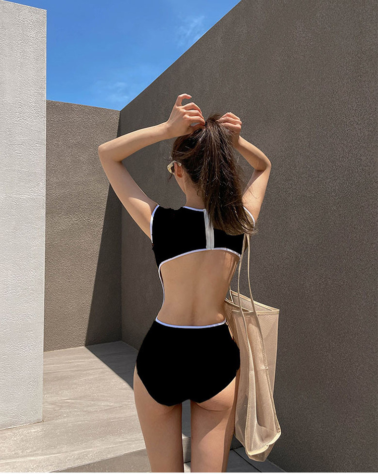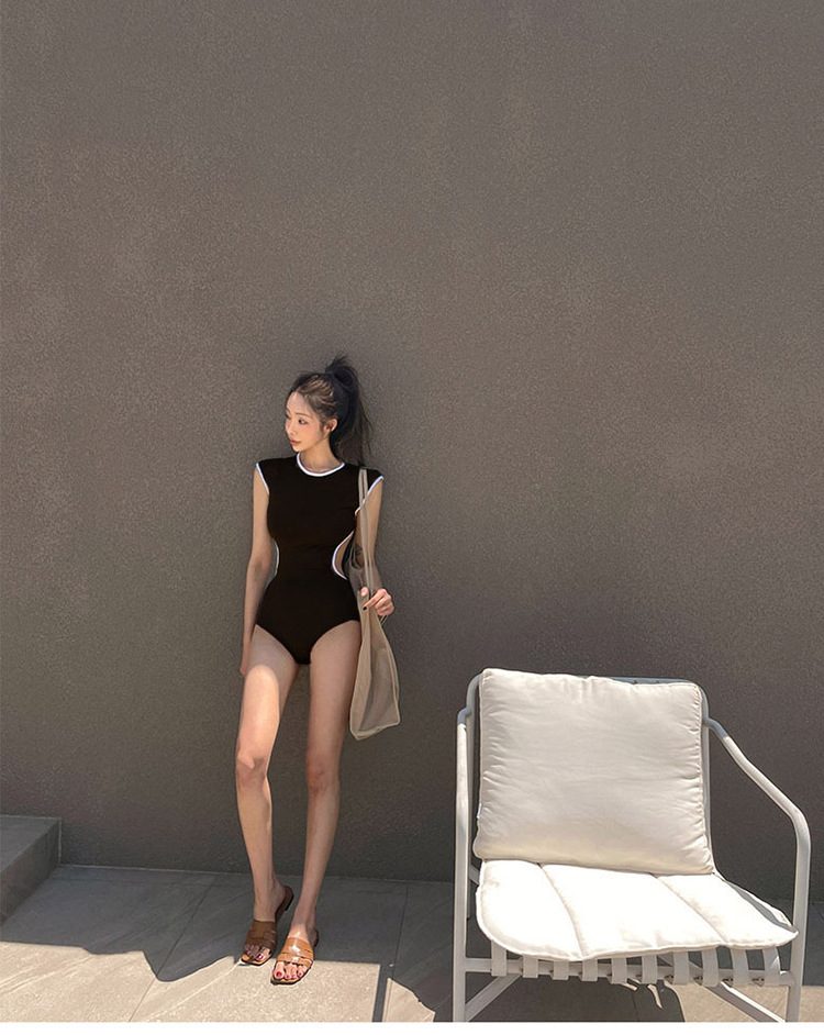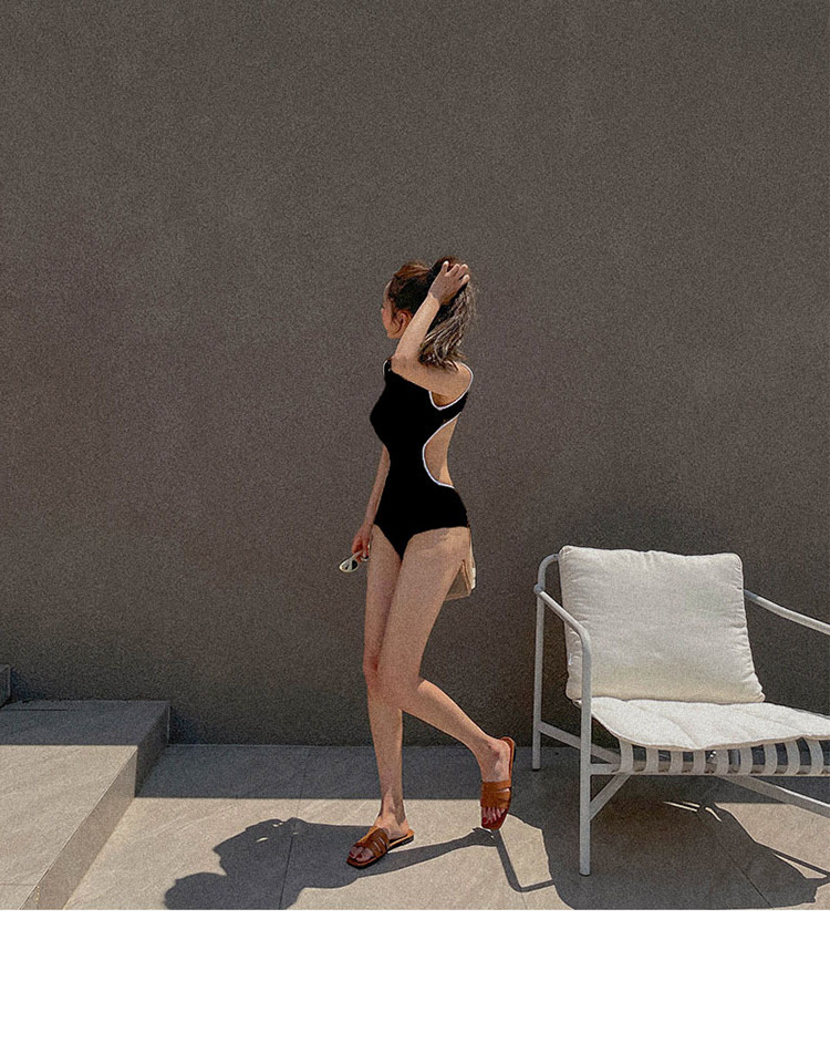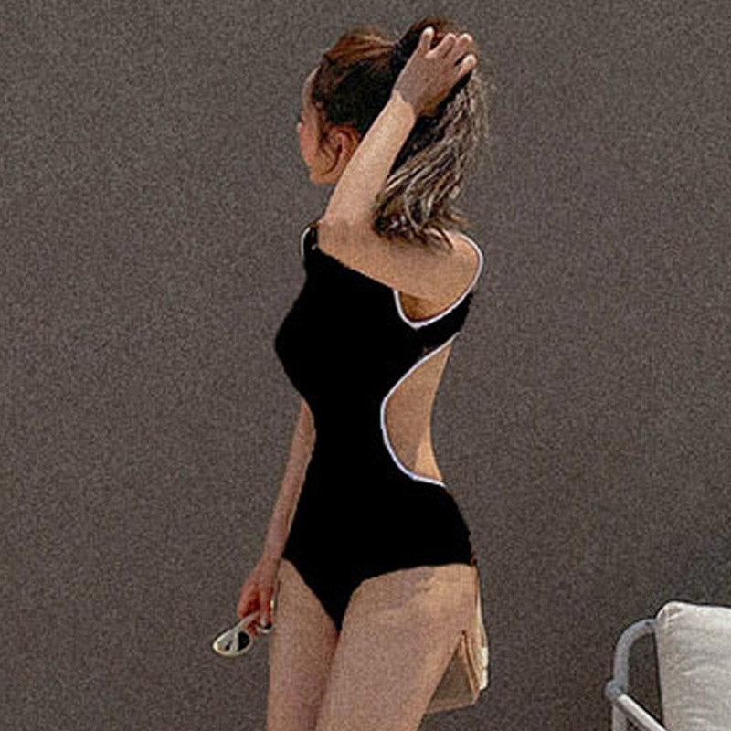 원피스 수영복 여성의 등이없는 슬림 핏 배꼽 커버 보수적 인 민소매 단색 작은 섹시한 휴가 온천 수영복스토어 가기
