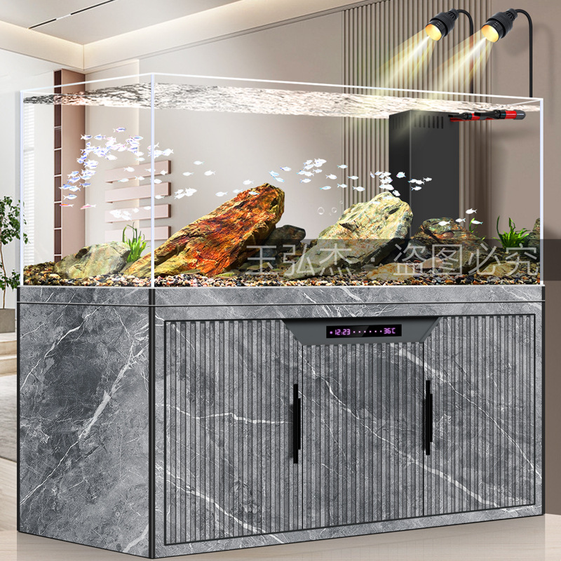 네이티브 스트림 탱크 물고기 탱크 지능형 물없는 슈퍼 화이트 유리 바닥 필터 생태 풍경 물 탱크 수족관스토어 가기