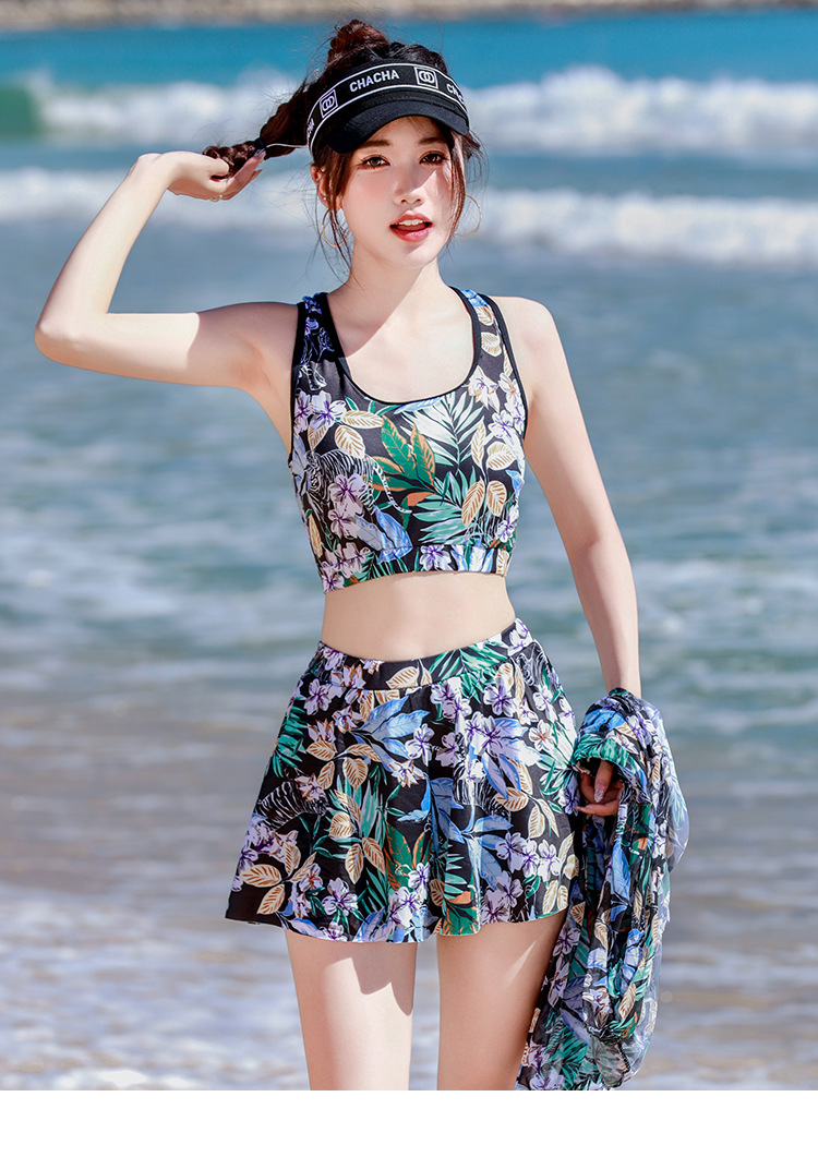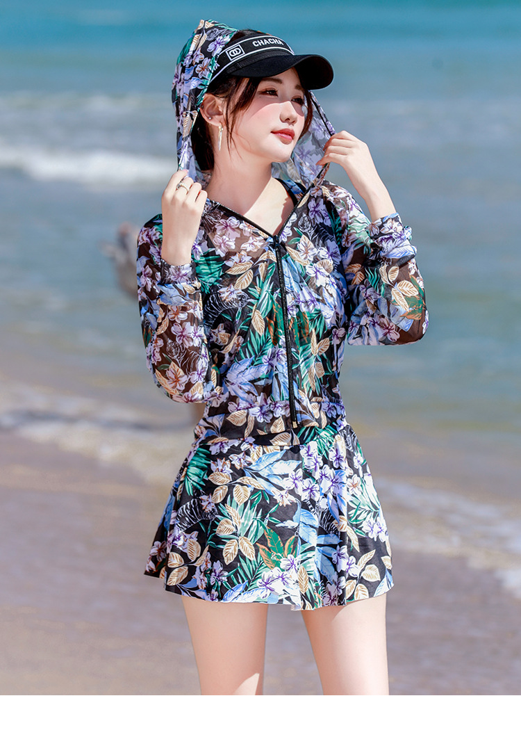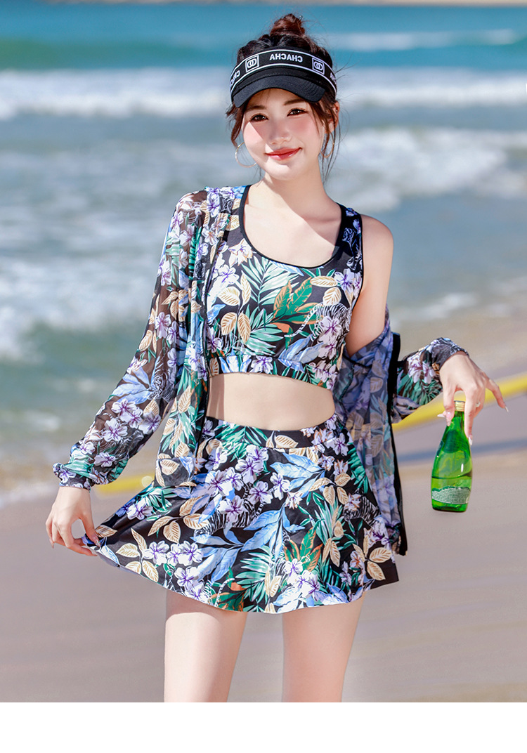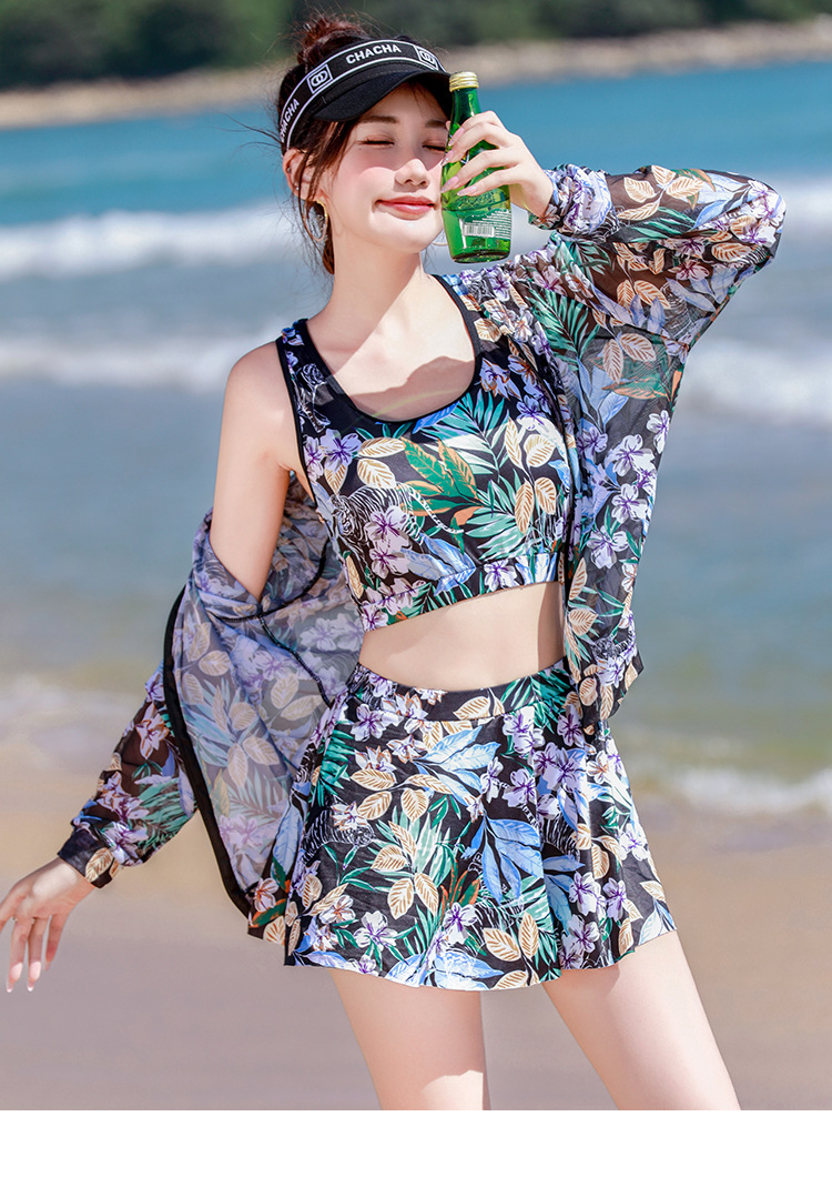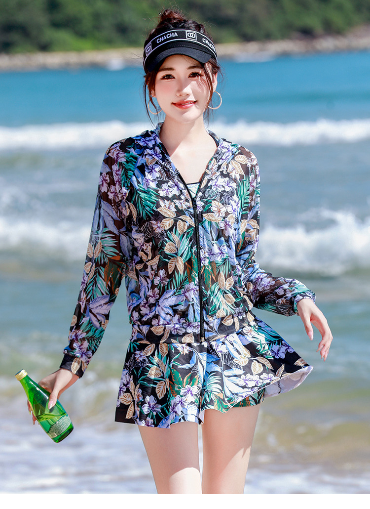 2025 신상 여성 수영복, 보수적인 블라우스, 스플릿 3피스 세트, 긴팔 자외선 차단 휴가, 살 커버, 슬리밍 온천 수영복스토어 가기