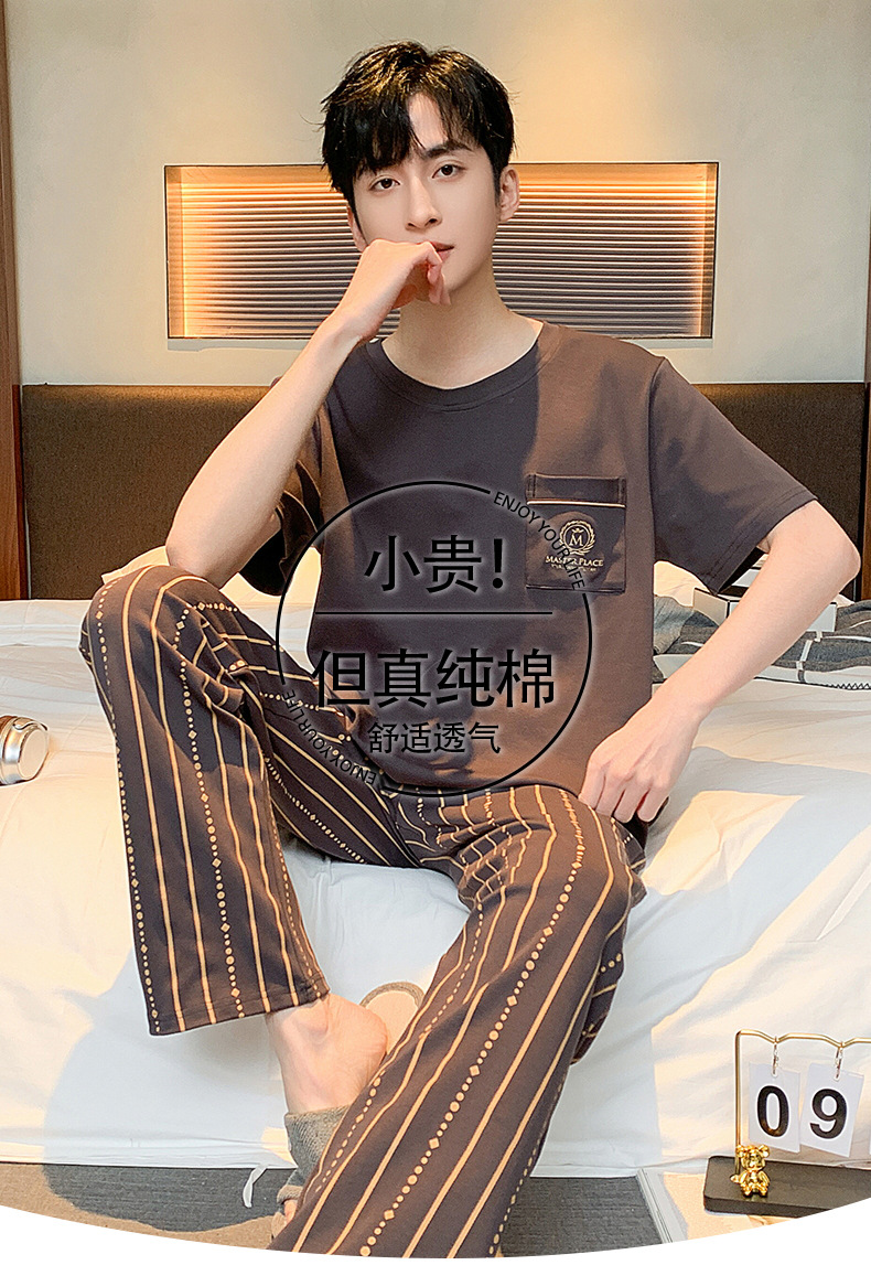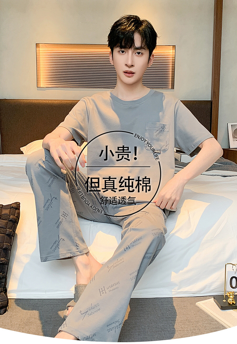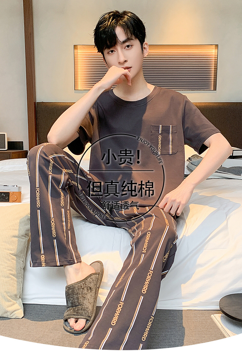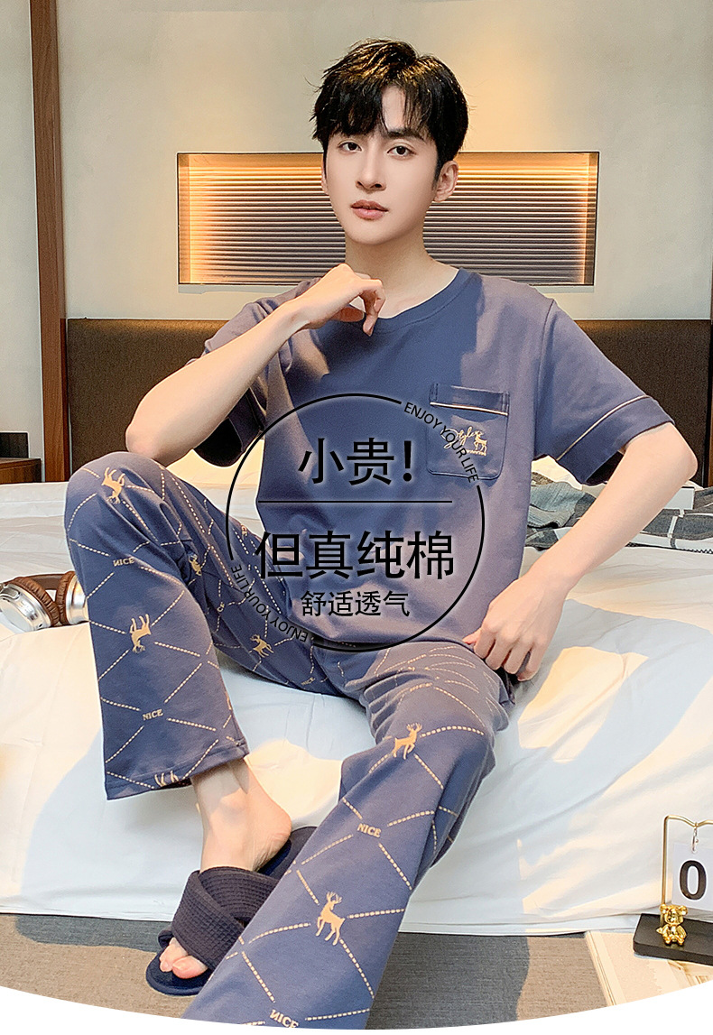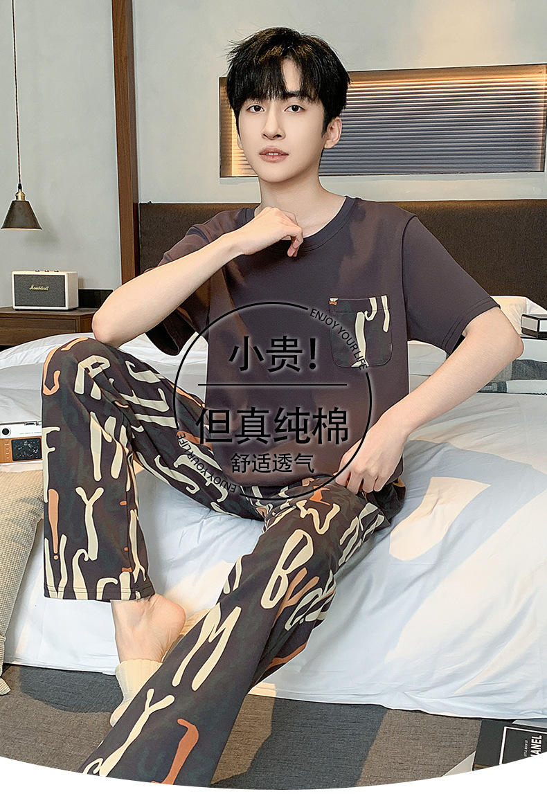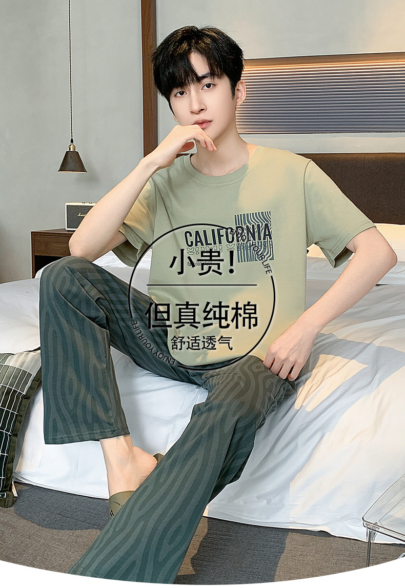 100% 면 잠옷 남성 여름 반팔 바지 간단한 캐주얼 플러스 사이즈 둥근 목 겉옷 홈웨어 세트스토어 가기