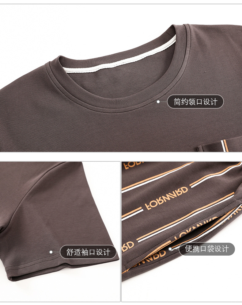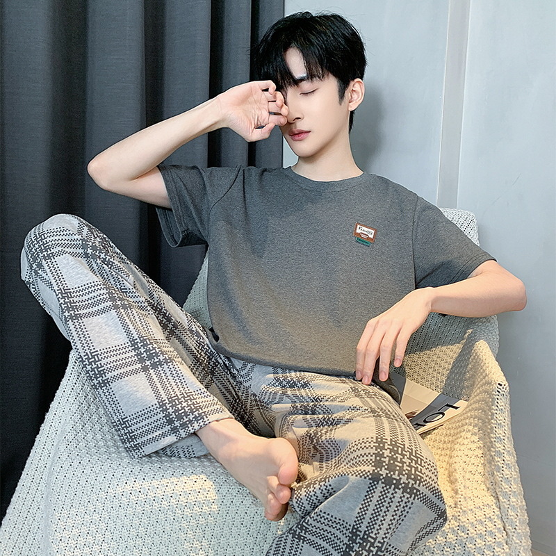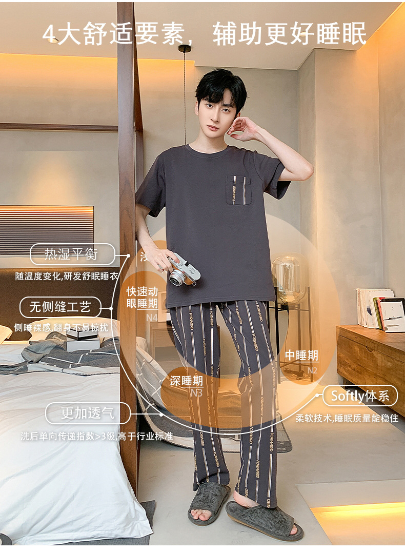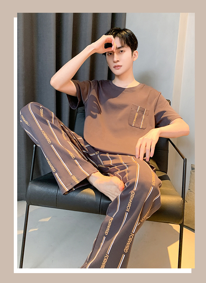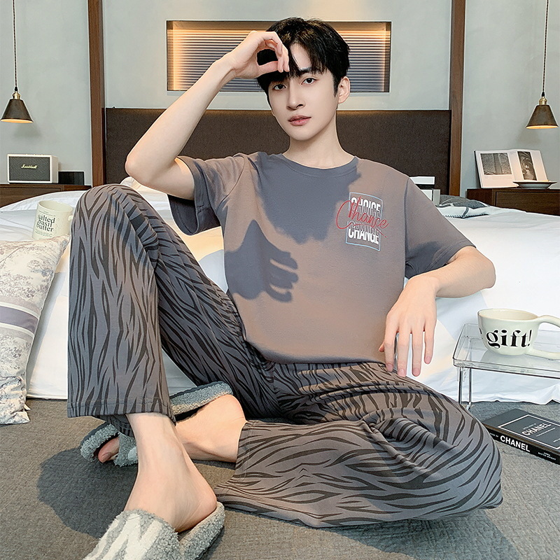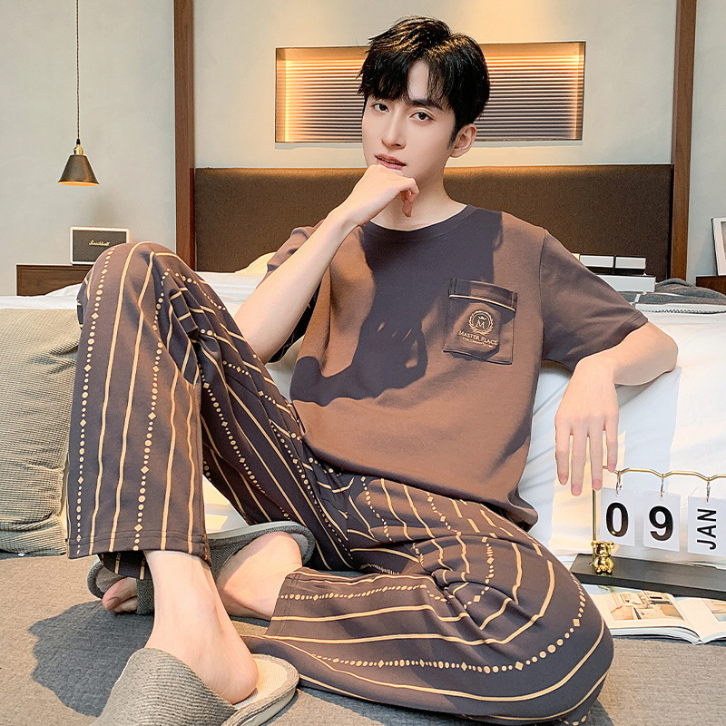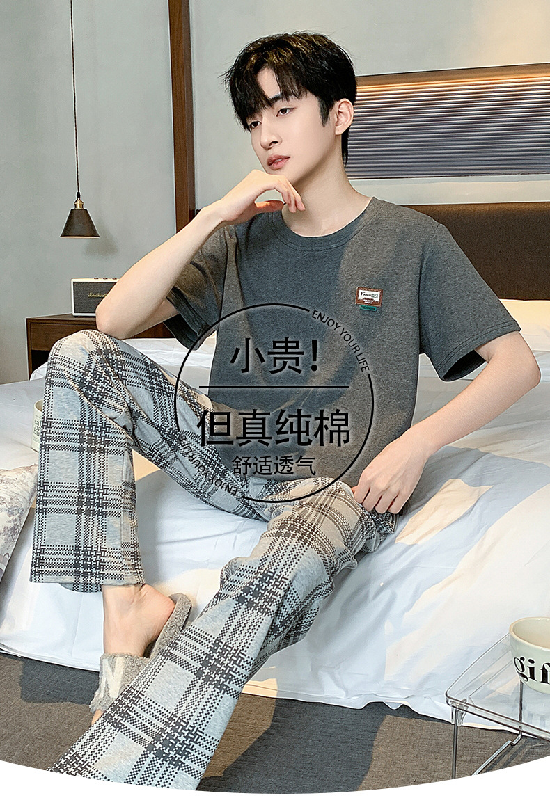 100% 면 잠옷 남성 여름 반팔 바지 간단한 캐주얼 플러스 사이즈 둥근 목 겉옷 홈웨어 세트스토어 가기