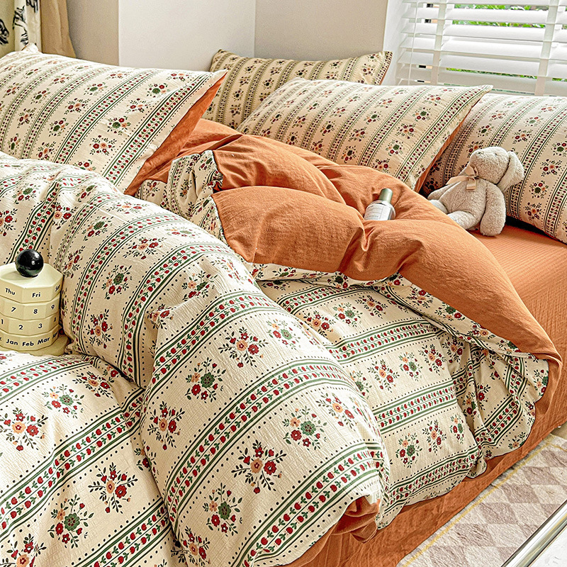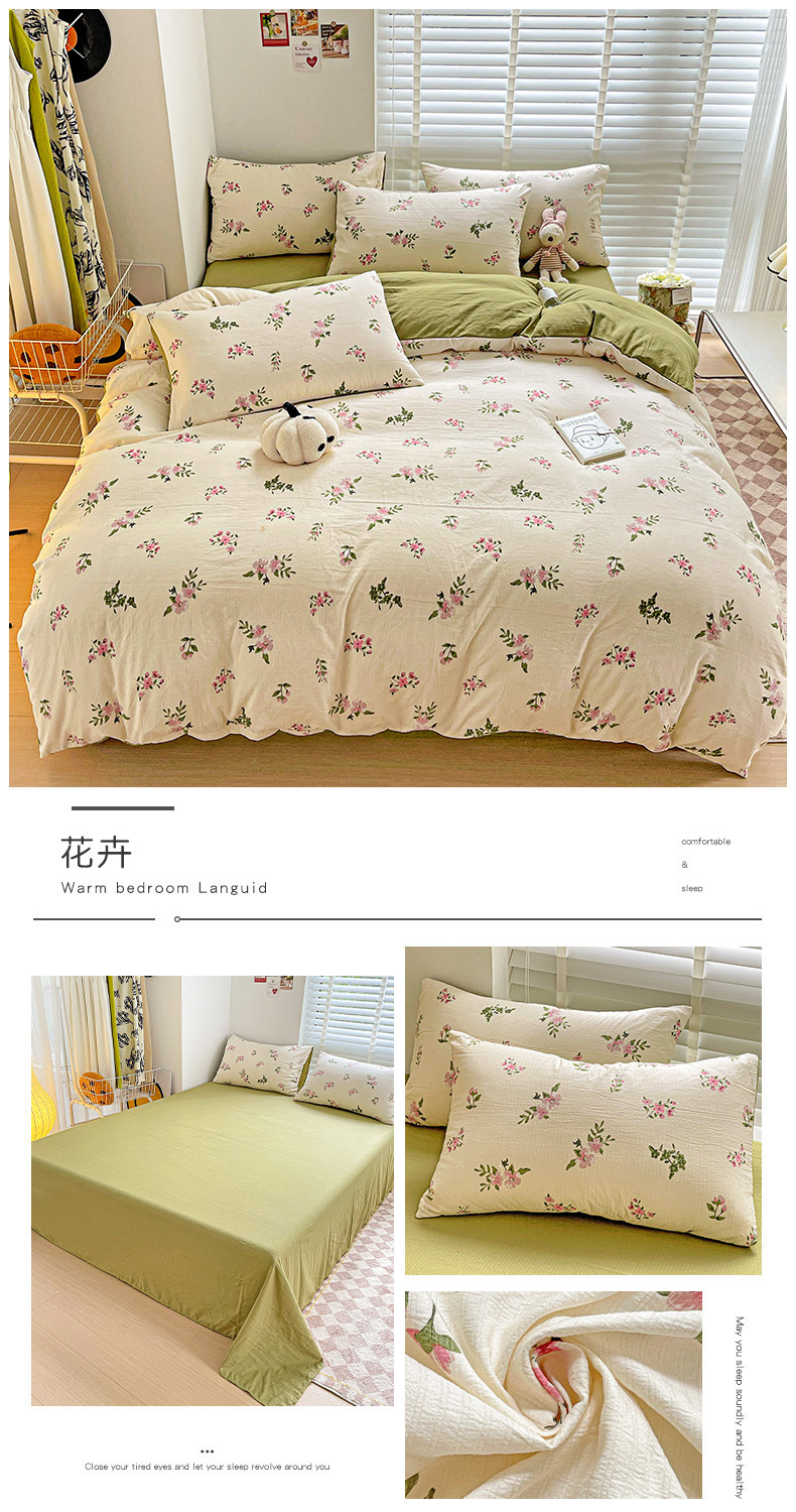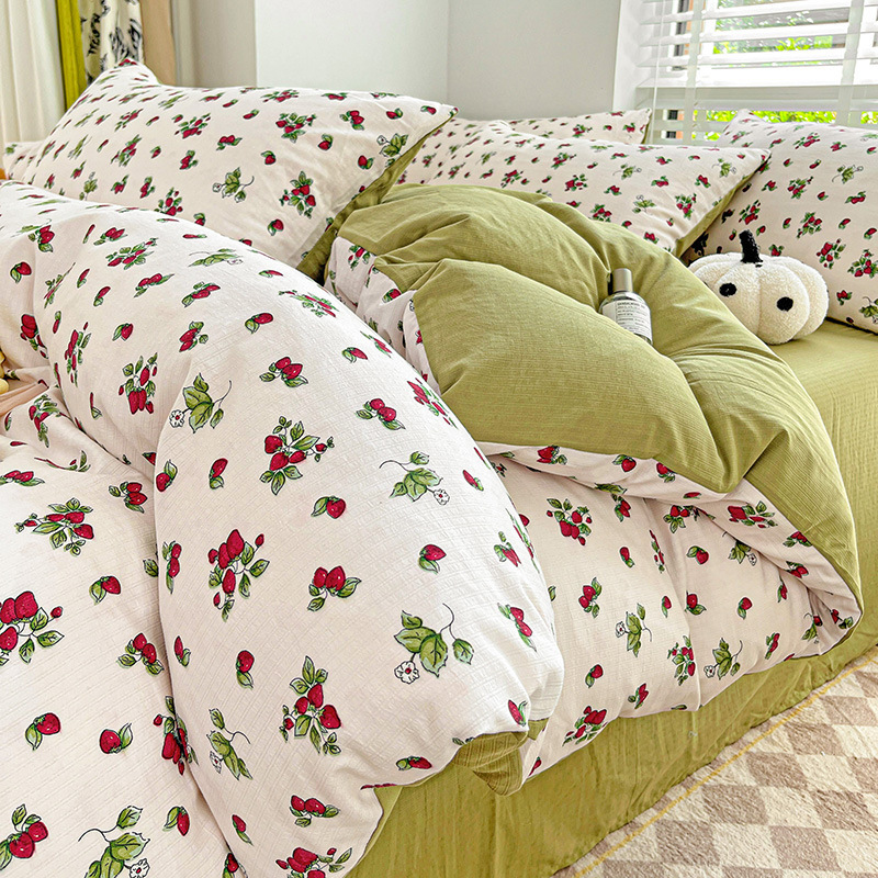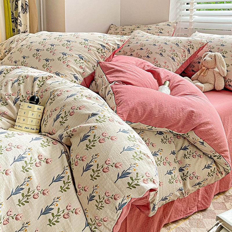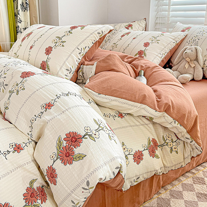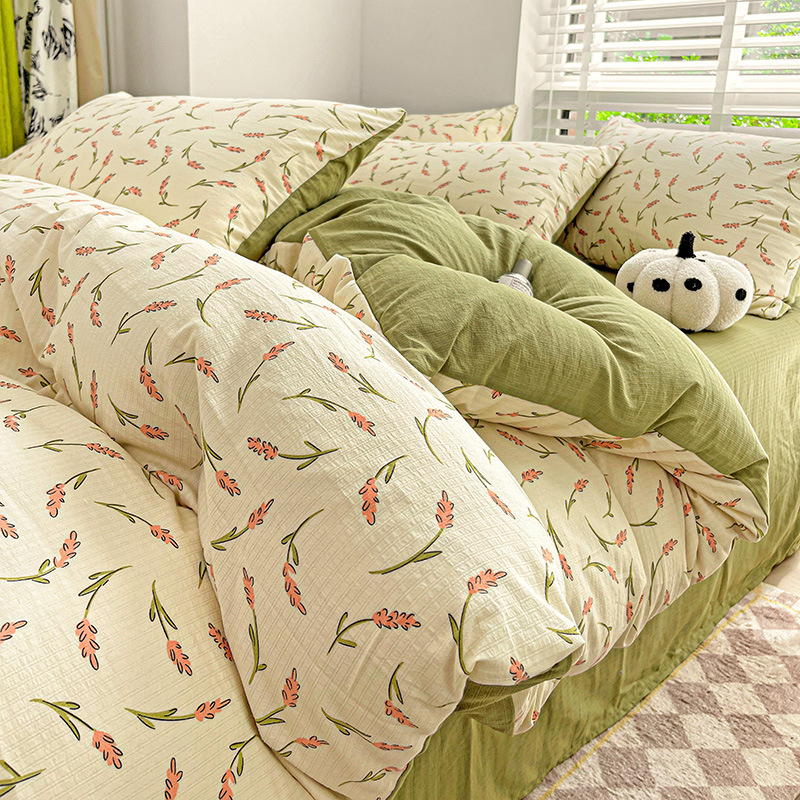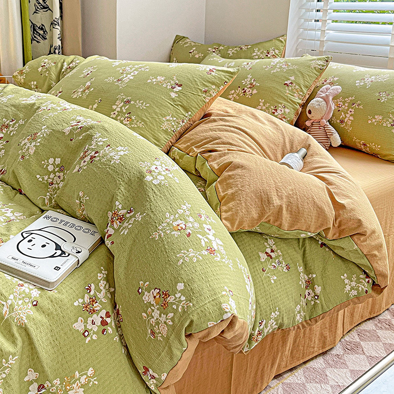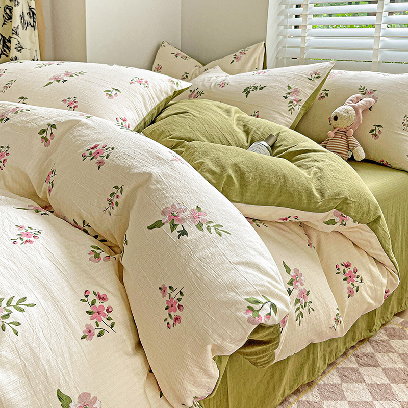 클래스 A 슈퍼 소프트 Xiaozhu 코튼 4 피스 꽃 기숙사 면 3 피스 더블 레이어 실 침대 시트 퀼트 커버 침구스토어 가기