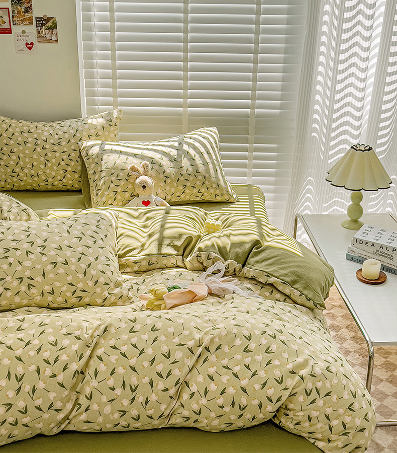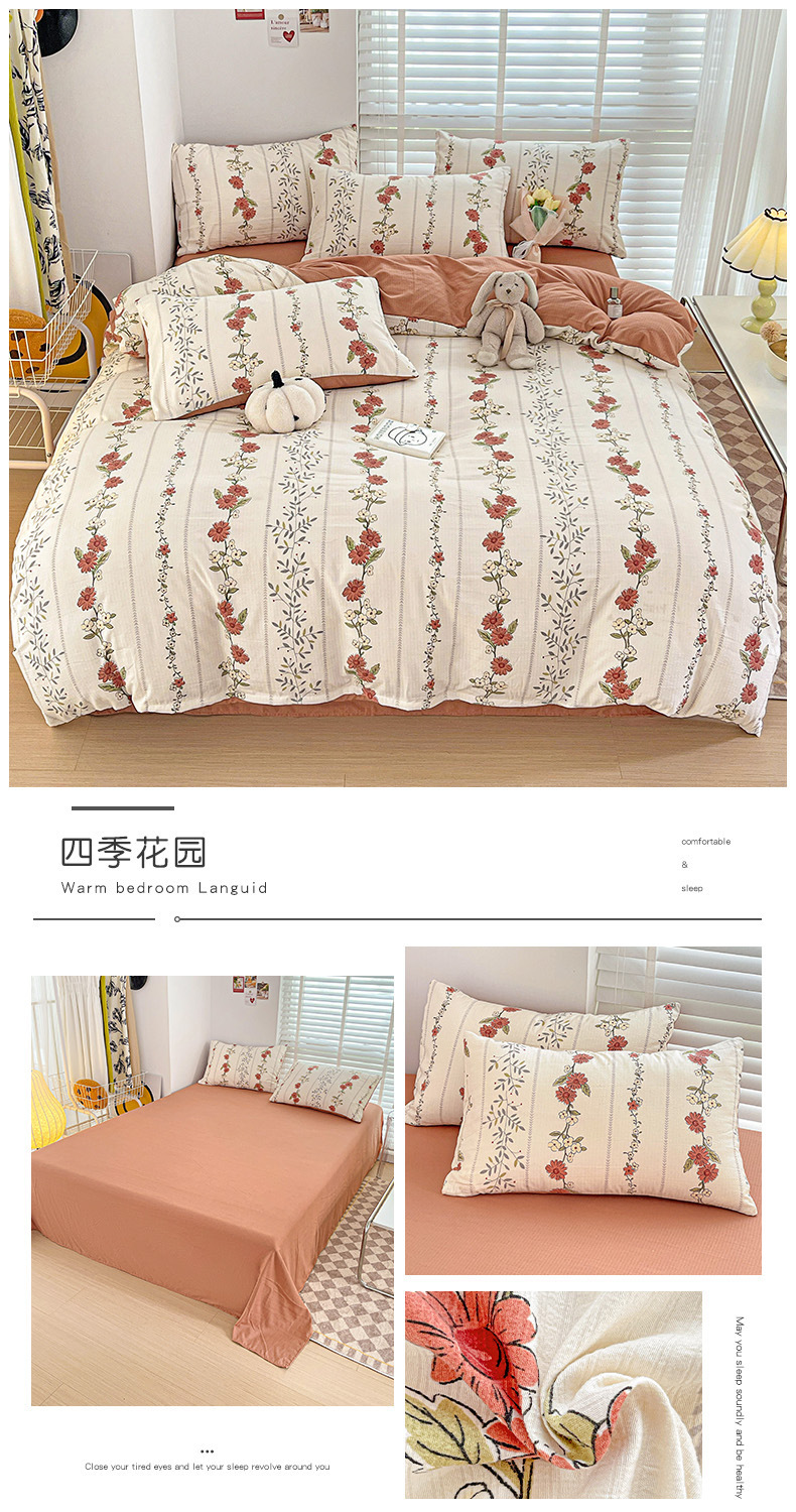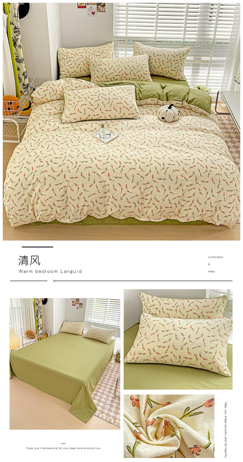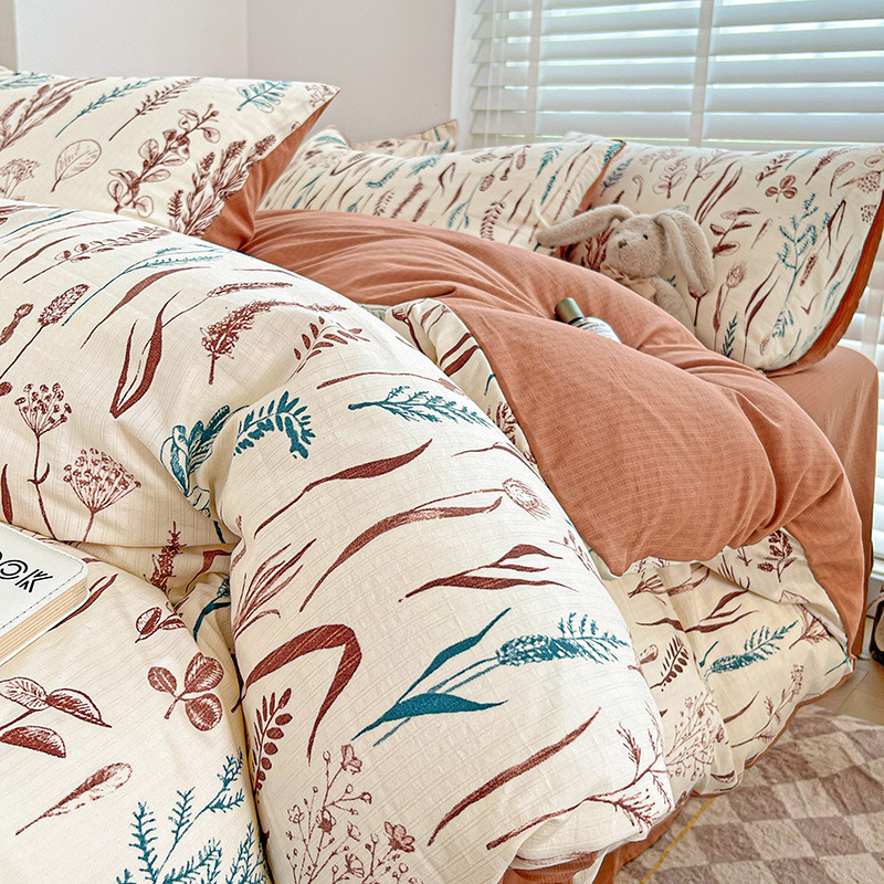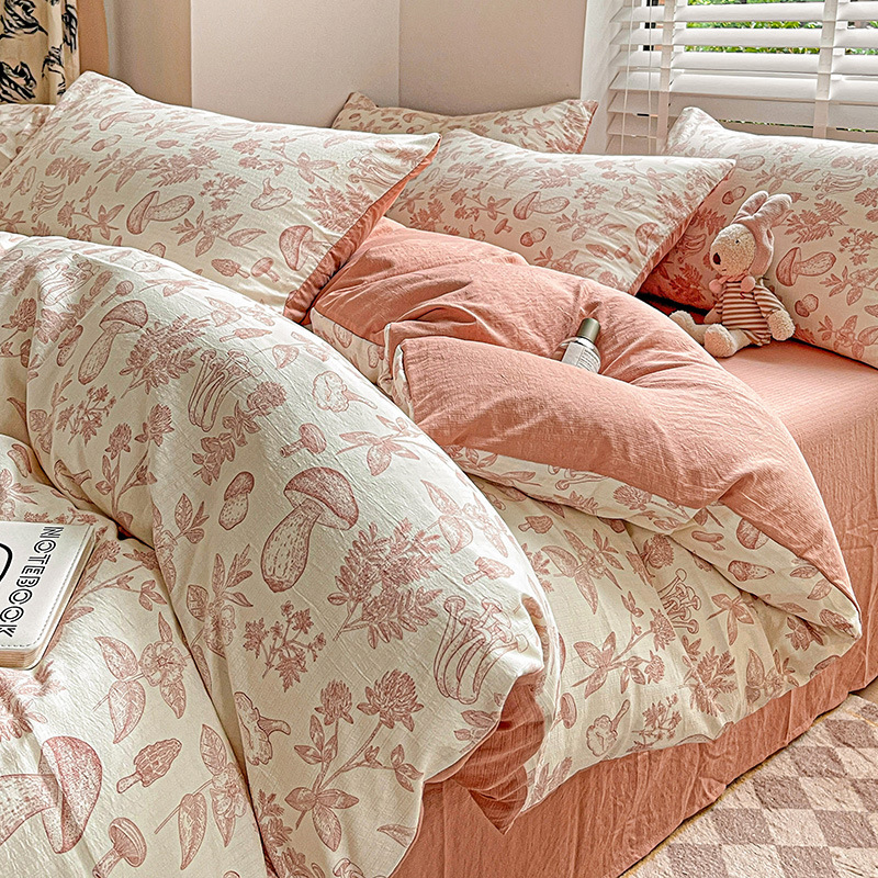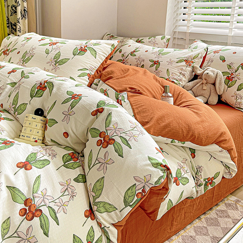 클래스 A 슈퍼 소프트 Xiaozhu 코튼 4 피스 꽃 기숙사 면 3 피스 더블 레이어 실 침대 시트 퀼트 커버 침구스토어 가기