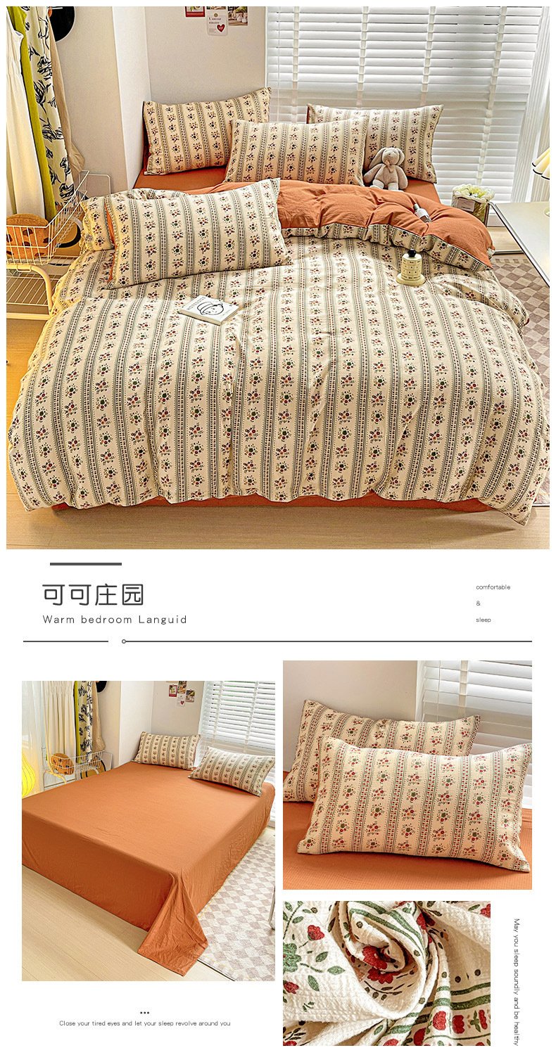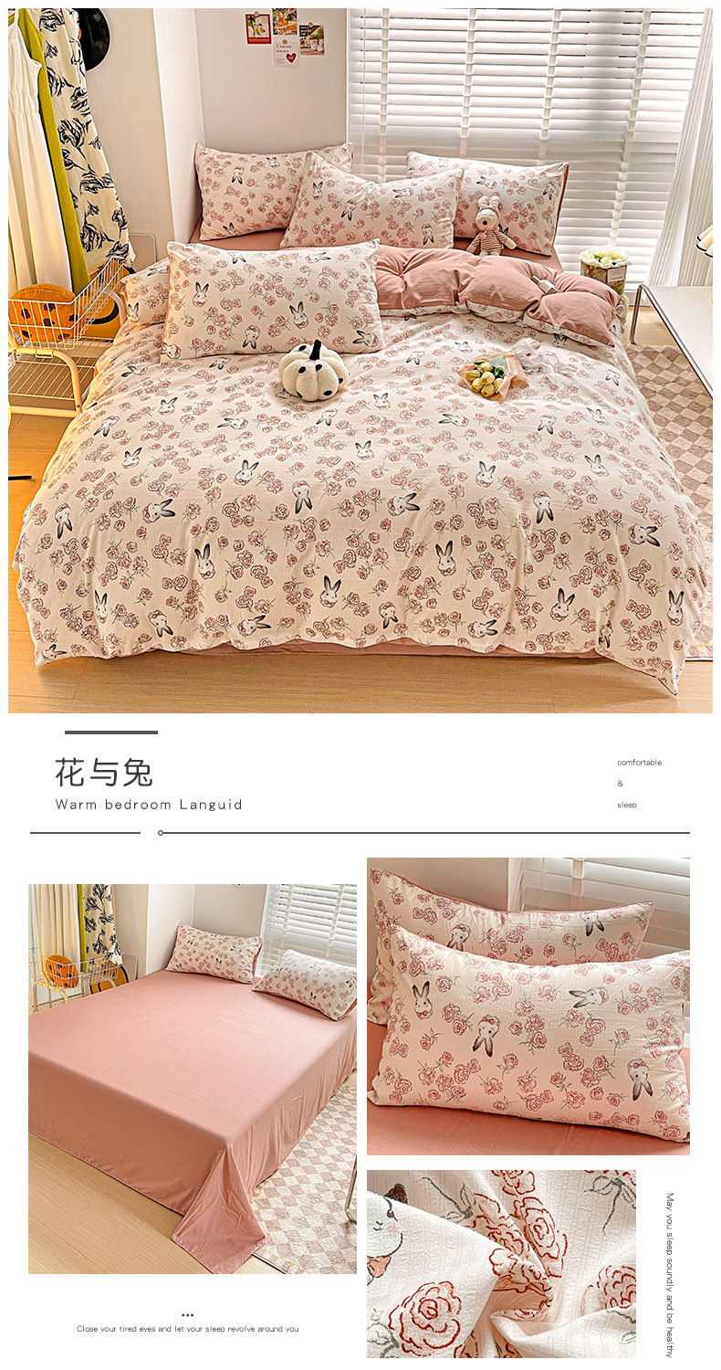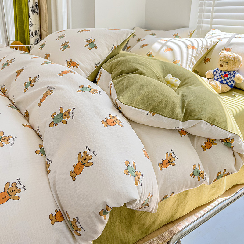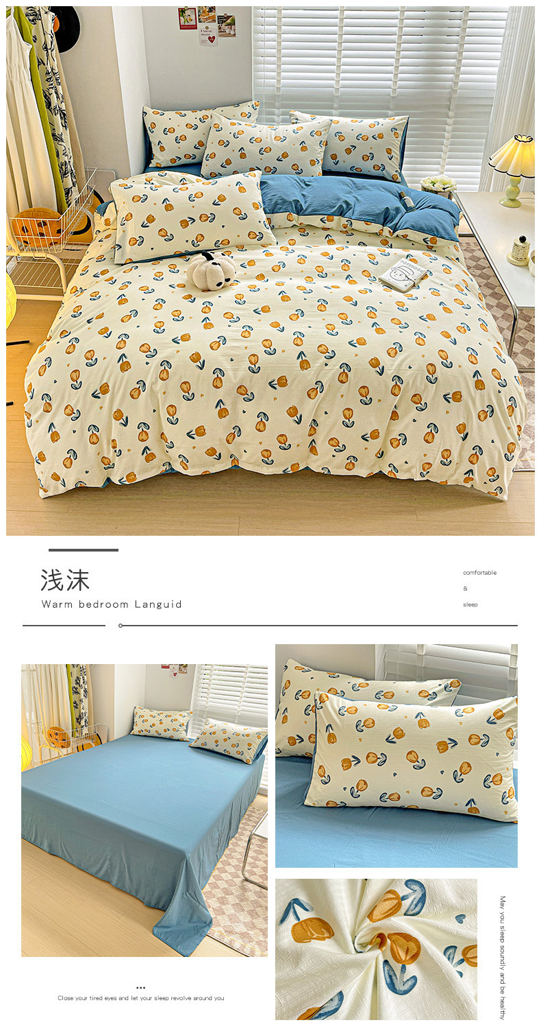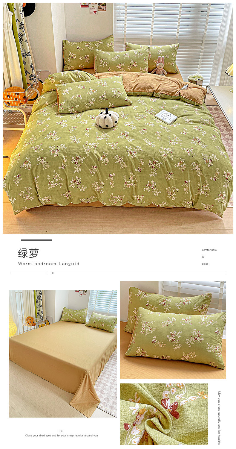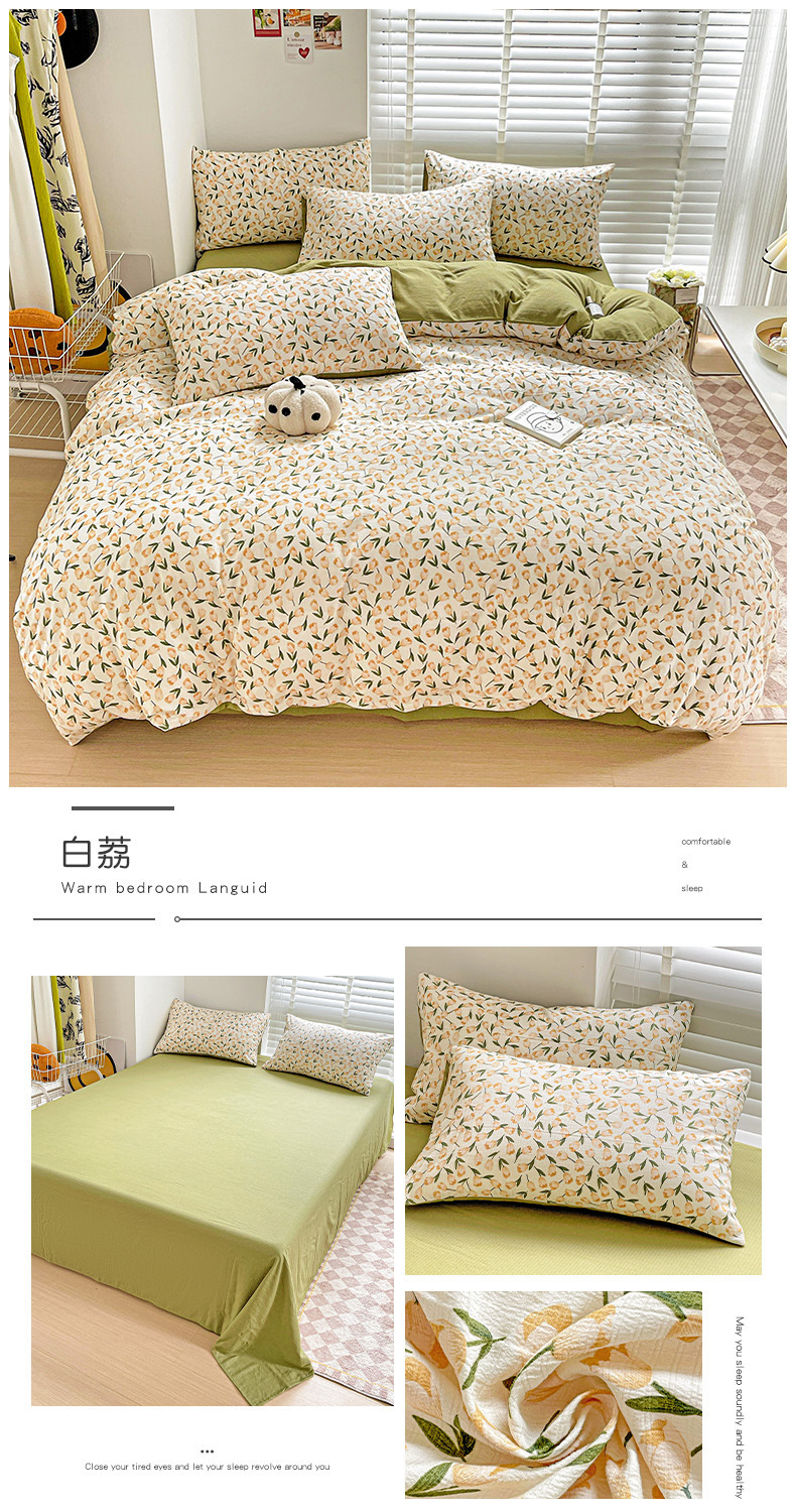 클래스 A 슈퍼 소프트 Xiaozhu 코튼 4 피스 꽃 기숙사 면 3 피스 더블 레이어 실 침대 시트 퀼트 커버 침구스토어 가기