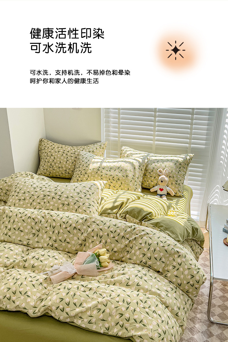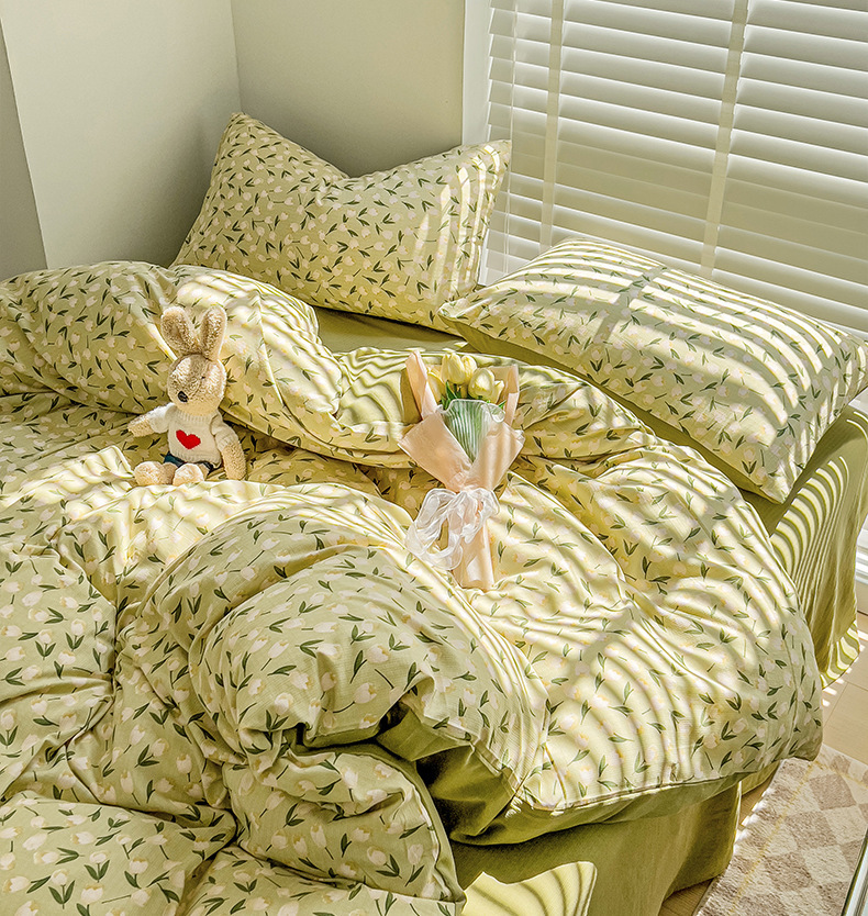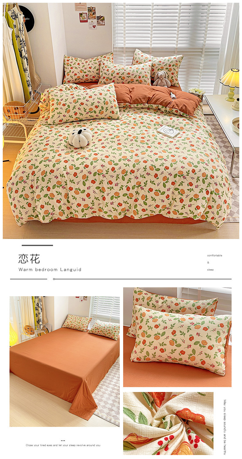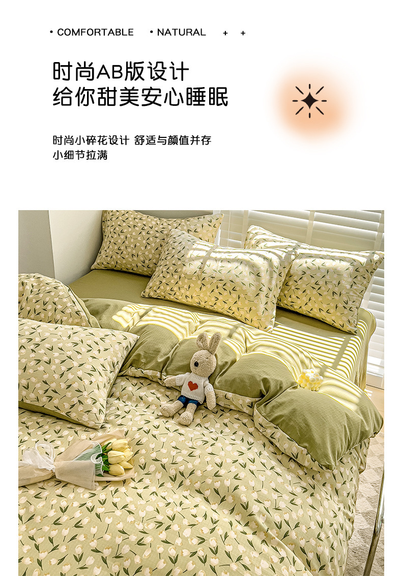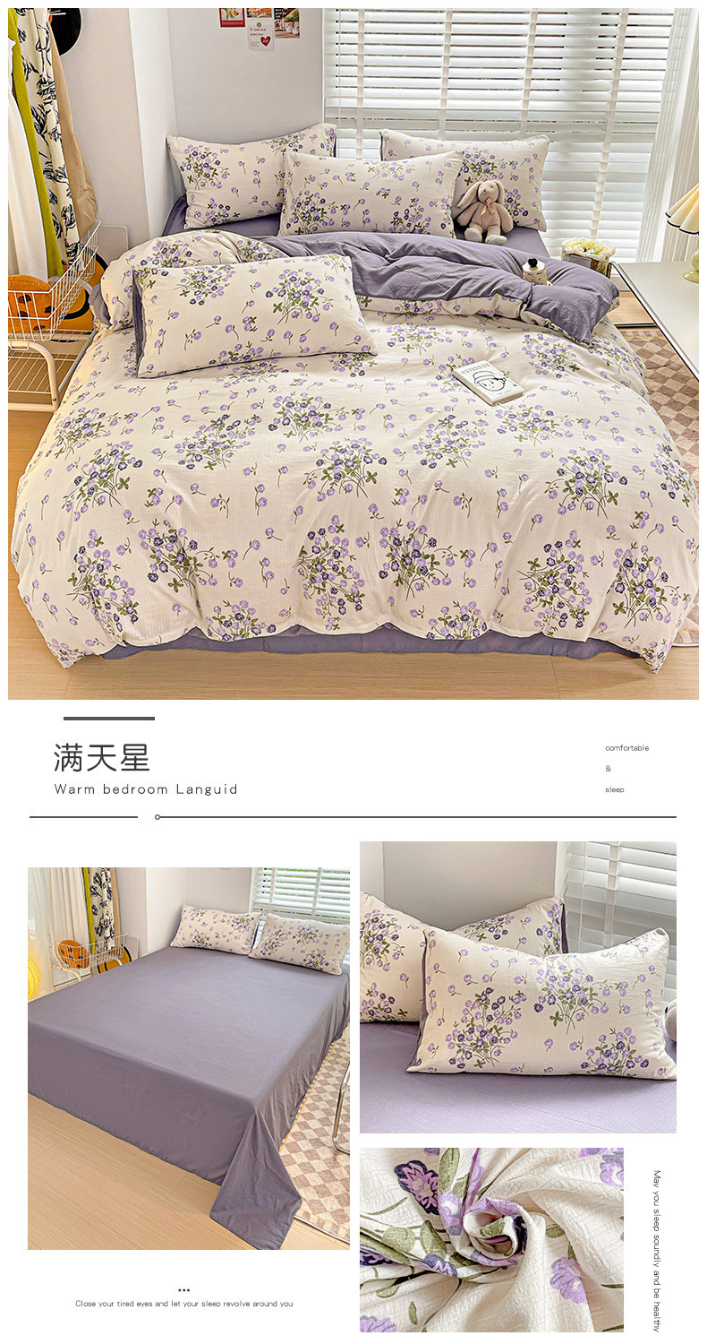 클래스 A 슈퍼 소프트 Xiaozhu 코튼 4 피스 꽃 기숙사 면 3 피스 더블 레이어 실 침대 시트 퀼트 커버 침구스토어 가기
