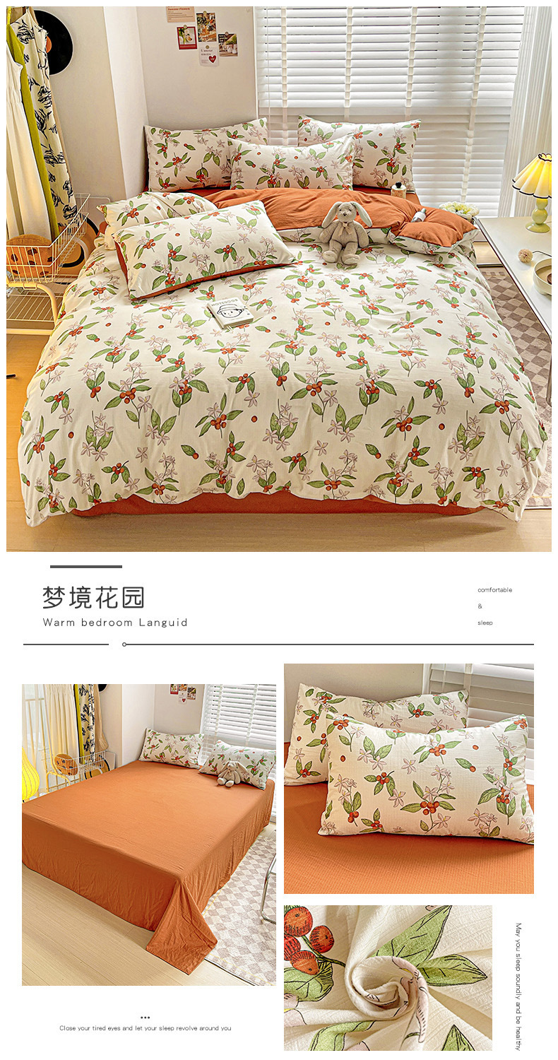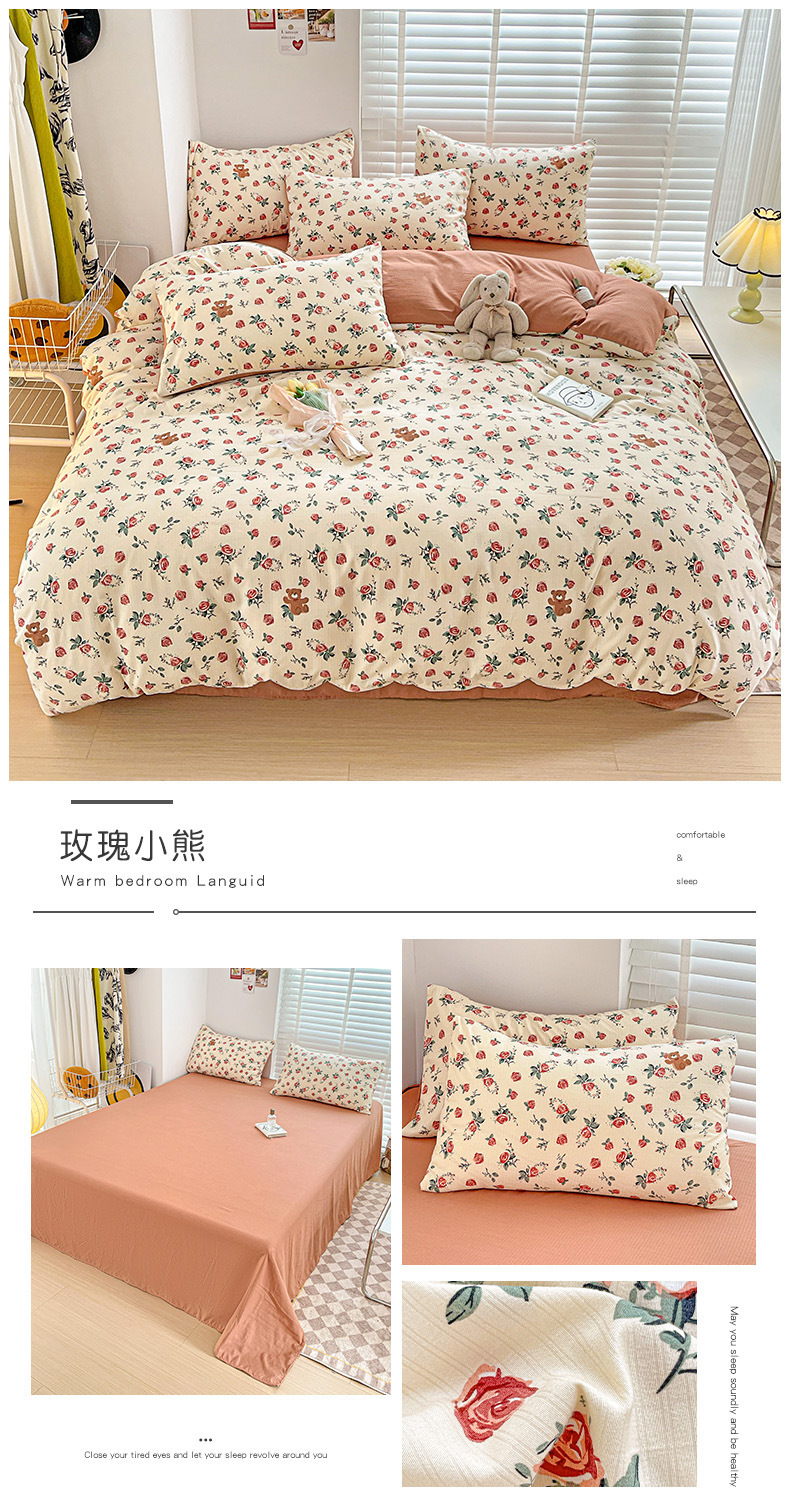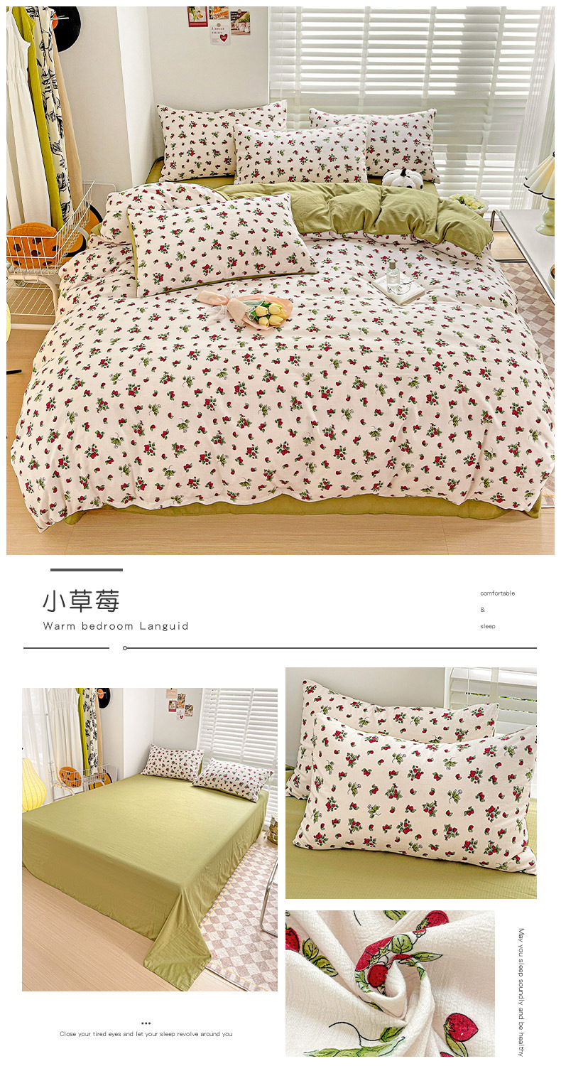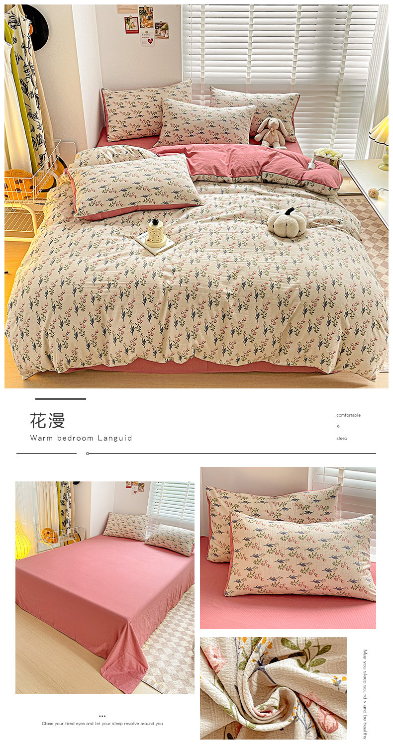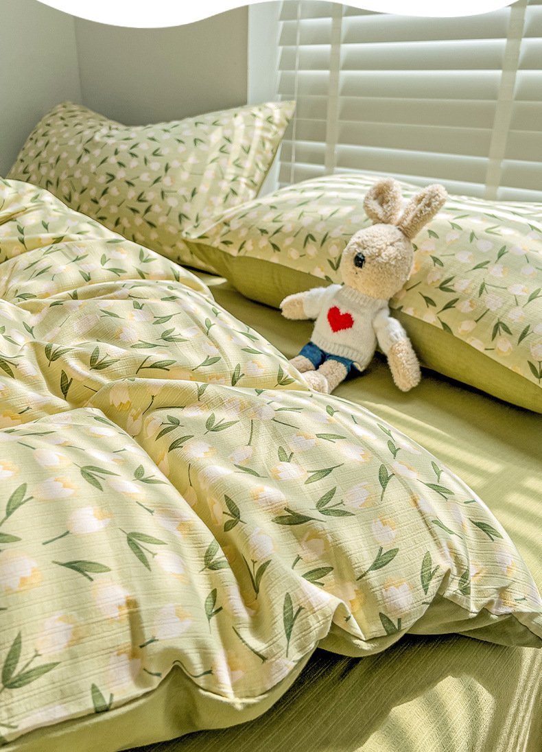 클래스 A 슈퍼 소프트 Xiaozhu 코튼 4 피스 꽃 기숙사 면 3 피스 더블 레이어 실 침대 시트 퀼트 커버 침구스토어 가기
