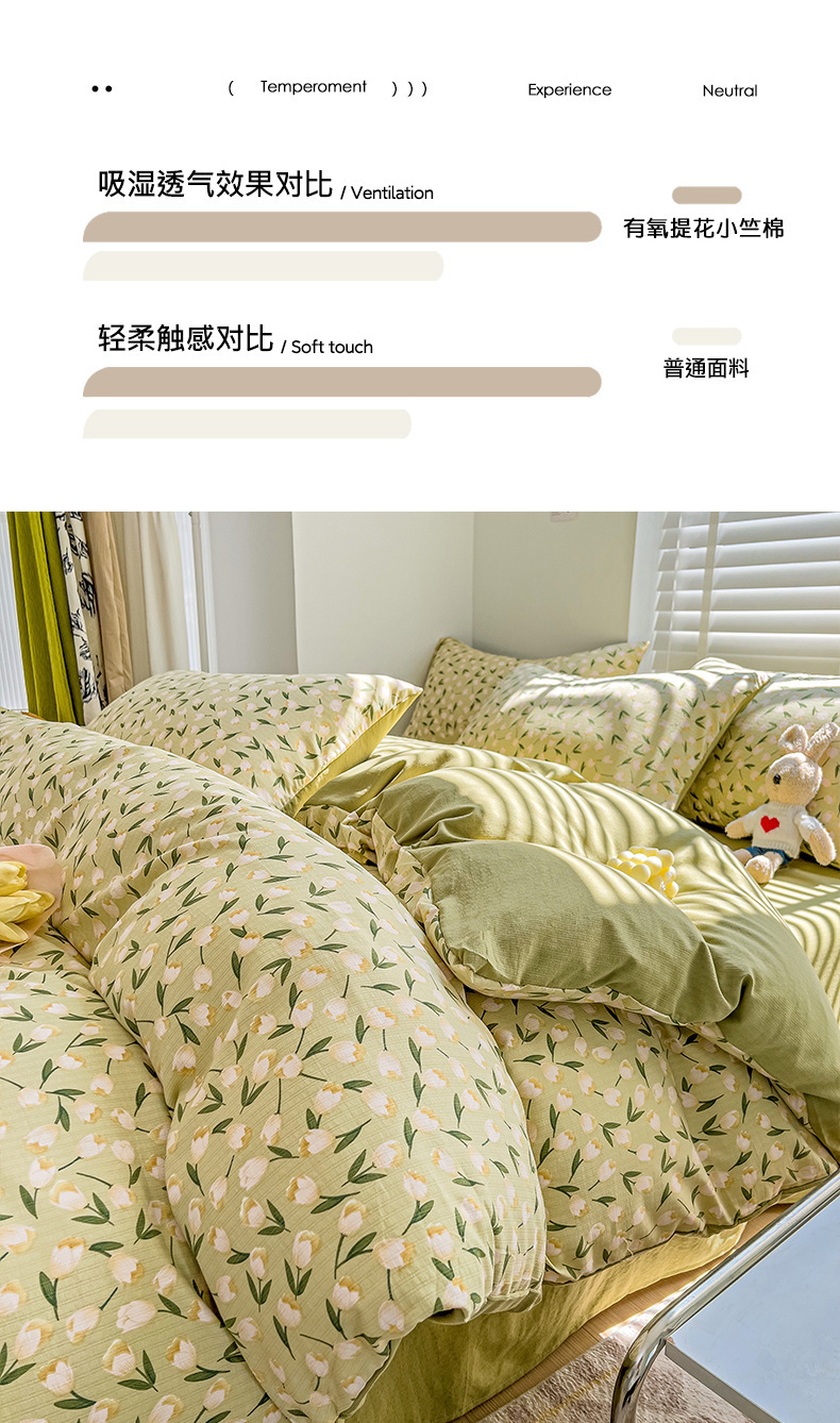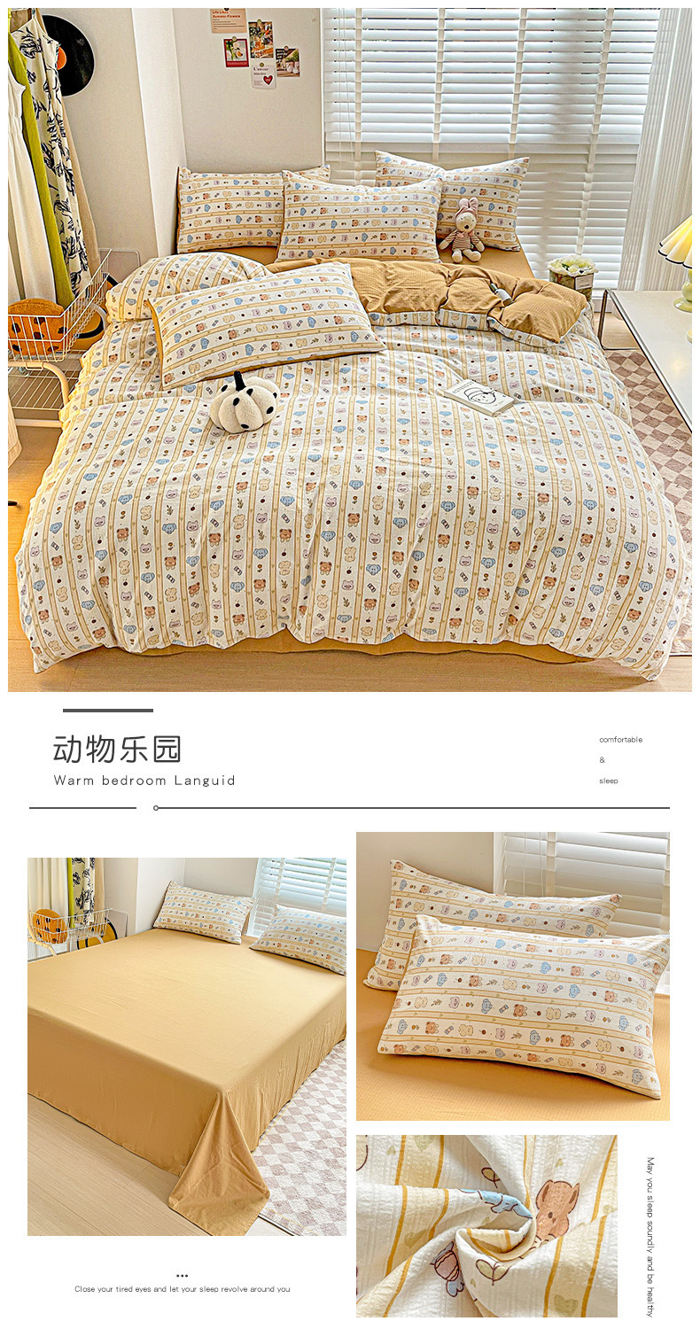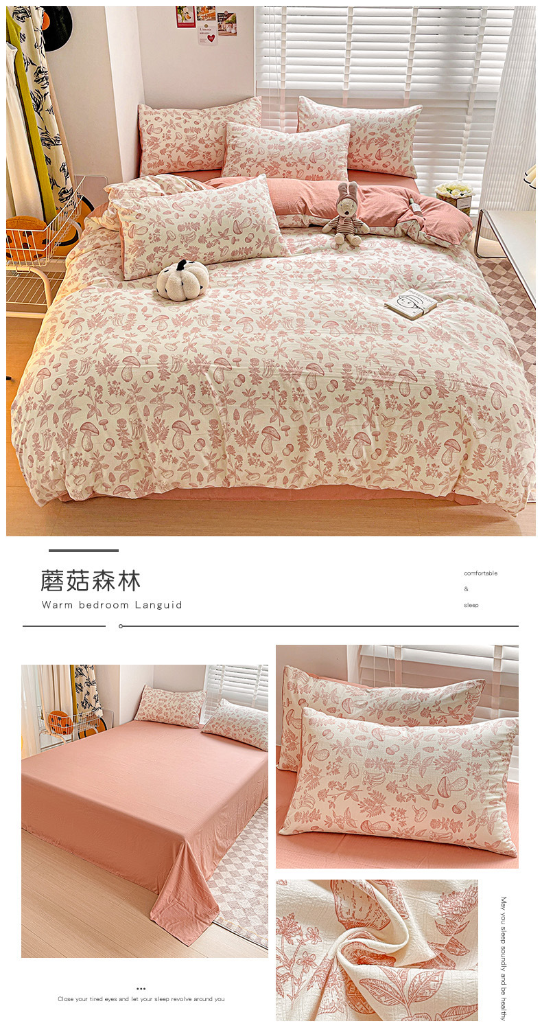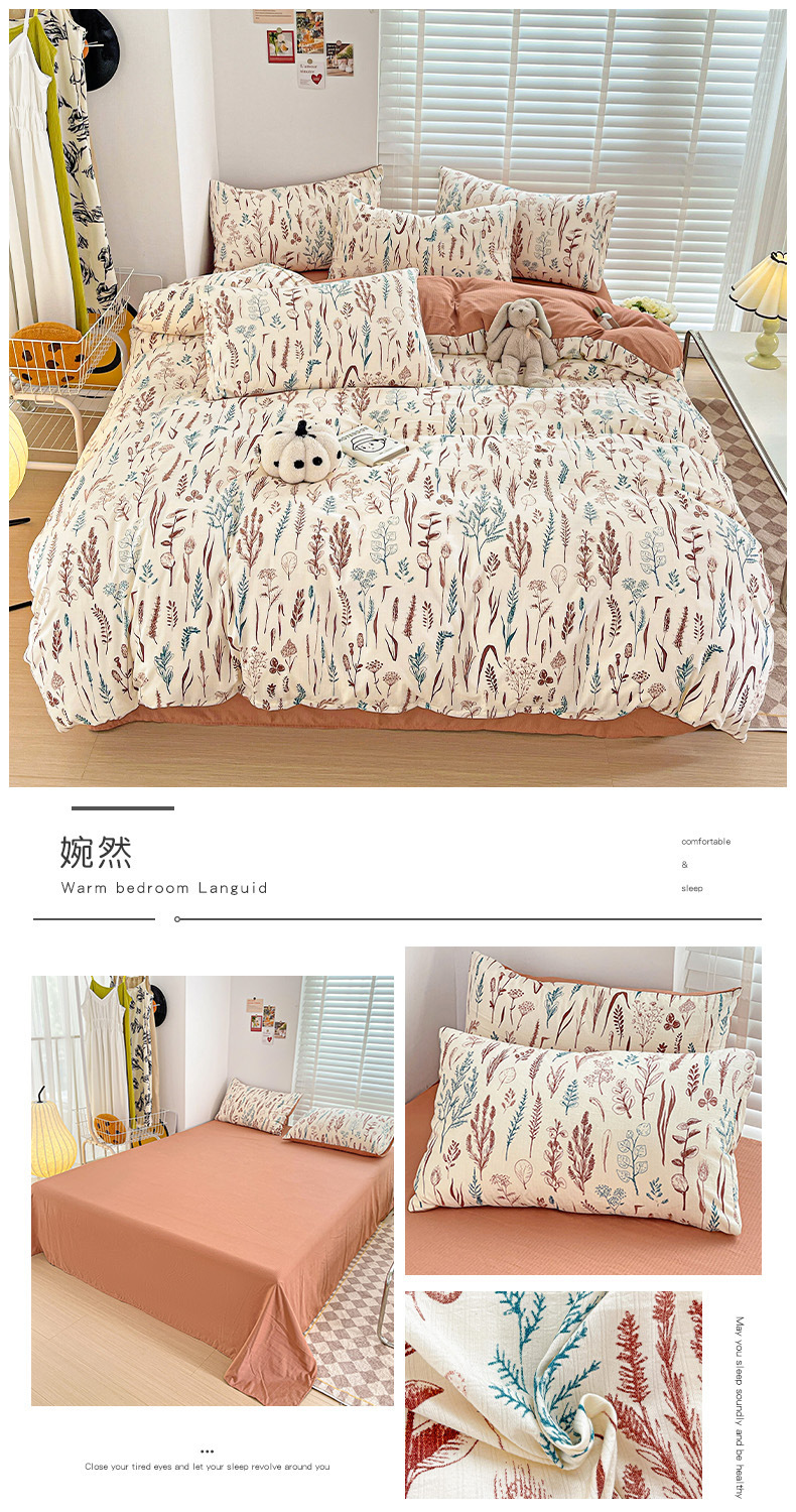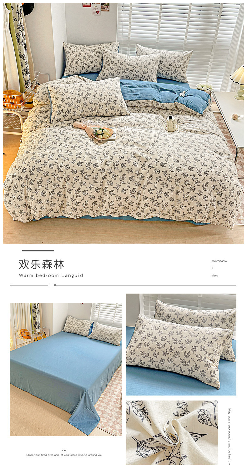 클래스 A 슈퍼 소프트 Xiaozhu 코튼 4 피스 꽃 기숙사 면 3 피스 더블 레이어 실 침대 시트 퀼트 커버 침구스토어 가기