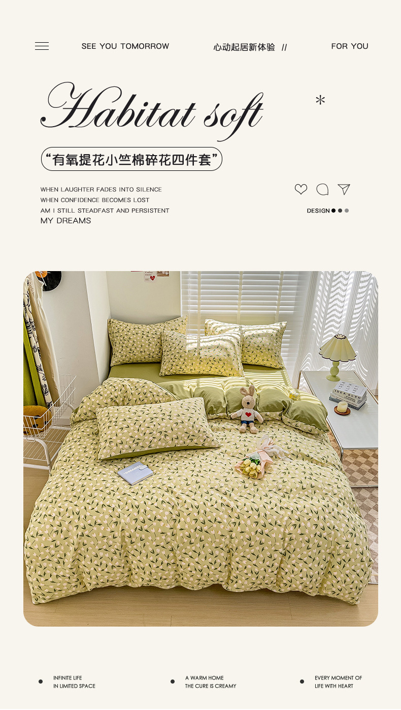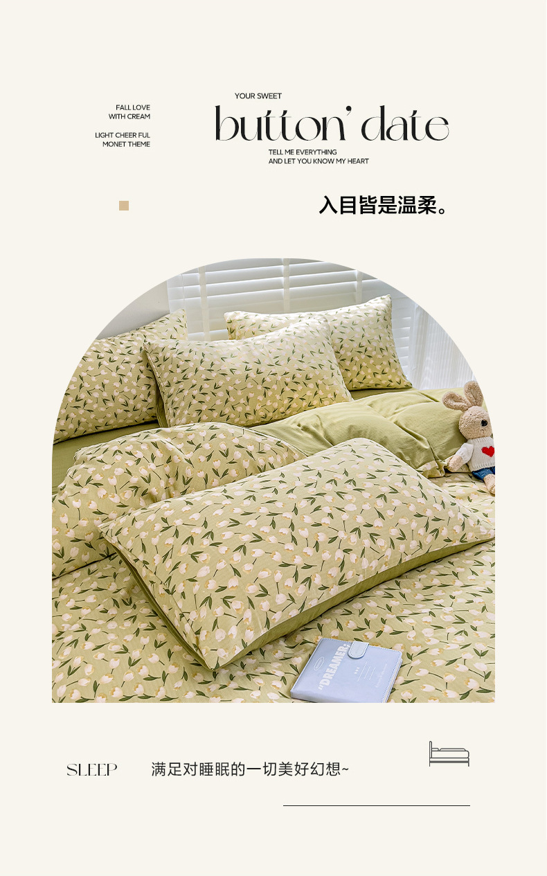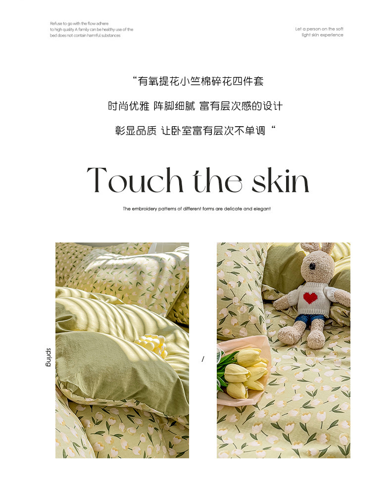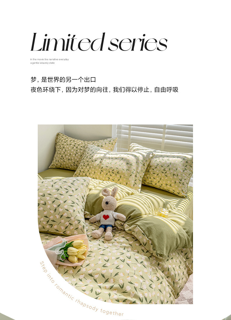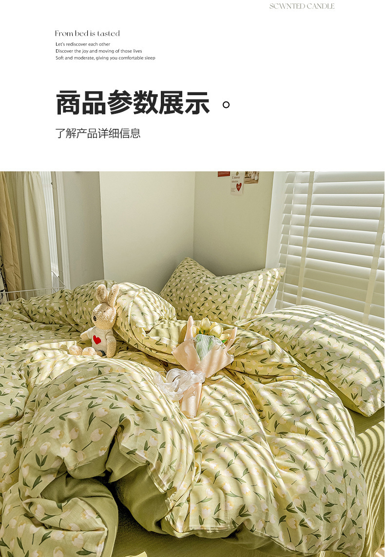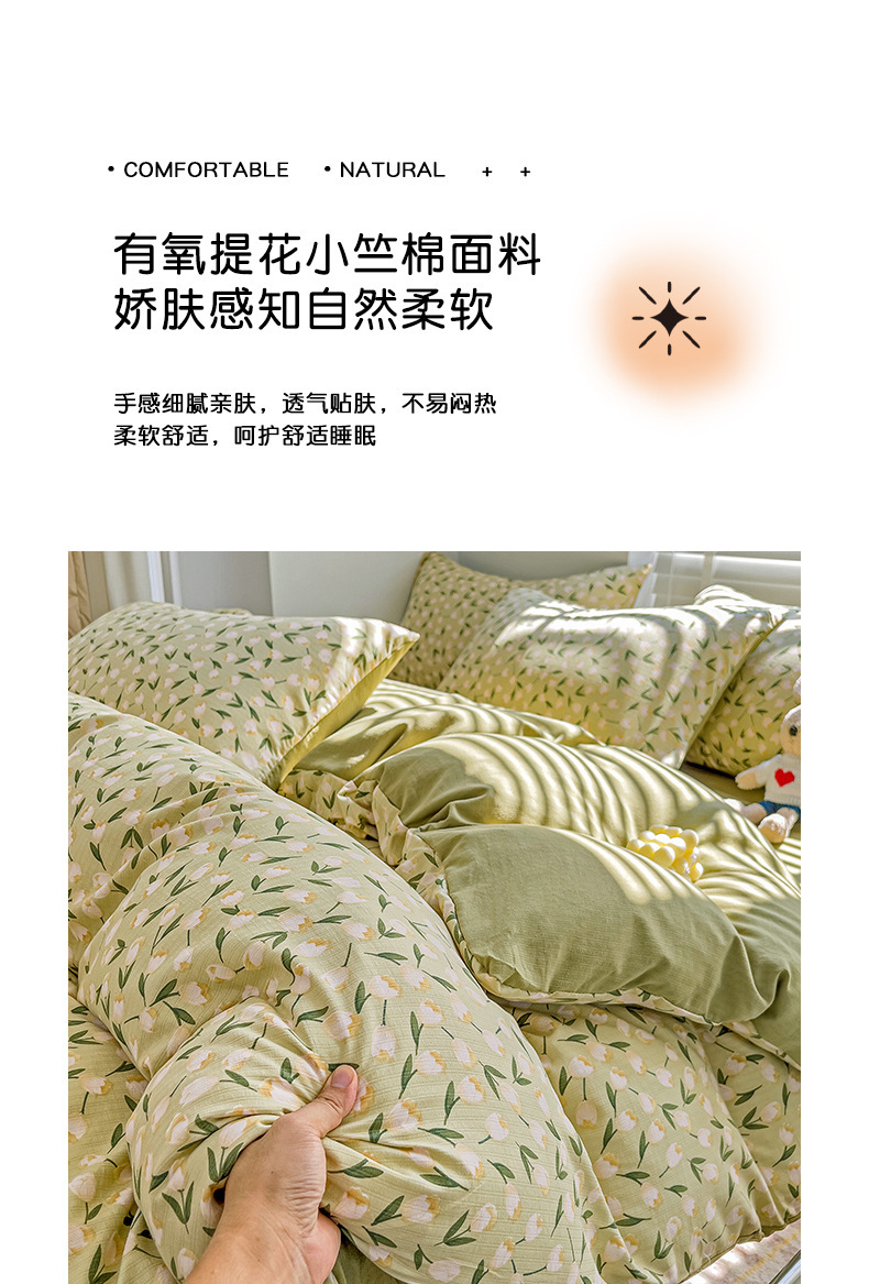 클래스 A 슈퍼 소프트 Xiaozhu 코튼 4 피스 꽃 기숙사 면 3 피스 더블 레이어 실 침대 시트 퀼트 커버 침구스토어 가기