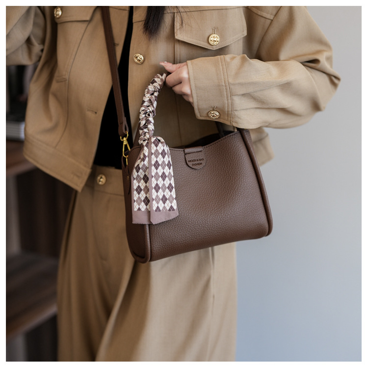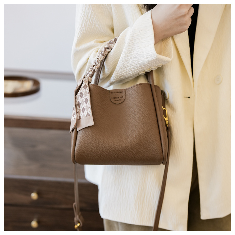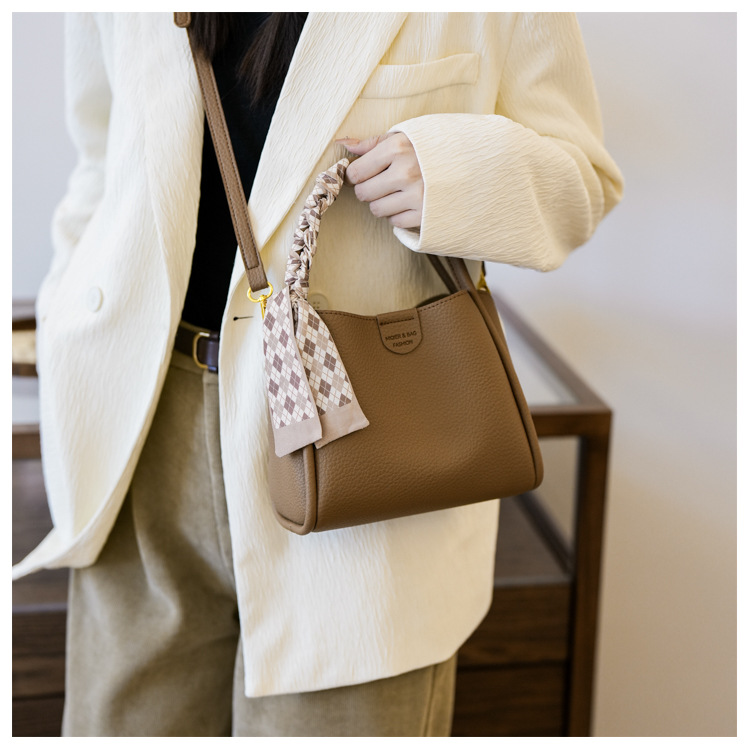 올해 여성을위한 인기 야채 바구니 핸드백 2024 국경 새로운 부드러운 가죽 버킷 가방 통근 어깨 크로스 바디 백