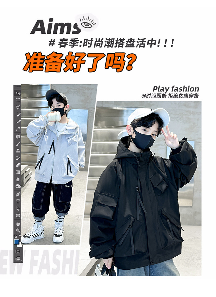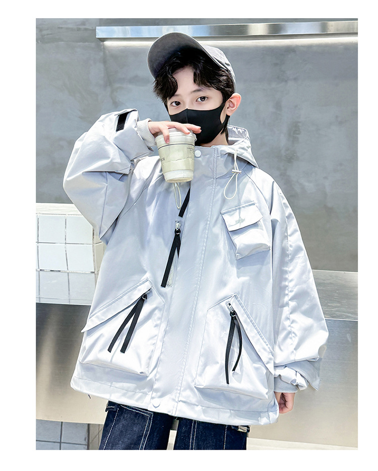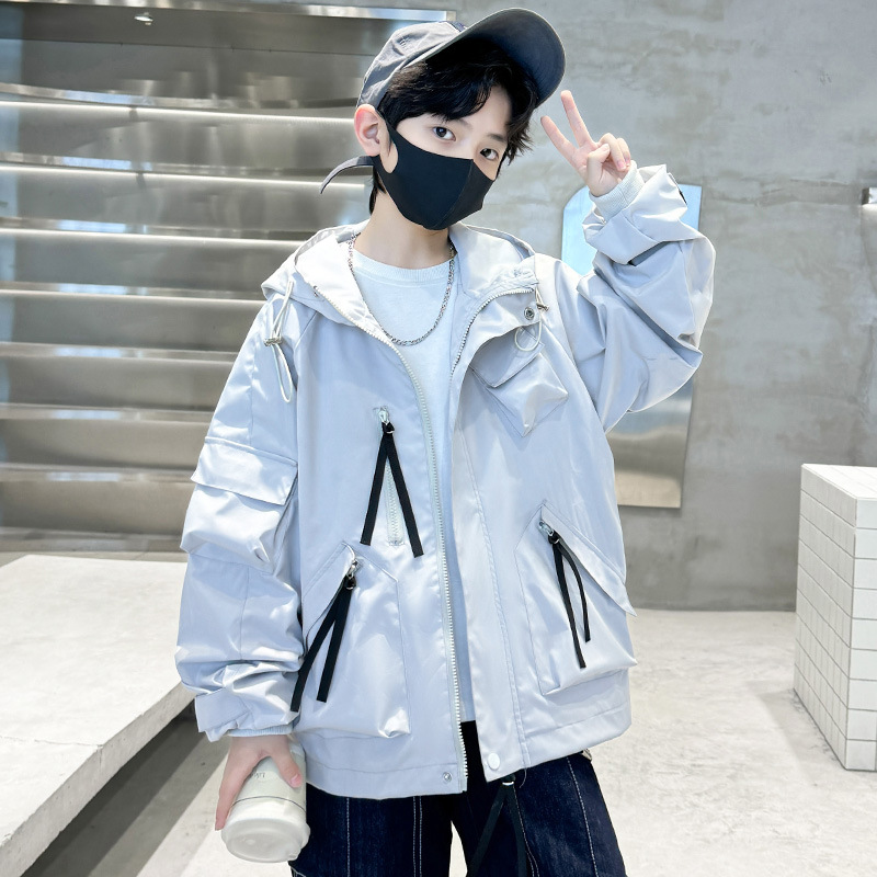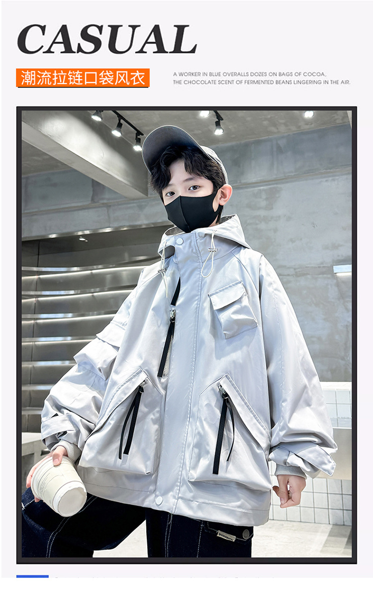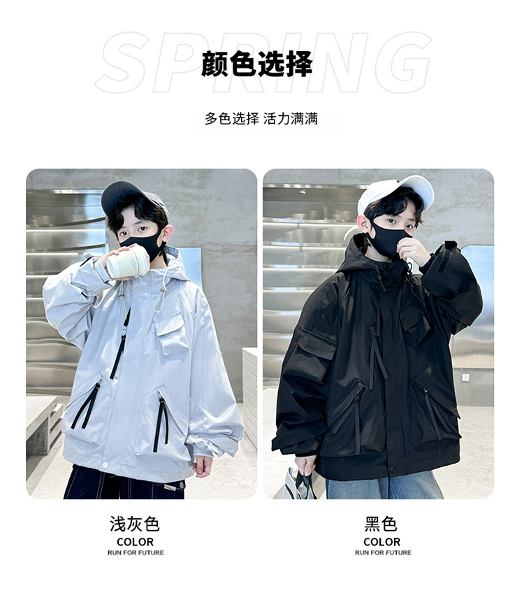 소년 자켓 2024 새 봄 옷 어린이 야외 봄 후드 윈드 브레이커 재킷 봄과 가을 대외 무역스토어 가기