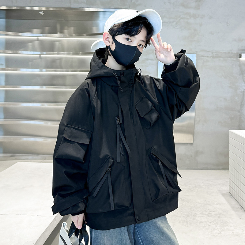 소년 자켓 2024 새 봄 옷 어린이 야외 봄 후드 윈드 브레이커 재킷 봄과 가을 대외 무역