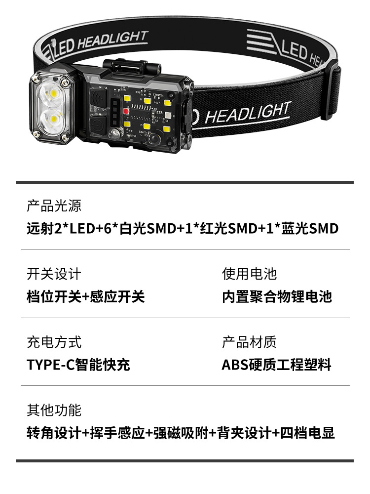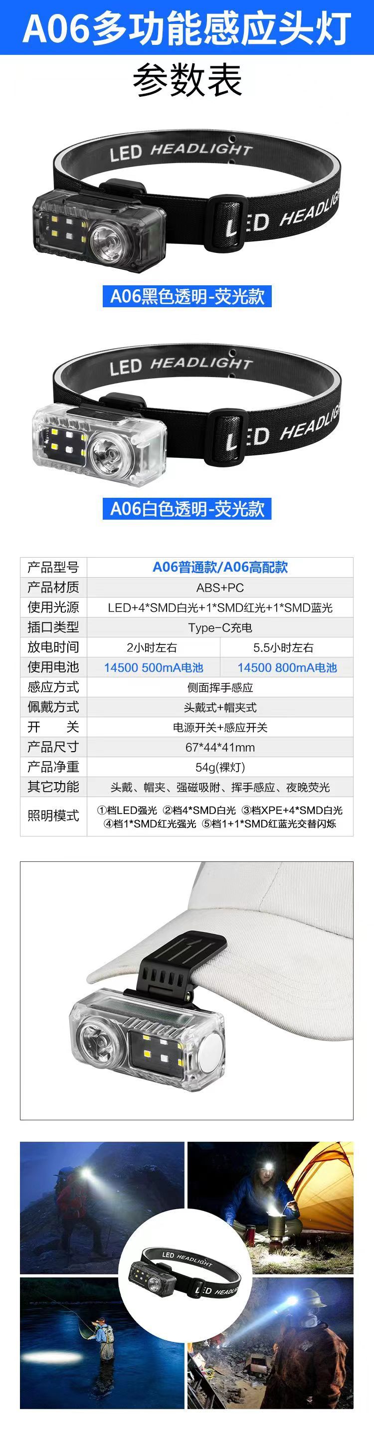 국경 간 다기능 유도 클립 램프 낚시 램프 모자 테두리 램프 강한 전조등 헤드 장착 손전등 접이식 캠프 램프