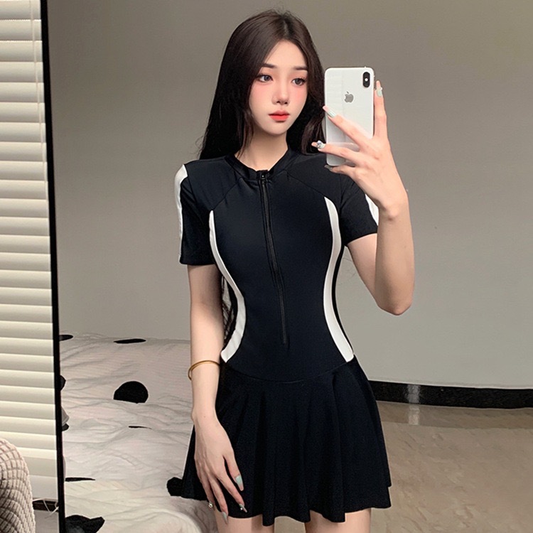 수영복 여성 원피스 스포츠 온천 수영복 간단한 보수적 슬림 슬리밍 원피스 휴일 수영복 도매