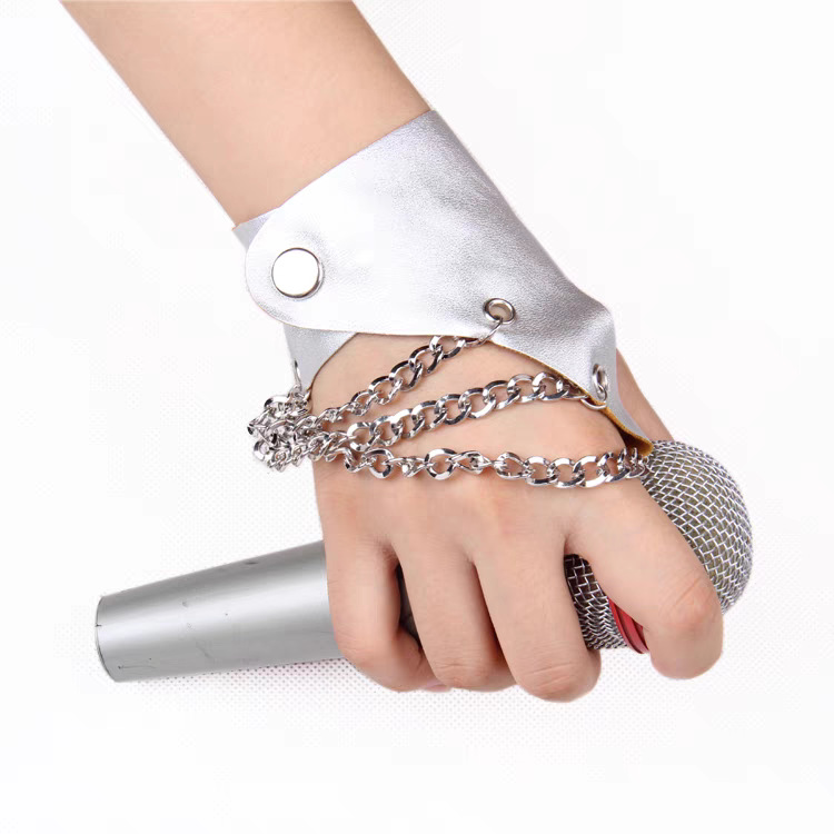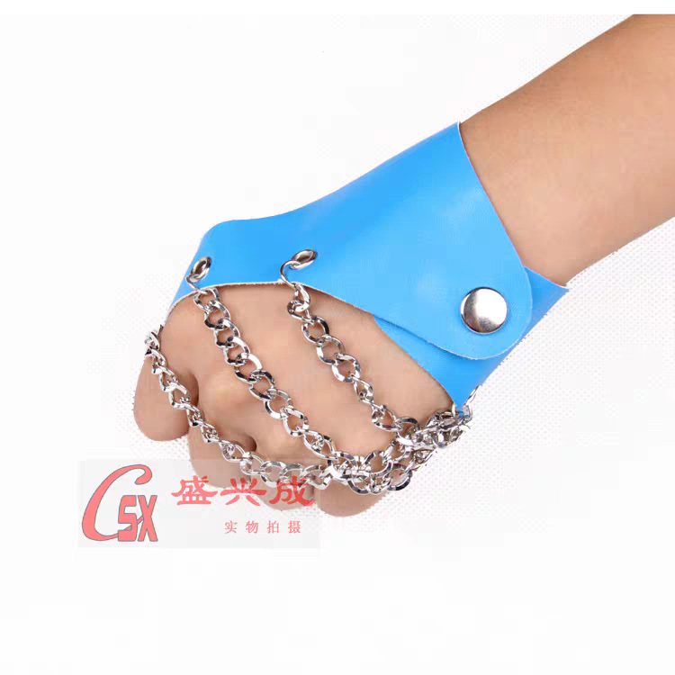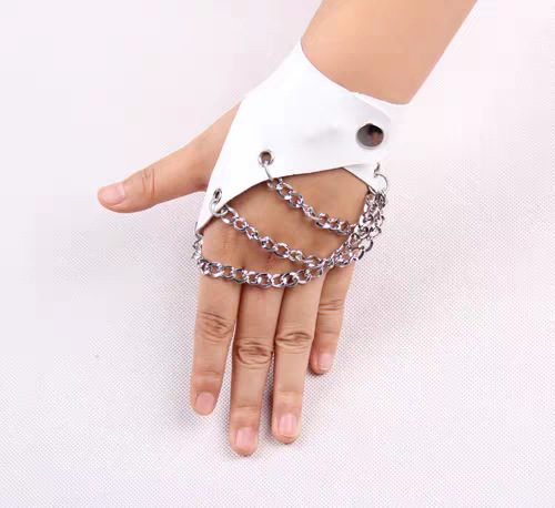 夏季镂空半掌半指手套时尚朋克街舞铆钉链条机车哥特风酷炫表演手套