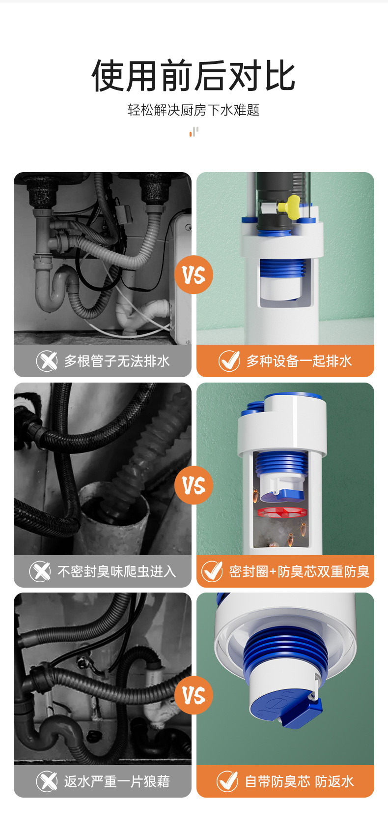 주방 다운 커머 드레인 파이프 4 방향 커넥터 탈취 아티팩트 다기능 필터 정수기 싱크 안티 오버플로스토어 가기