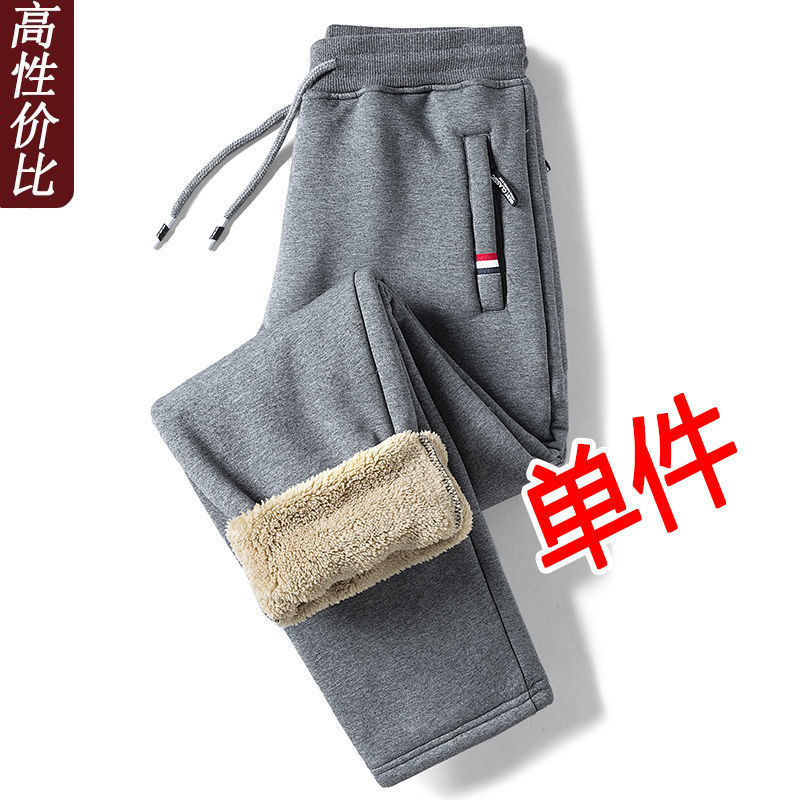트렌디 한 브랜드 남성 발목 묶인 바지 양모 가을과 겨울 기모 캐주얼 바지 느슨한 스트레이트 스포츠 바지 남성용 스웨트 팬츠스토어 가기