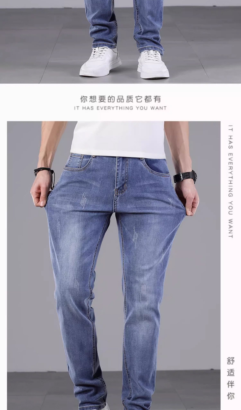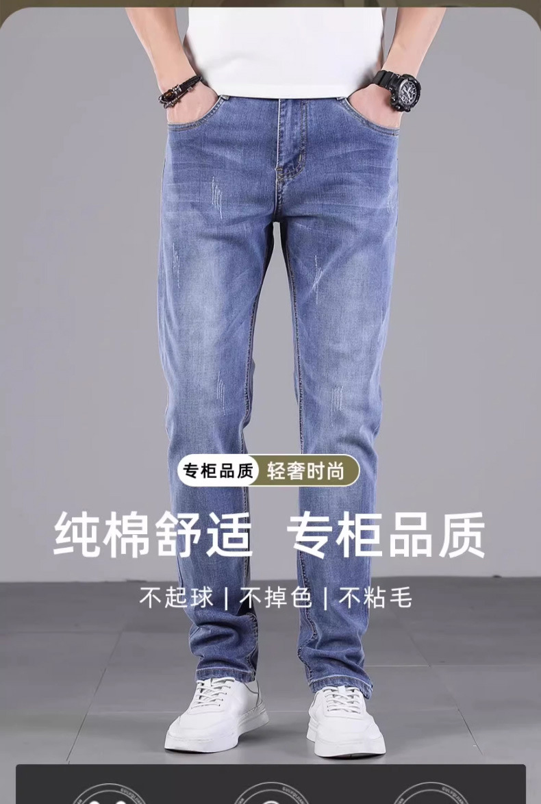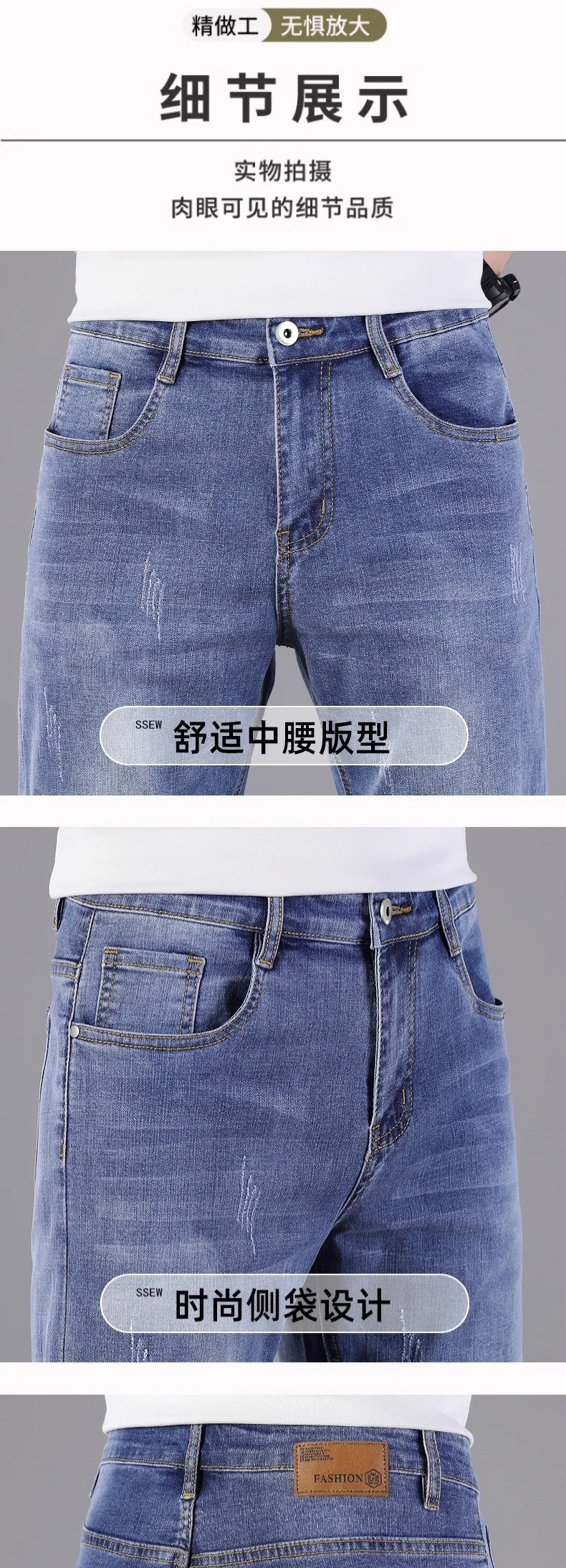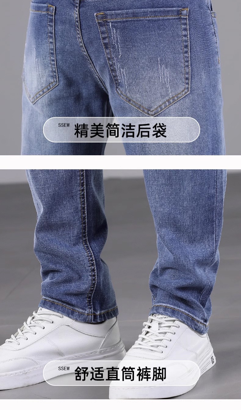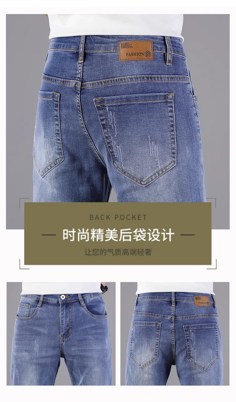 2025 봄 가을 홍콩 스타일 고급 가을 슬림핏 스트레이트 라이트 블루 데님 팬츠 남성 캐주얼 두꺼운 긴바지스토어 가기