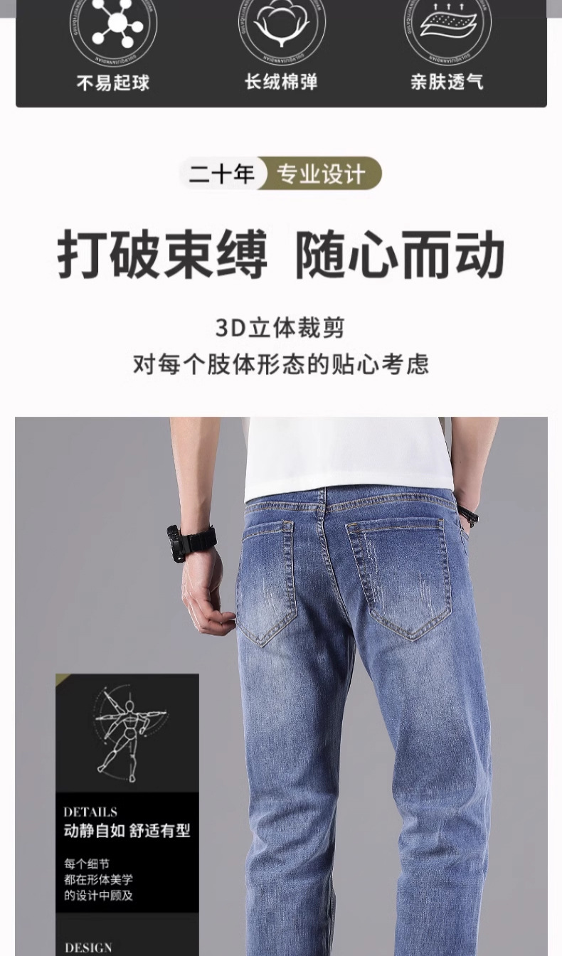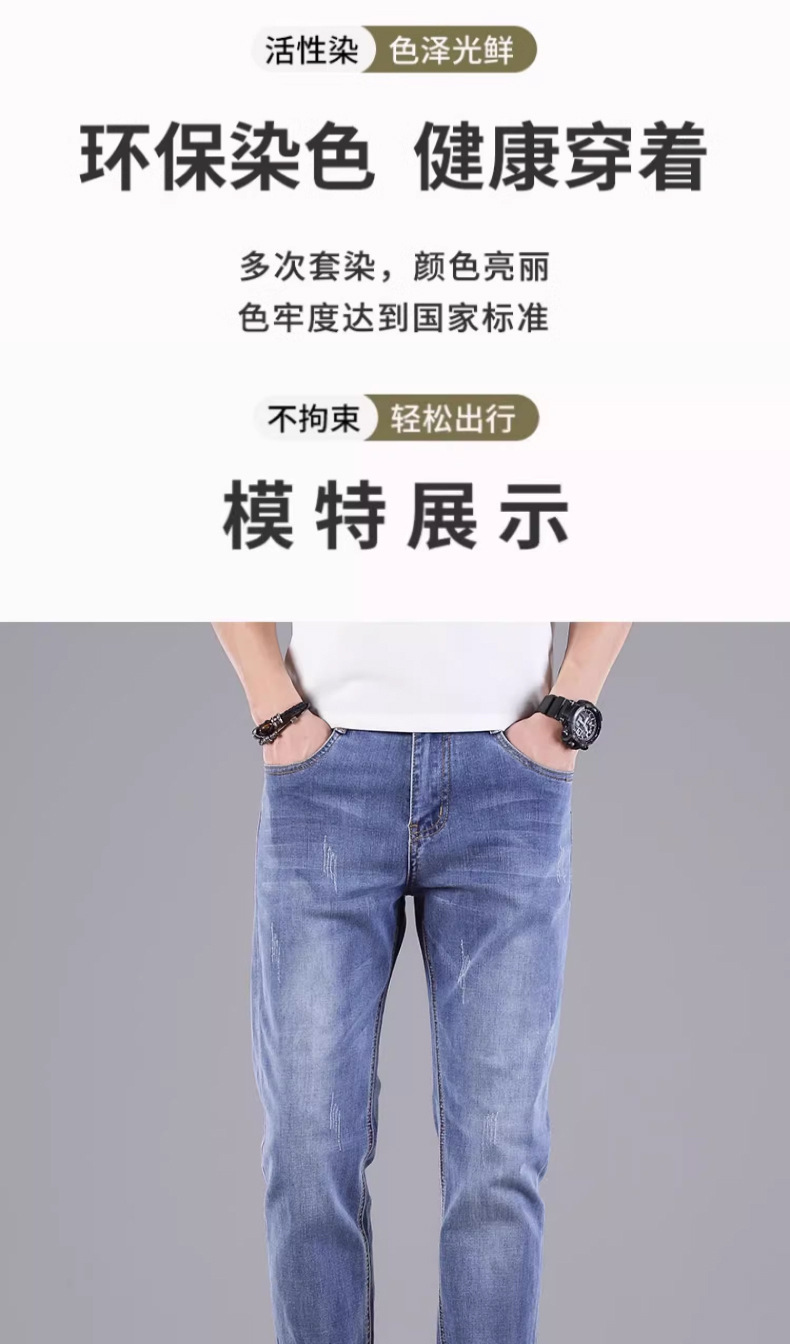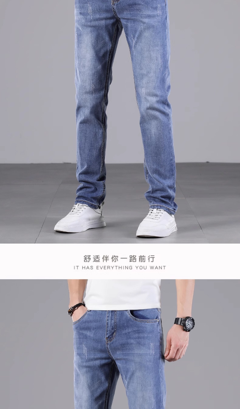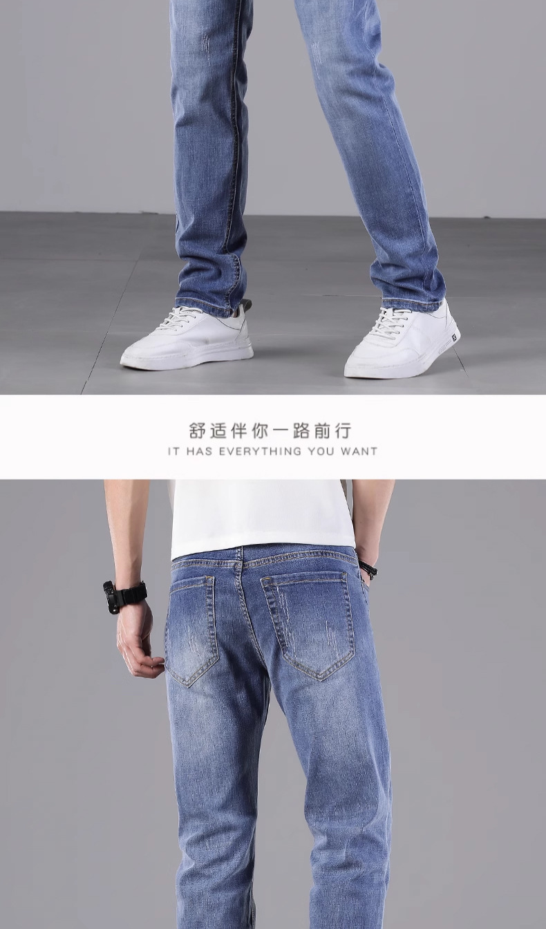 2025 봄 가을 홍콩 스타일 고급 가을 슬림핏 스트레이트 라이트 블루 데님 팬츠 남성 캐주얼 두꺼운 긴바지스토어 가기