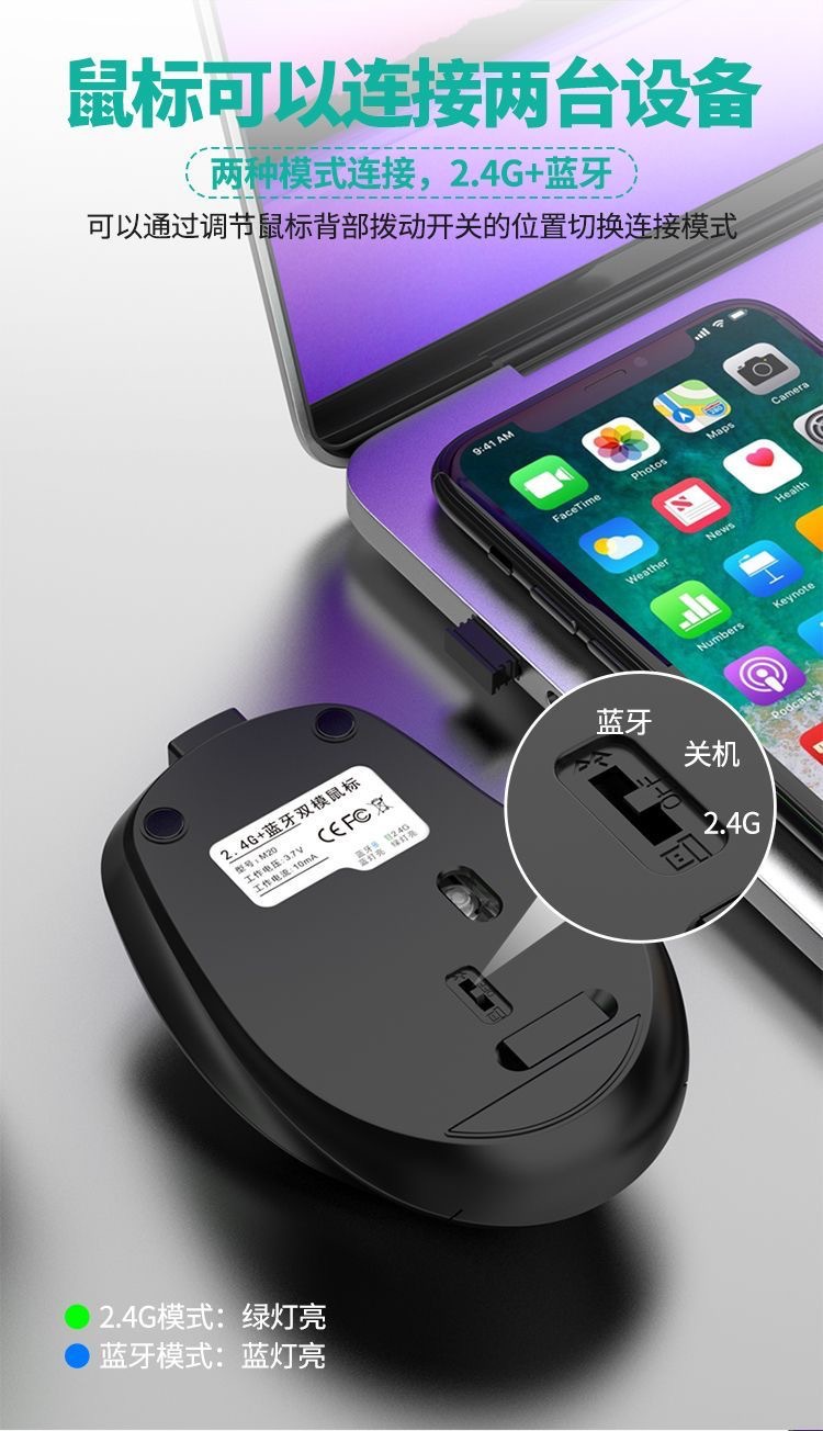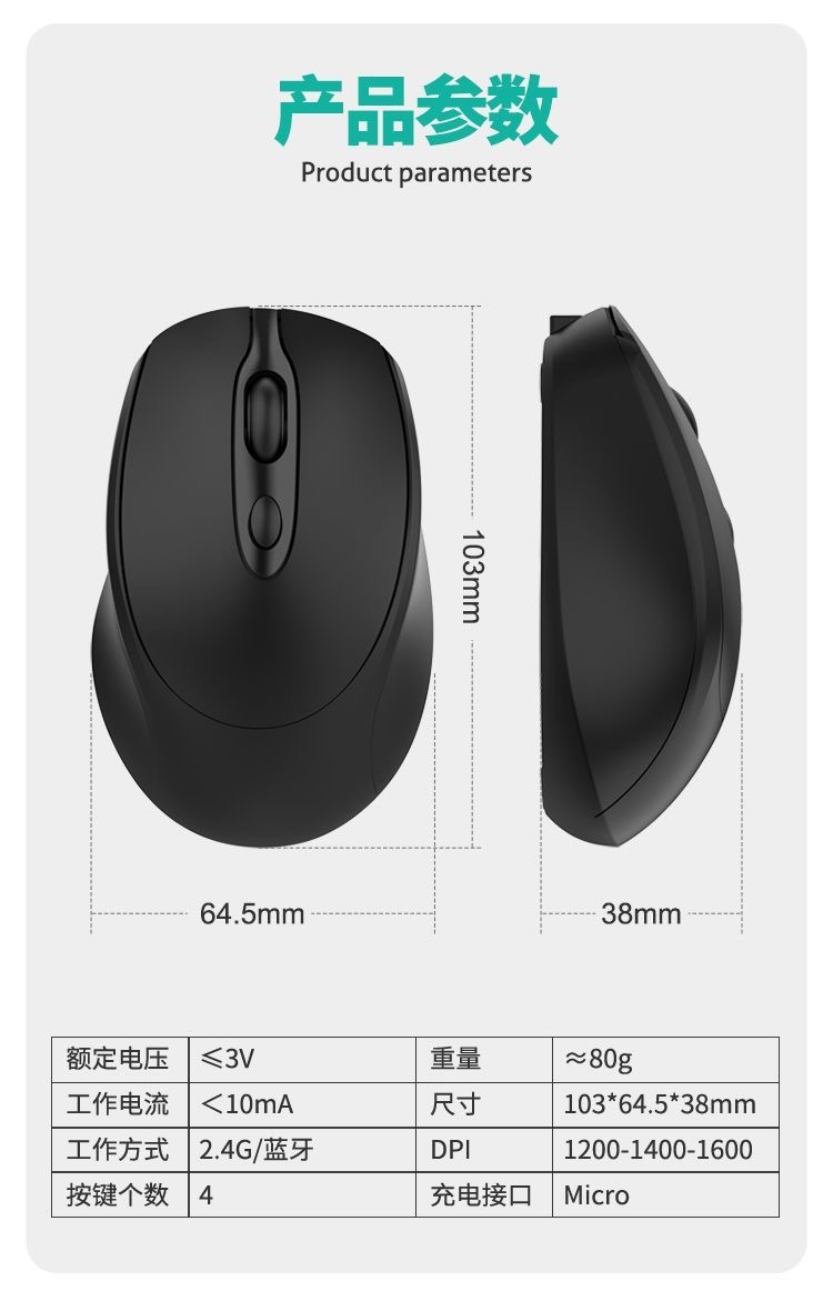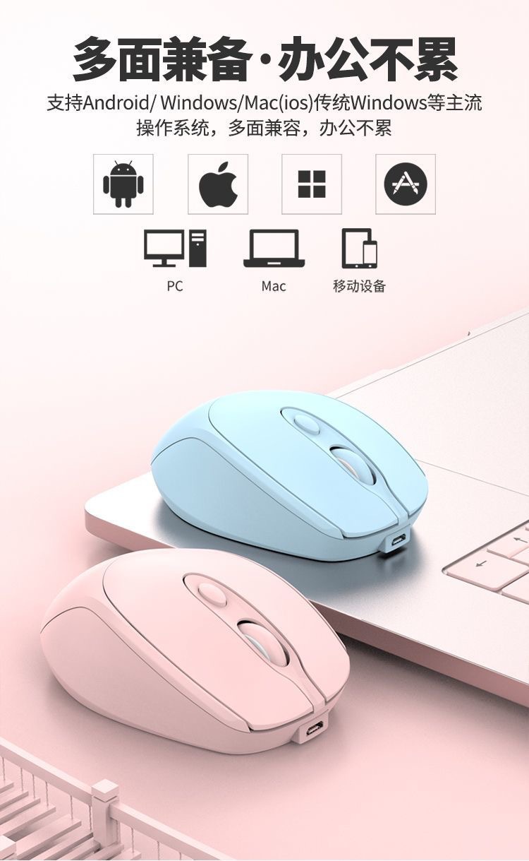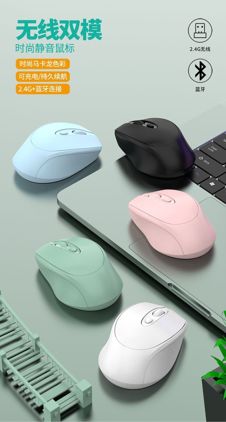 소년 소녀를위한 범용 무선 블루투스 마우스 충전식 듀얼 모드 음소거 오피스 마우스 노트북 데스크톱 컴퓨터 Ma