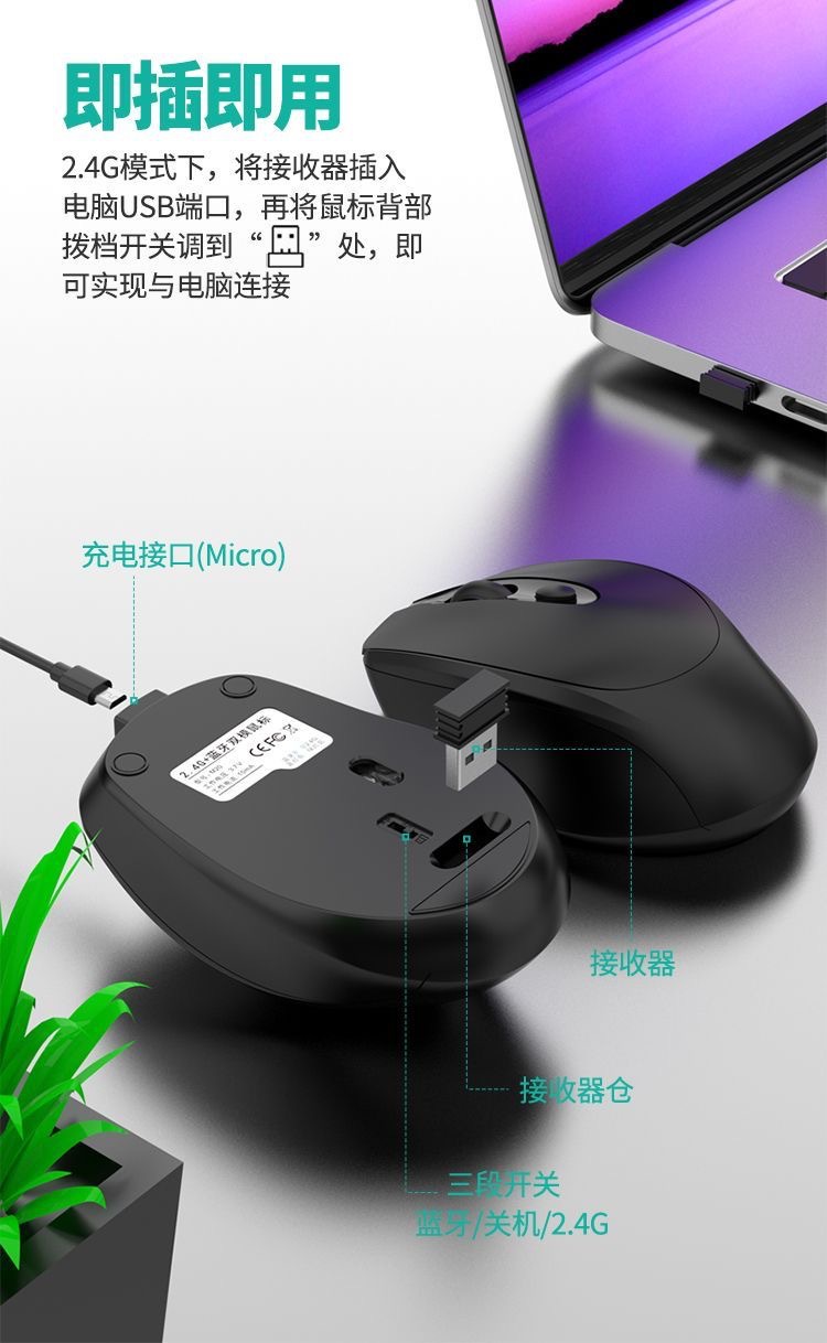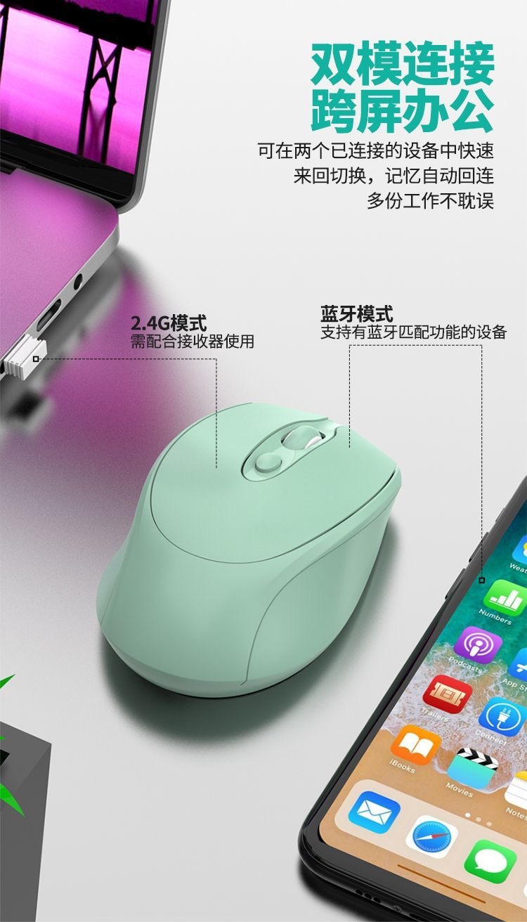 소년 소녀를위한 범용 무선 블루투스 마우스 충전식 듀얼 모드 음소거 오피스 마우스 노트북 데스크톱 컴퓨터 Ma스토어 가기