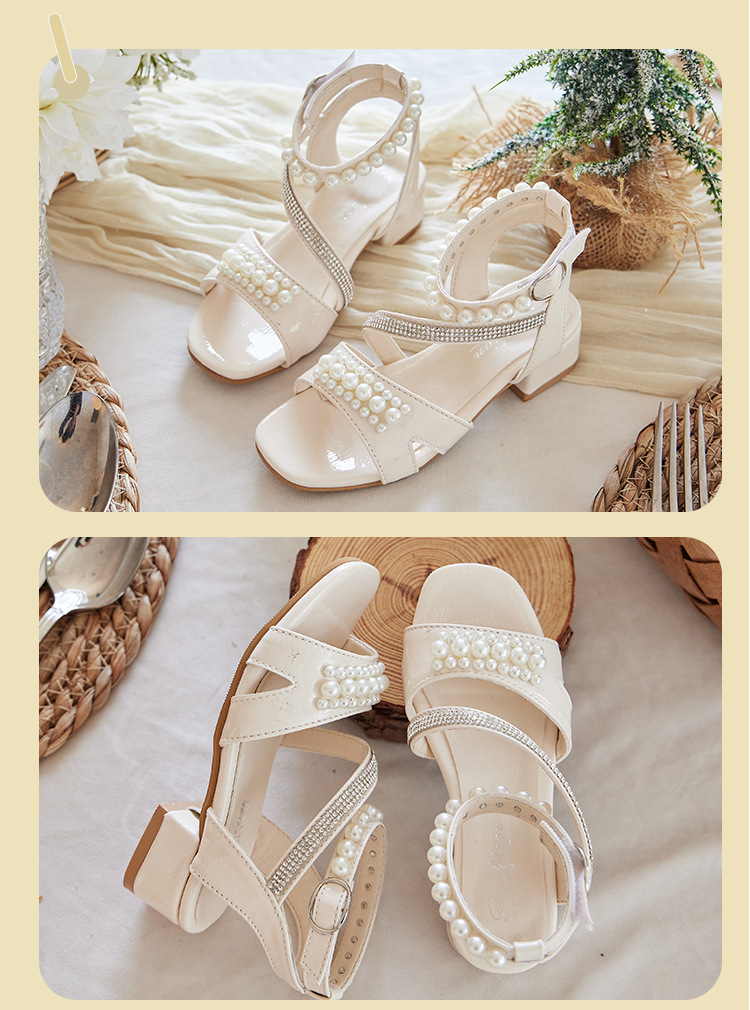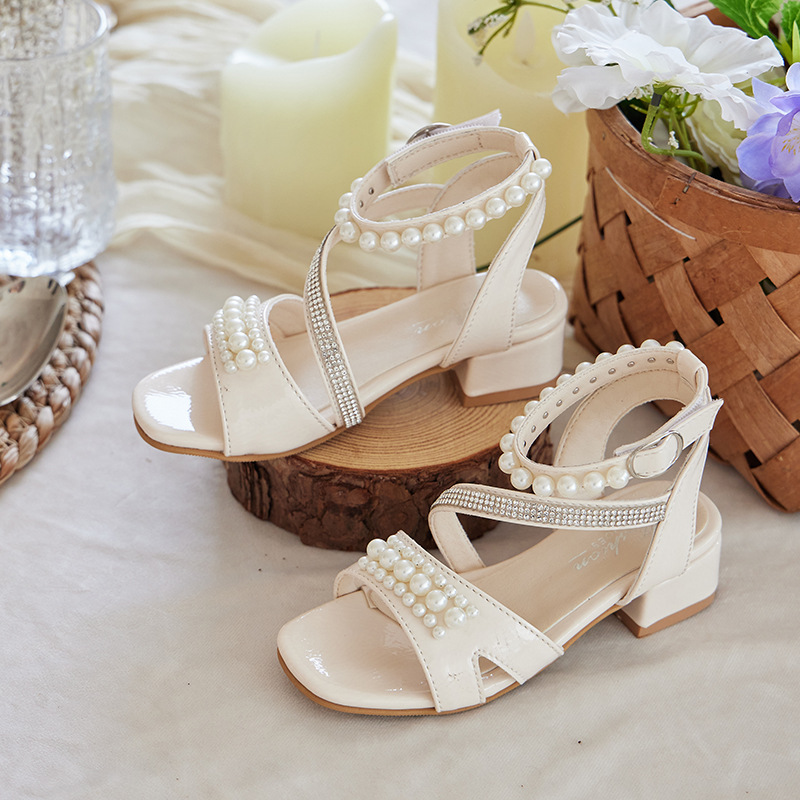 여자 하이힐 샌들 2025 새로운 여름 부드러운 밑창 중대형 어린이 공주 스타일 패션 하이 엔드 캐주얼 어린이 샌들