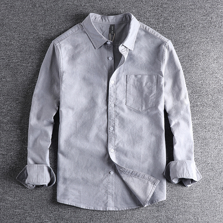 헤비 워싱 옥스포드 셔츠 남성용 긴팔 기본 포켓 남성용 셔츠 캐주얼 코튼 인치 셔츠 남성용 탑