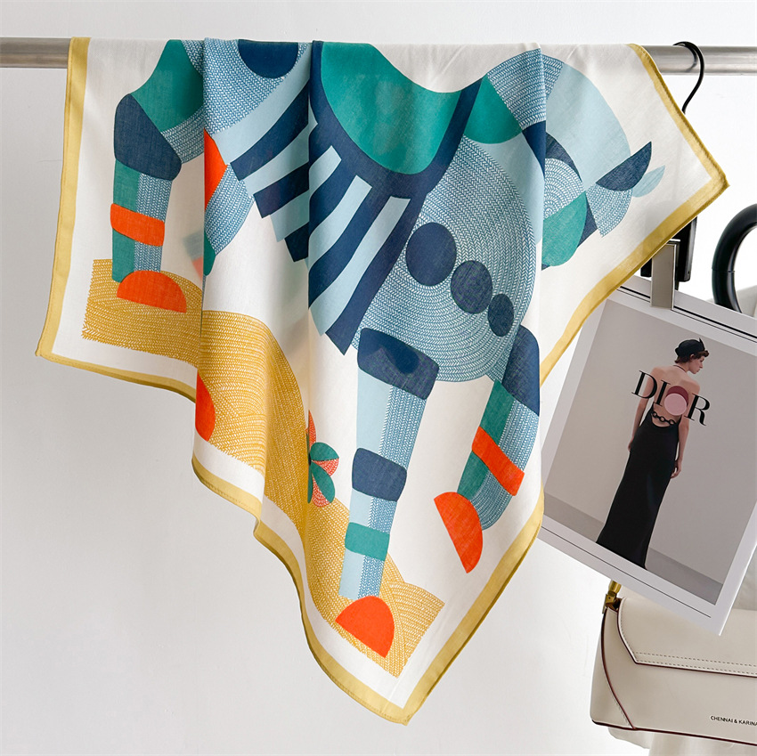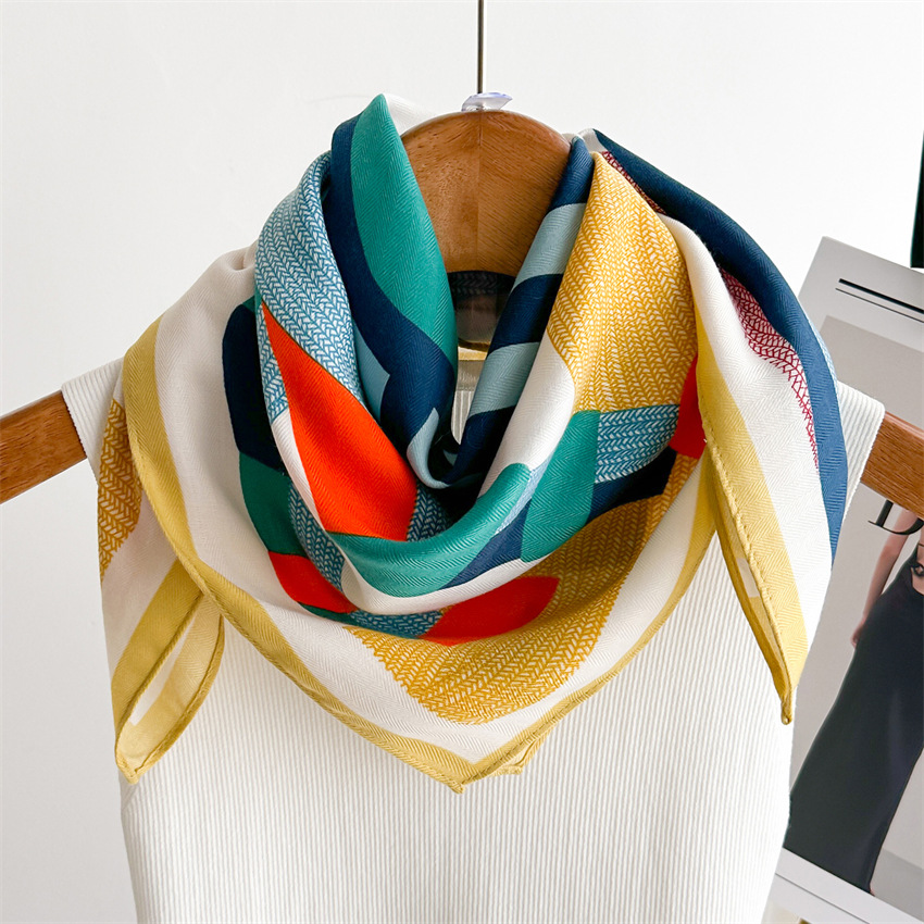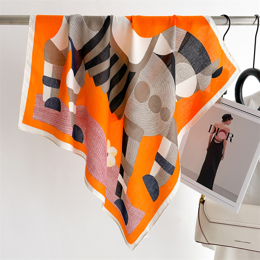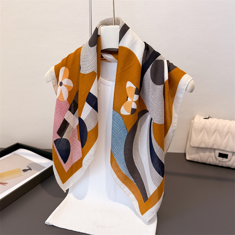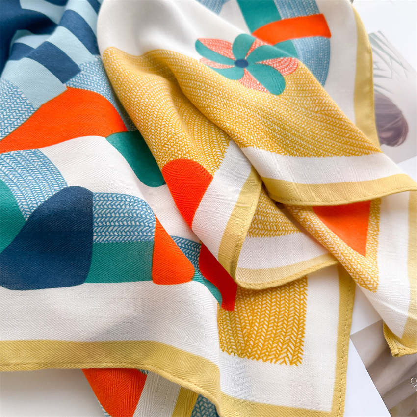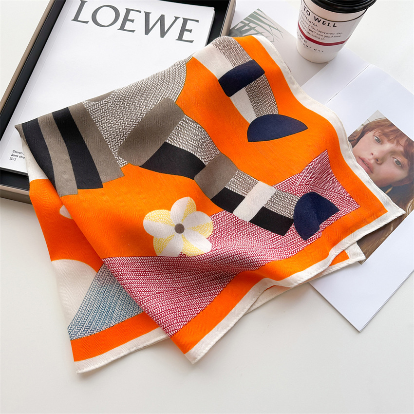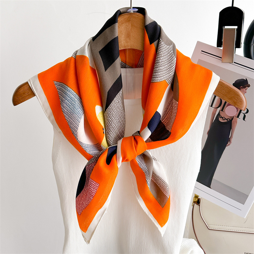 새로운 오렌지 포니 인쇄 실크 스카프 머리 스카프 신선한 헤링본 작은 광장 모방 벨벳 목도리 스카프스토어 가기