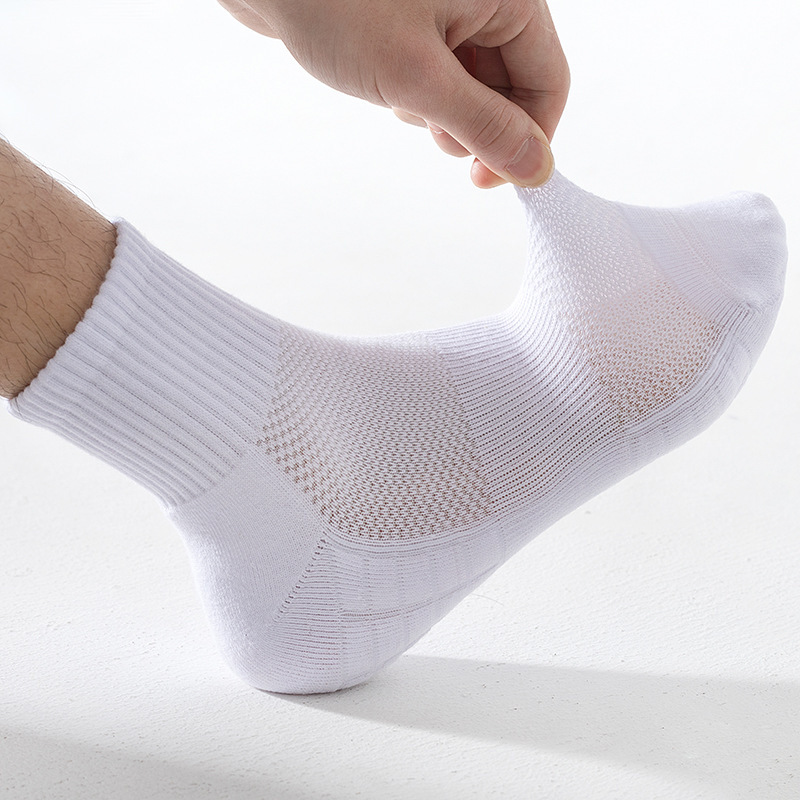 맞춤형 남성용 러닝 농구 양말, 중간 길이의 메쉬 스포츠 뼈없는 양말, 수건 바닥, 통기성, 땀 흡수성 단색