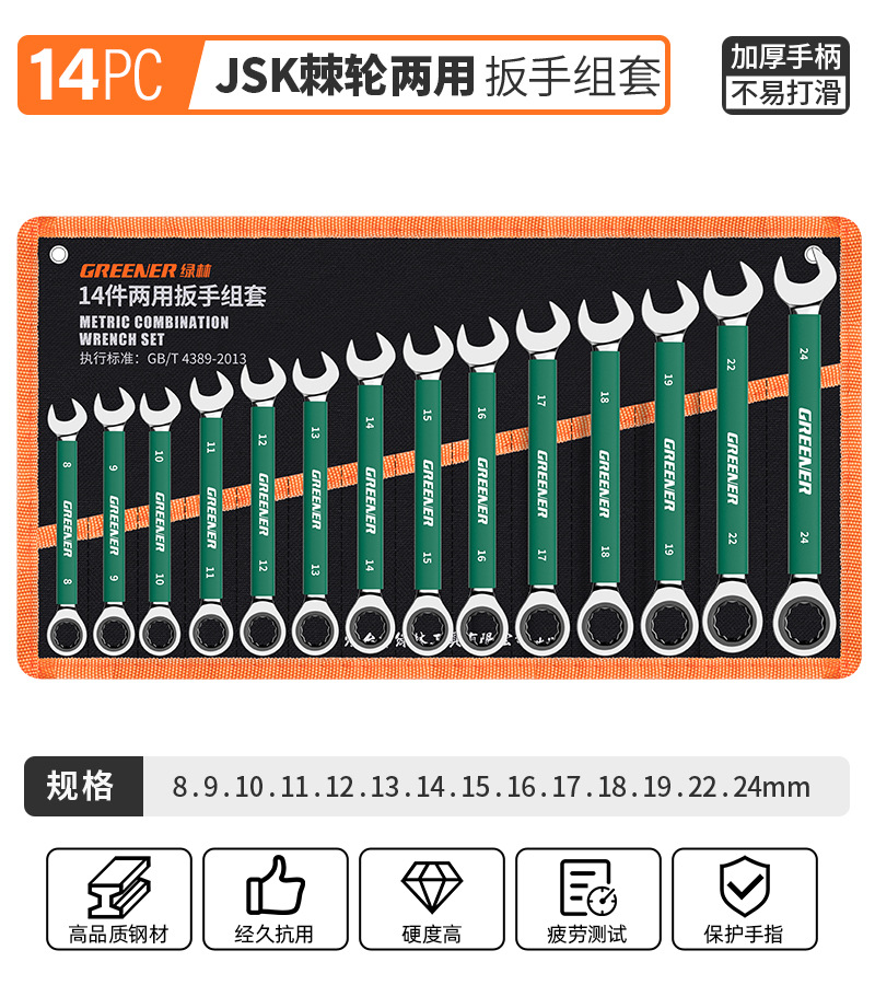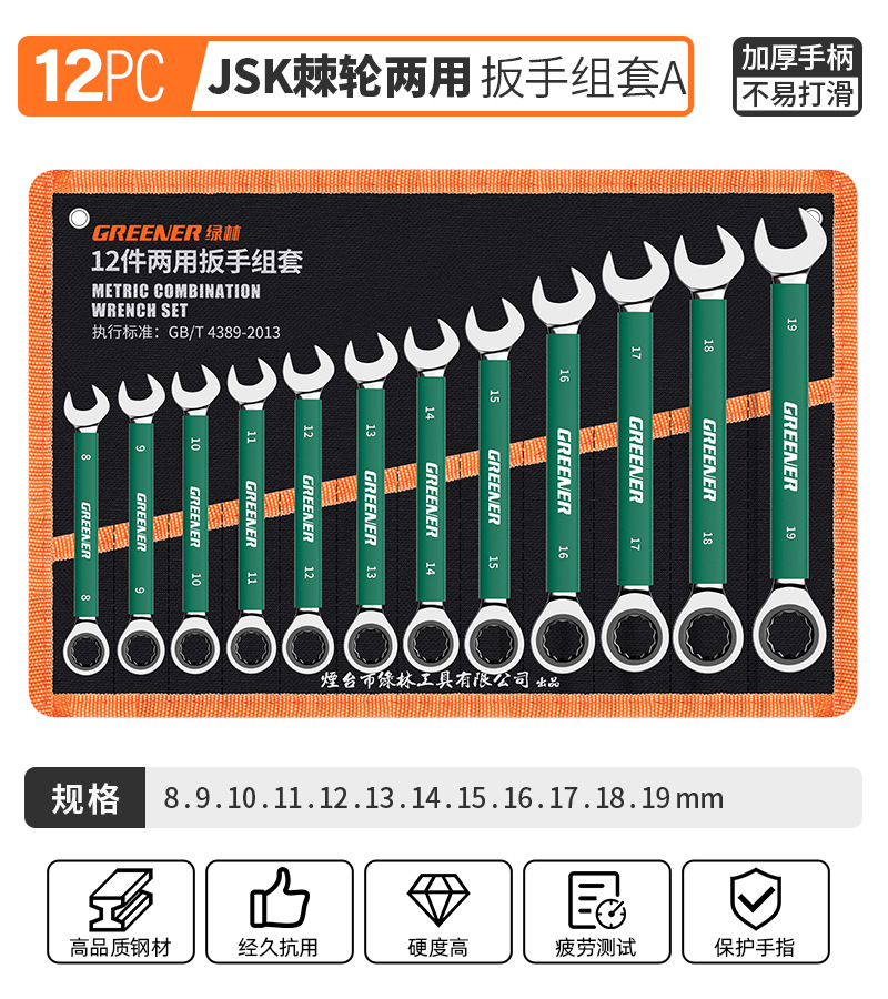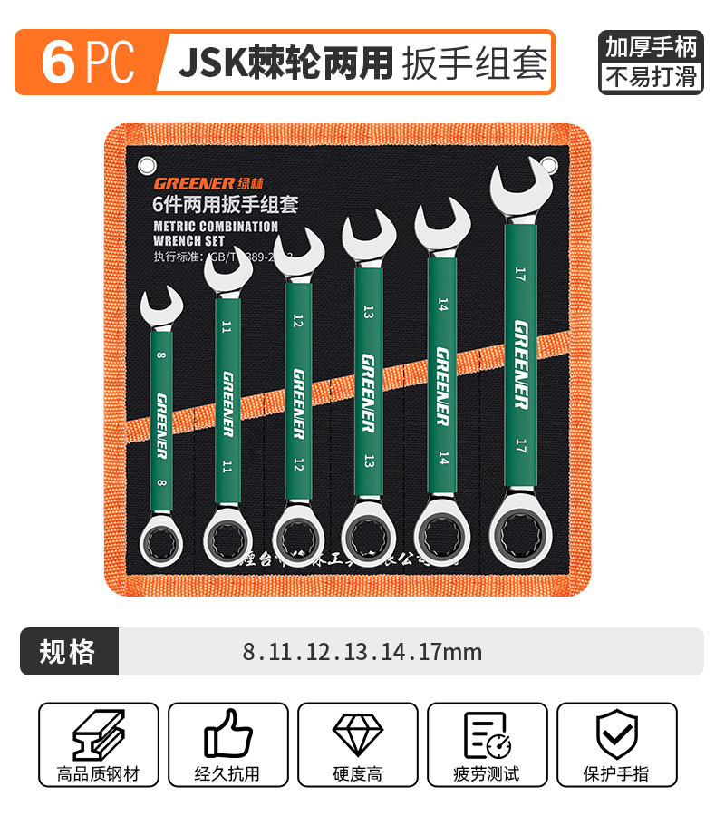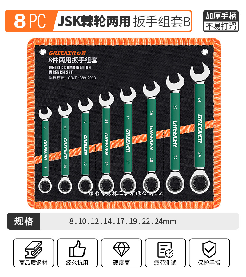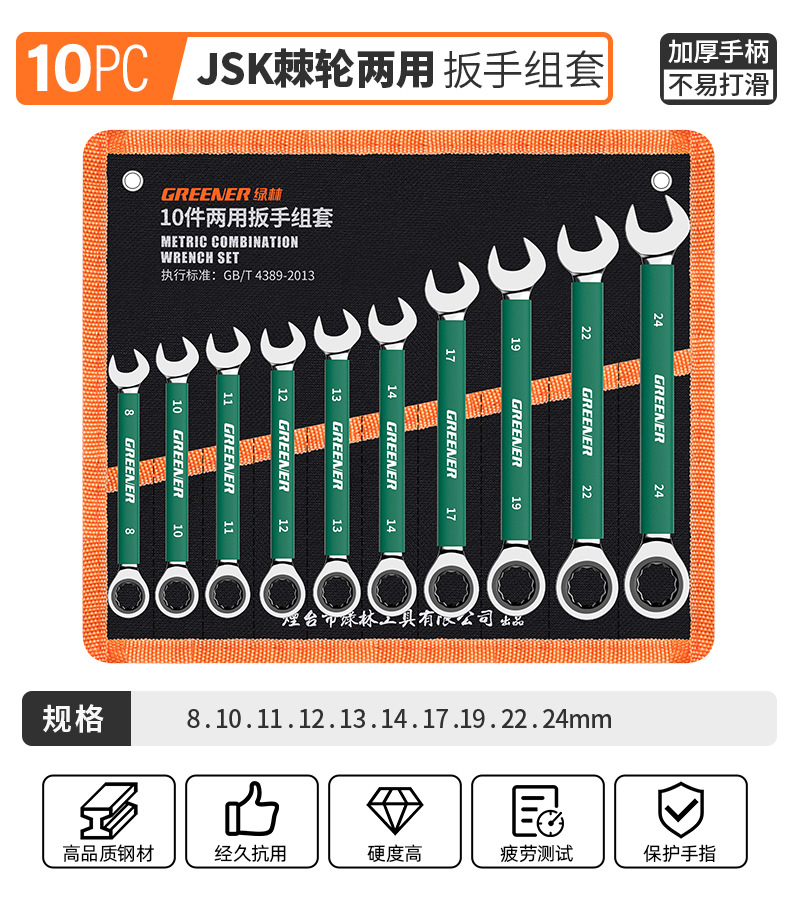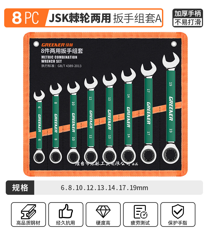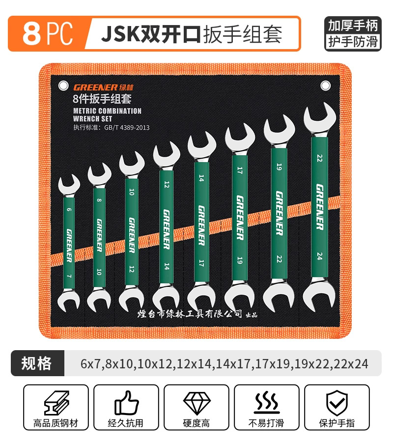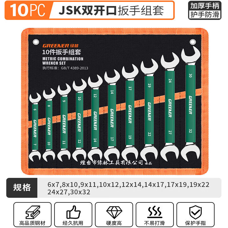 녹색 숲 플라스틱 코팅 개방형 이중 목적 렌치 No. 10 7 솔리드 렌치 13 매화 고정 8mm 조합 렌치 공구 세트