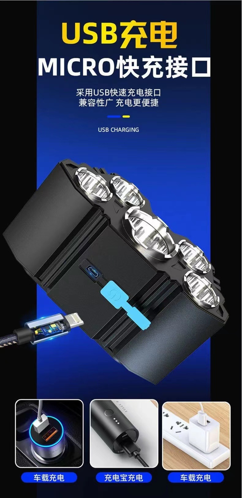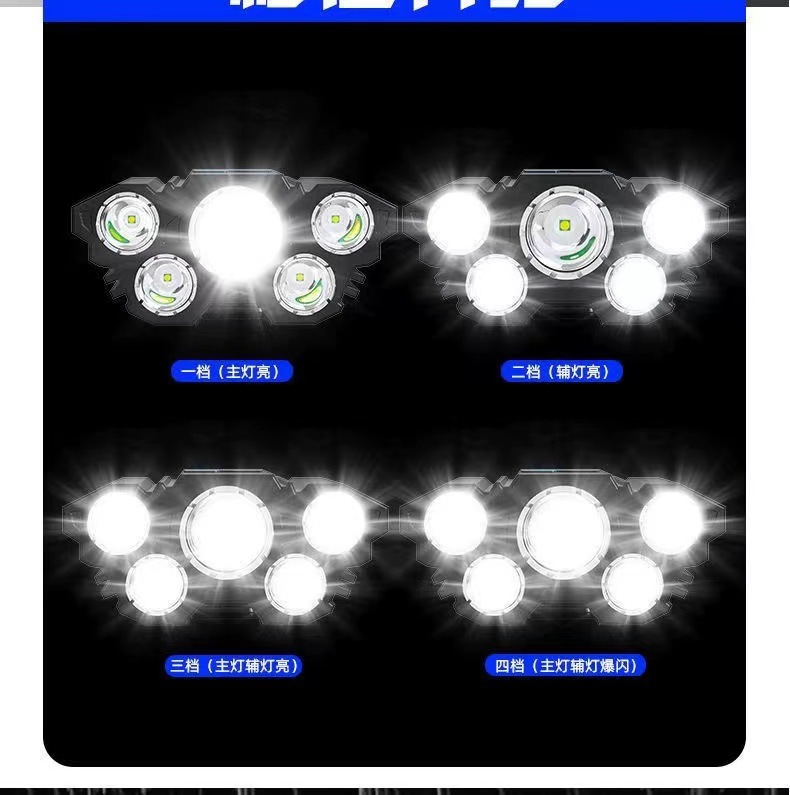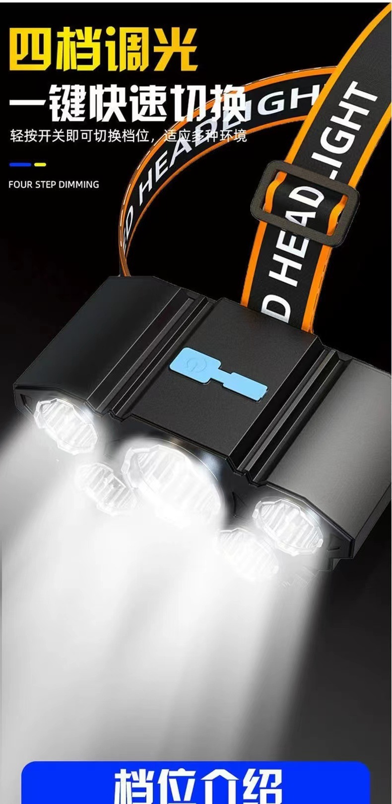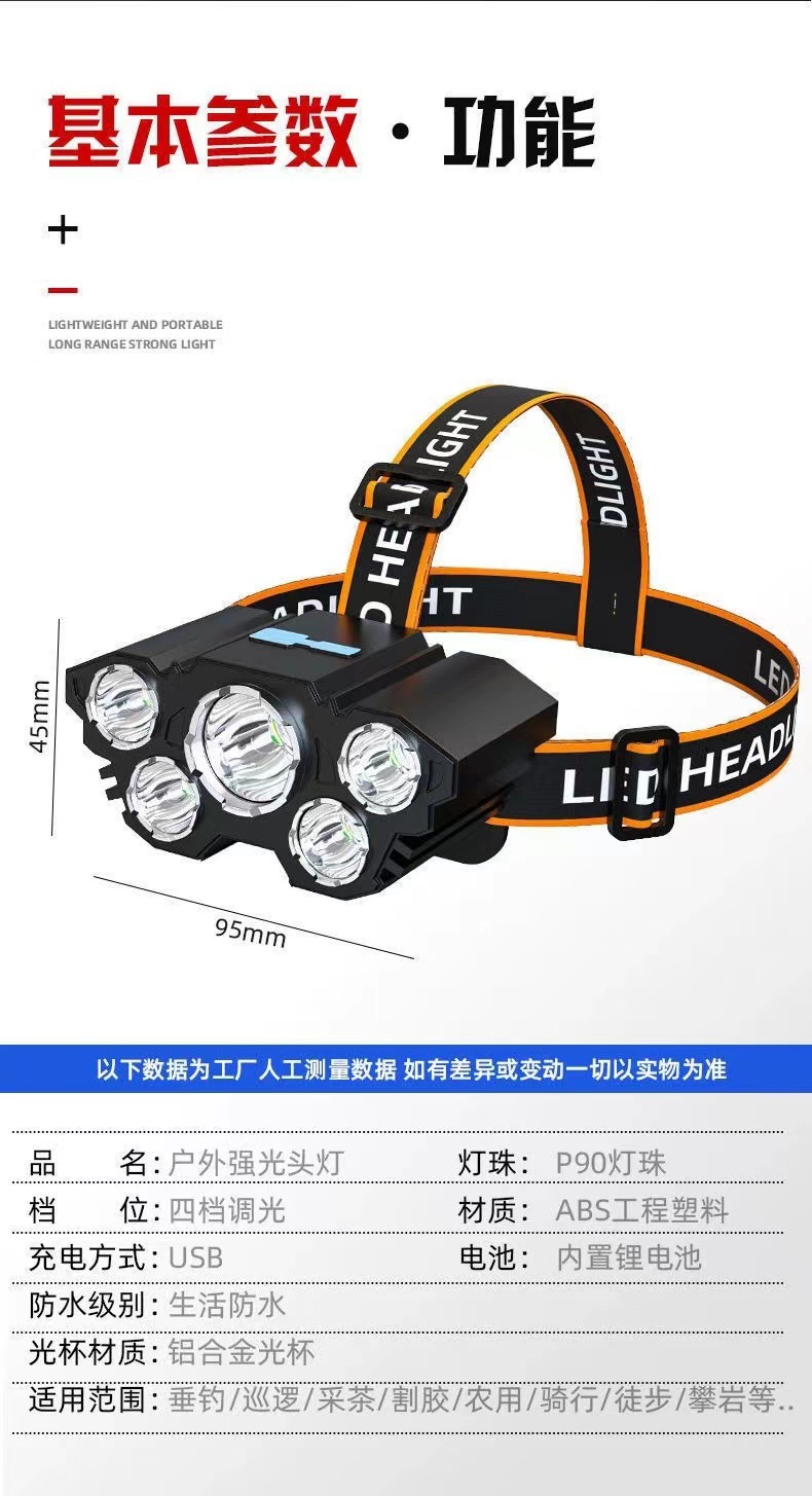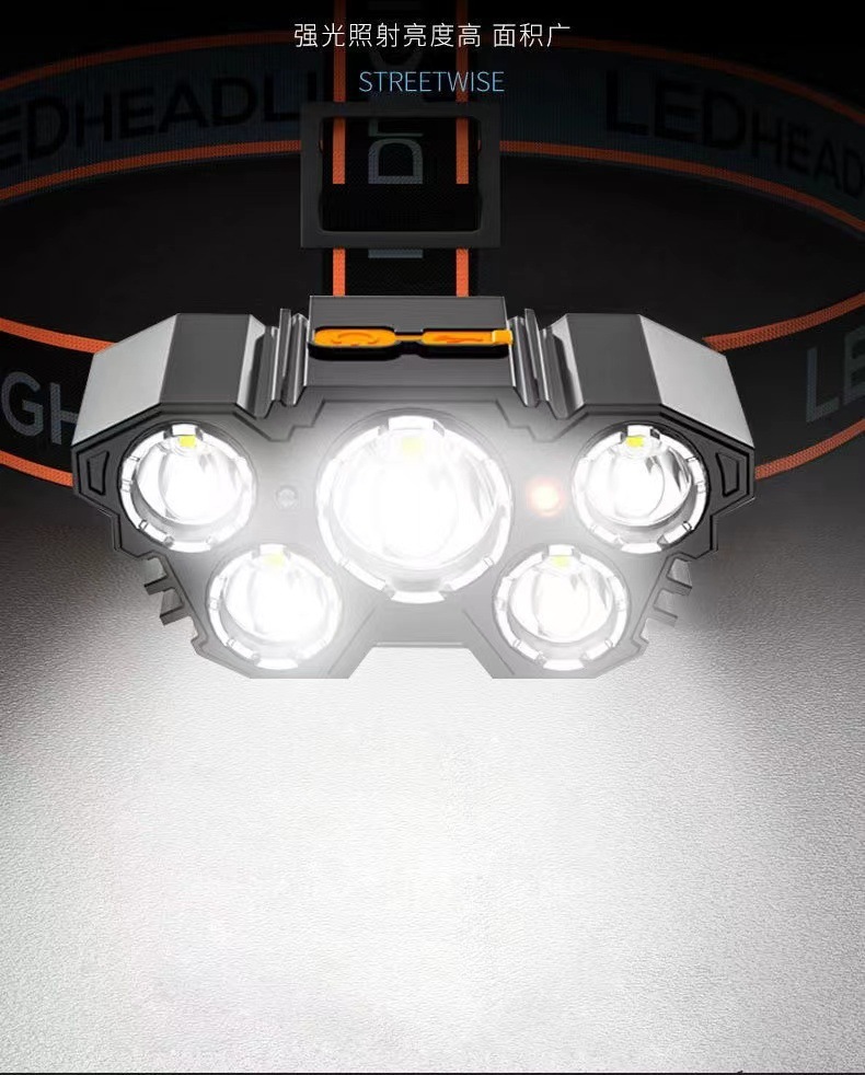 국경 5LED 강한 전조등 충전 긴 내구성 슈퍼 밝은 머리 장착 손전등 야외 휴대용 조명 낚시 헤드 라이트