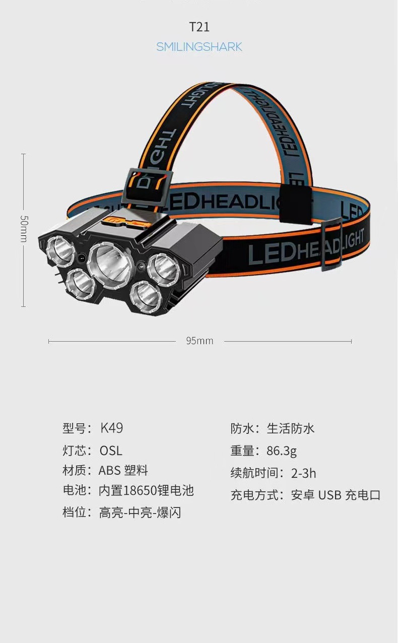 • T21 5개의 헤드라이트 + [18650 배터리]