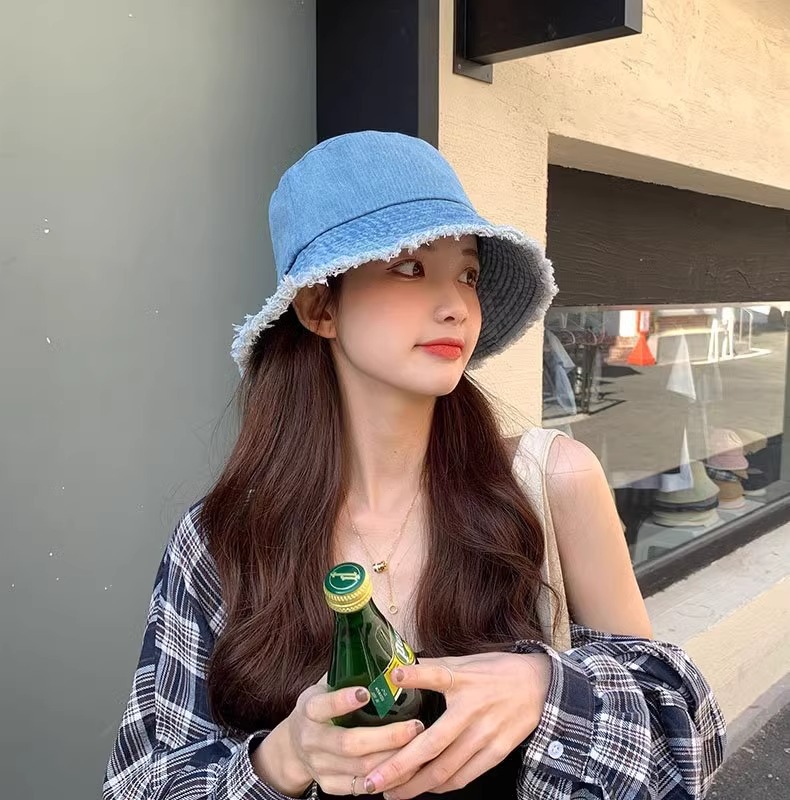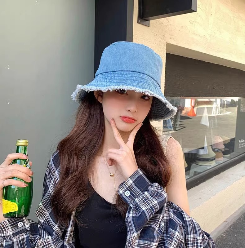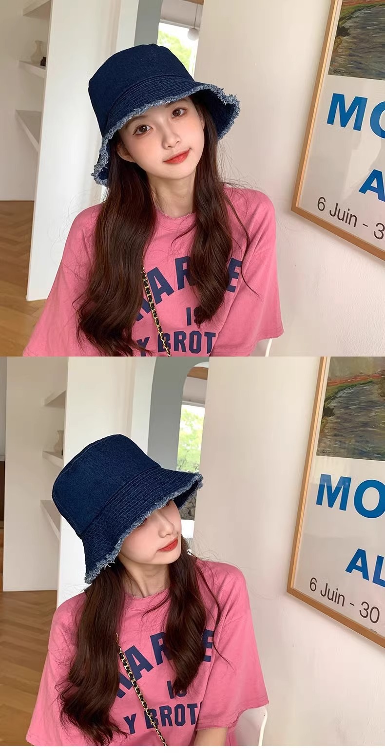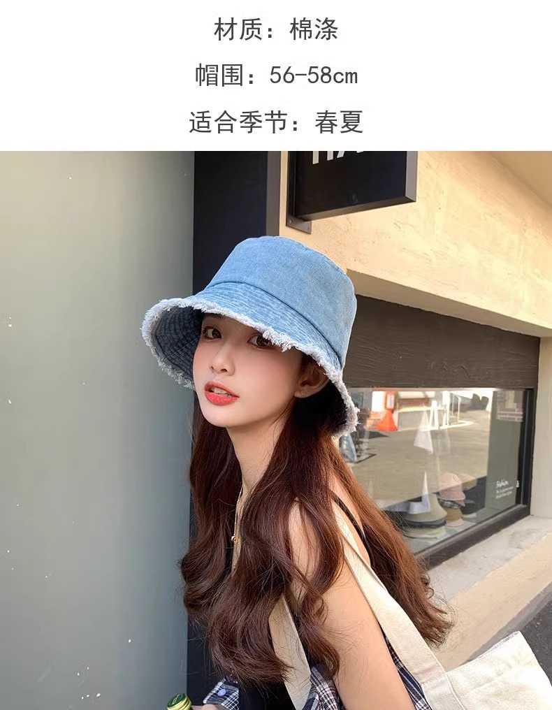 챙이 큰 데님 모자 여성용 버킷햇 햇빛 차단 한국 스타일 썬햇 얼굴 가리기 다용도 얼굴 작아보이게 하는 모자스토어 가기