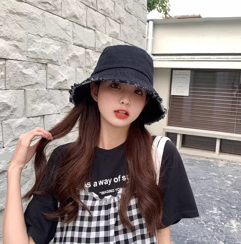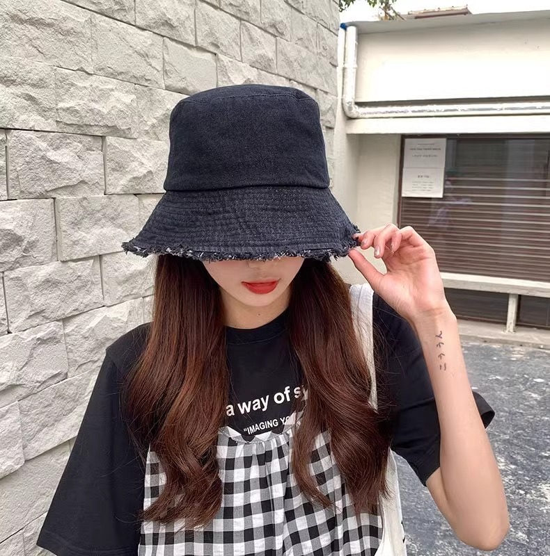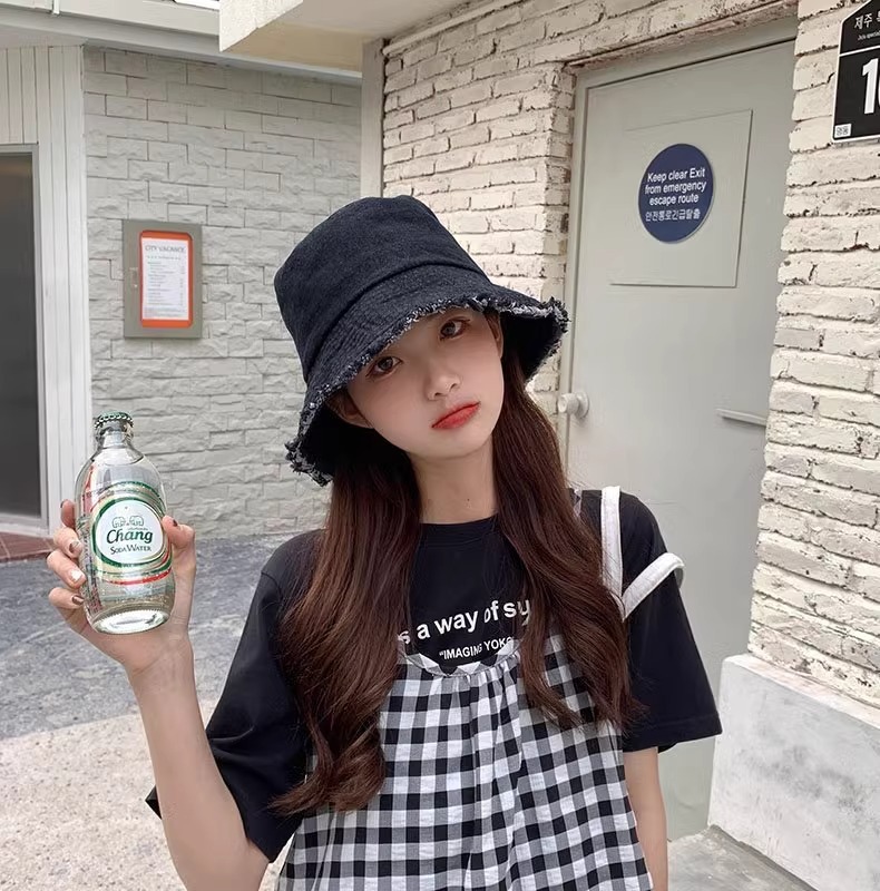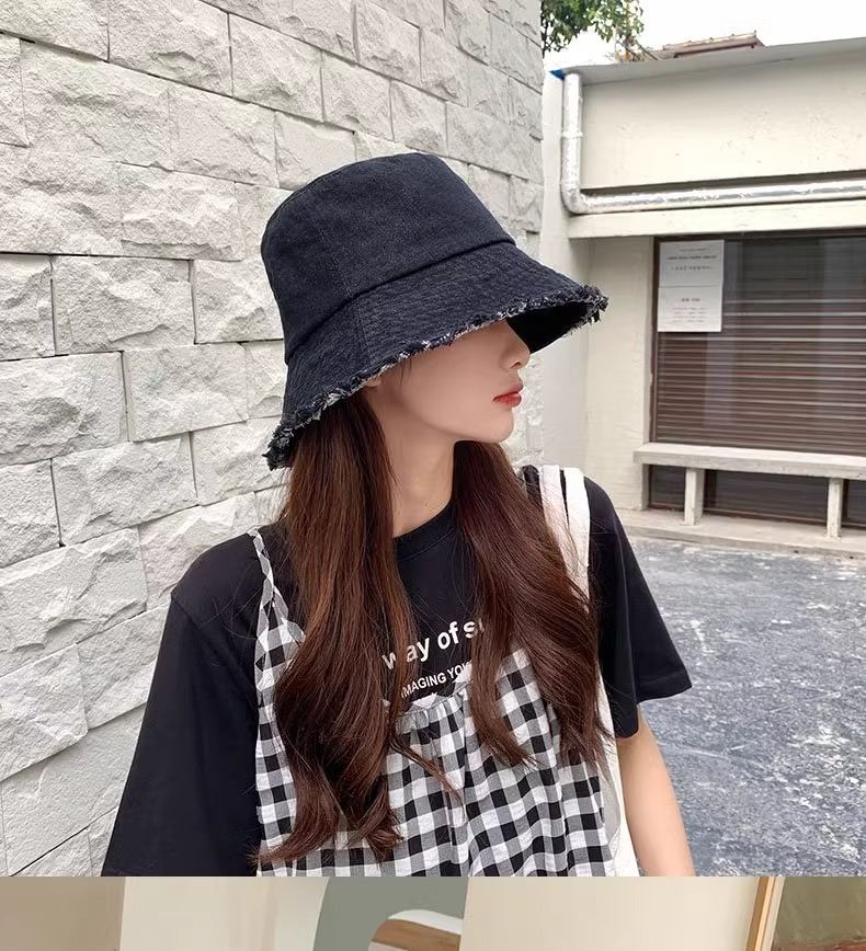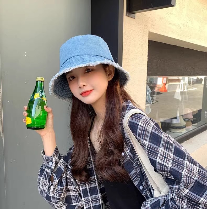 챙이 큰 데님 모자 여성용 버킷햇 햇빛 차단 한국 스타일 썬햇 얼굴 가리기 다용도 얼굴 작아보이게 하는 모자스토어 가기
