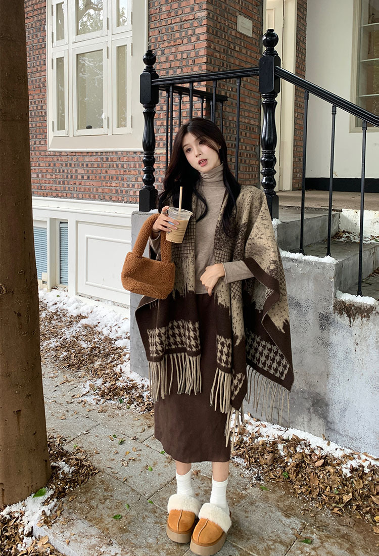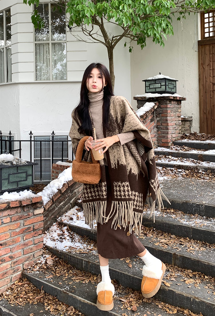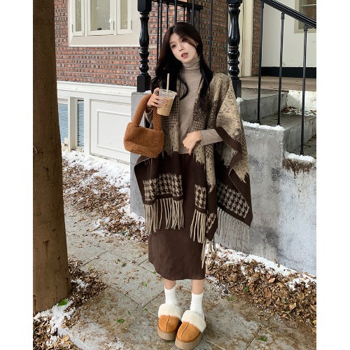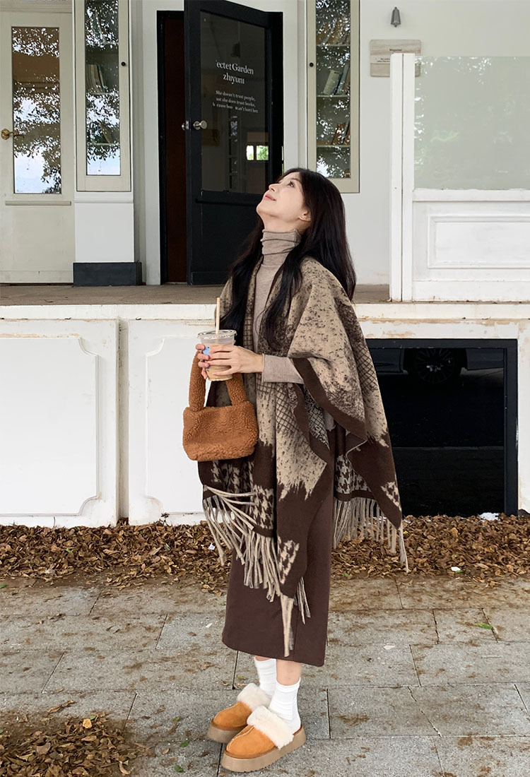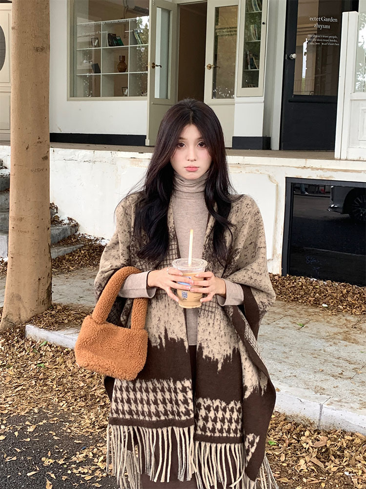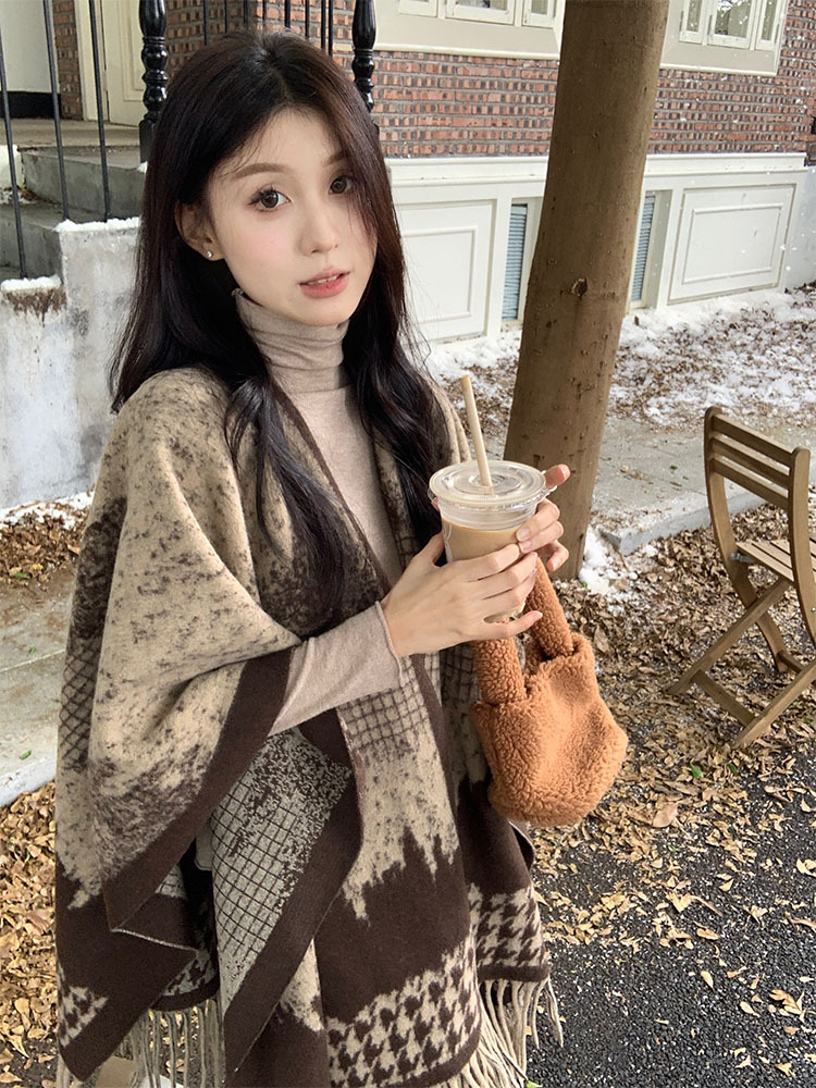 가을과 겨울 2023 새로운 따뜻한 목도리 담요 외부 니트 카디건 케이프 케이프 여성의 올 매치 스카프스토어 가기