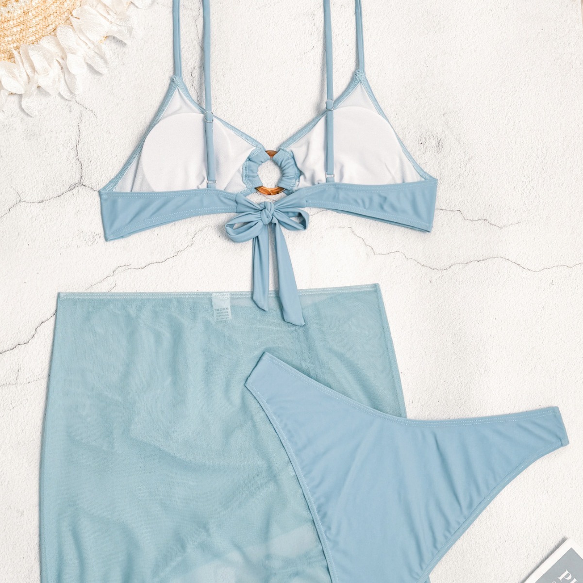 국경을 넘나 드는 유럽과 미국 스타일의 스플릿 링 수영복 여성의 슬림 핏 단색 섹시한 수영복 홀터 3 피스 비키니