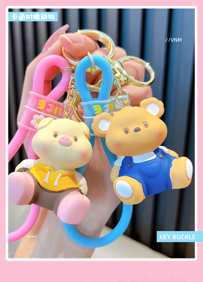 수지 동물 키 체인 펜던트 낙서 얼굴 토끼 자동차 키 체인 만화 절묘한 인형 작은 선물 도매스토어 가기