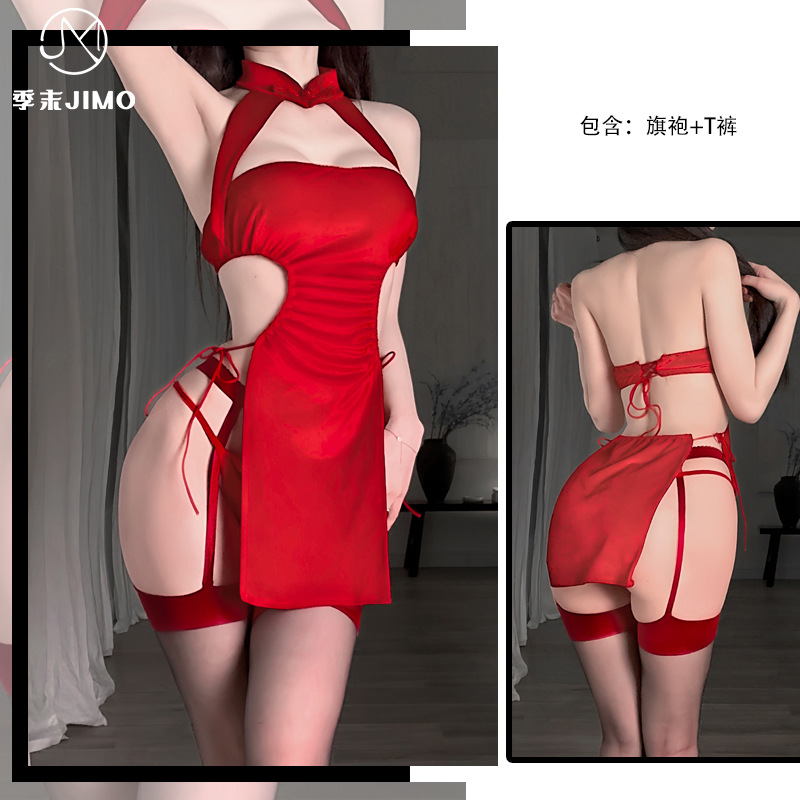 섹시한 벨벳 cheongsam 섹시한 란제리 오픈 엔드 프리 유니폼 유혹 슬릿 레이스 업 파자마 원피스 배달 6056스토어 가기