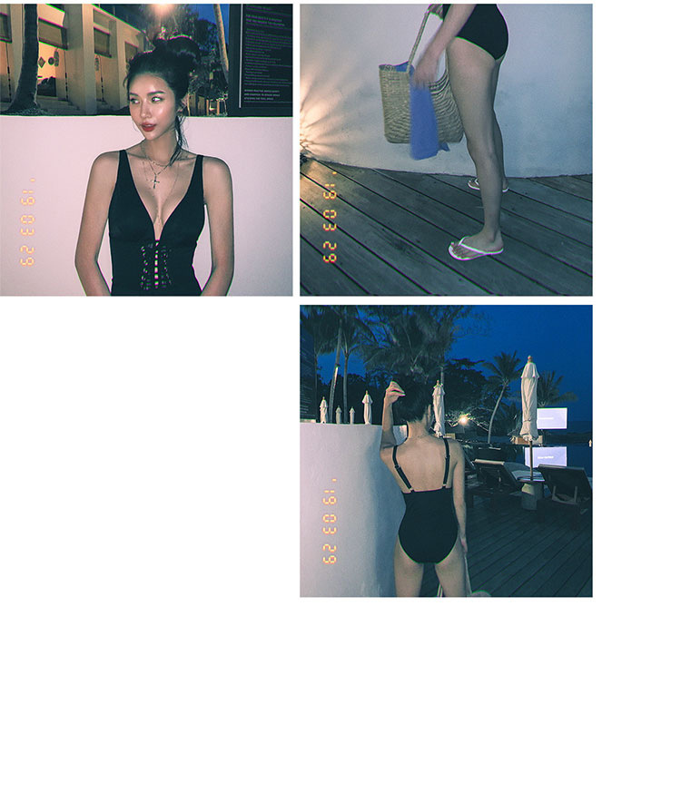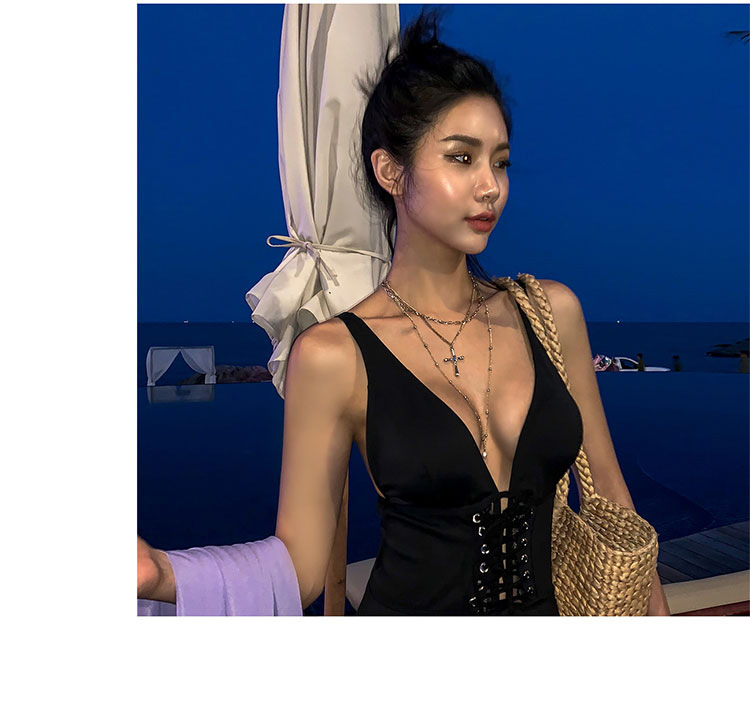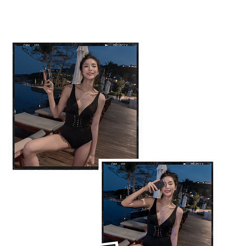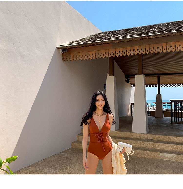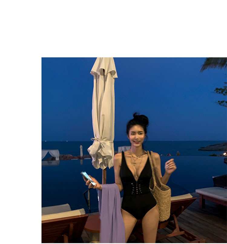 여성을위한 웨이브 수영복 2022 새로운 한국 등이없는 섹시한 배꼽 슬리밍 삼각형 원피스 온천 휴가 수영복스토어 가기