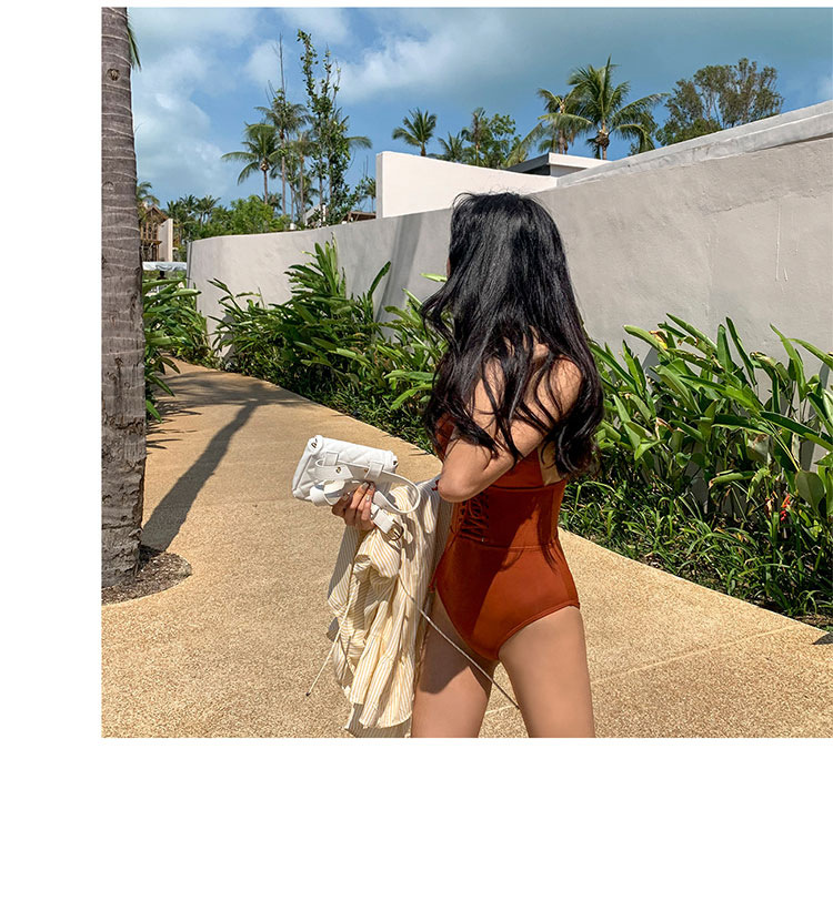 여성을위한 웨이브 수영복 2022 새로운 한국 등이없는 섹시한 배꼽 슬리밍 삼각형 원피스 온천 휴가 수영복