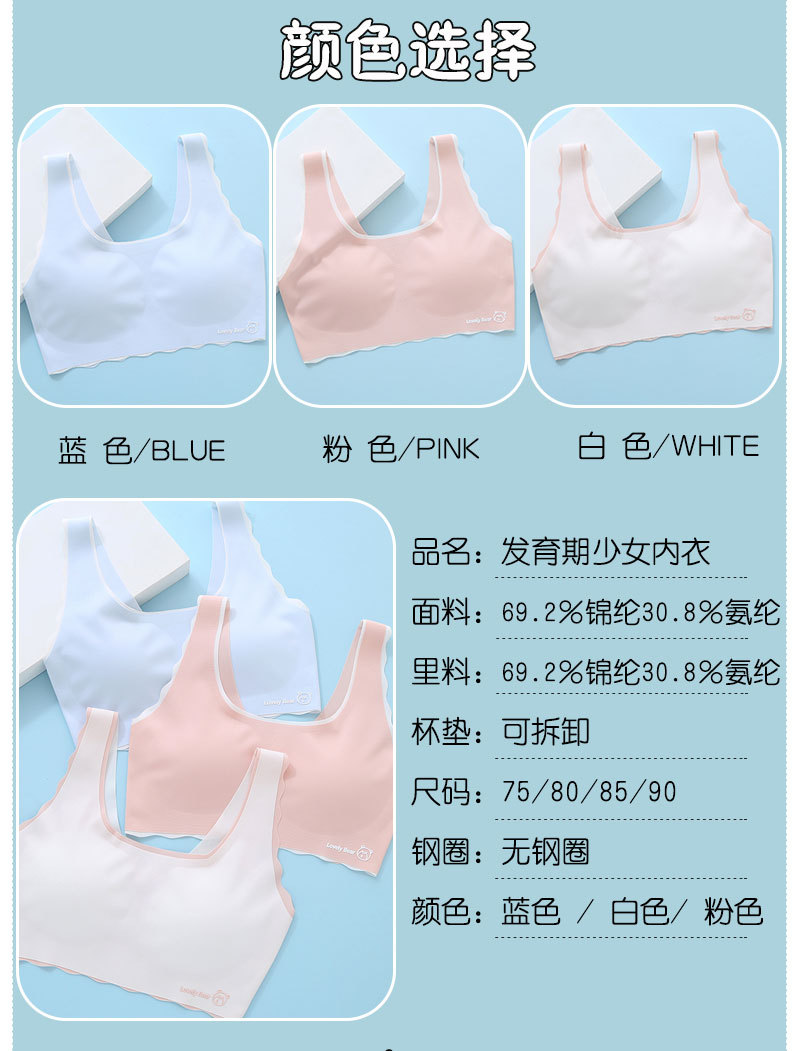 개발 기간 소녀 속옷 원활한 튜브 최고 중학교 학생 조끼 초박형 고정 컵 소녀 브래지어스토어 가기