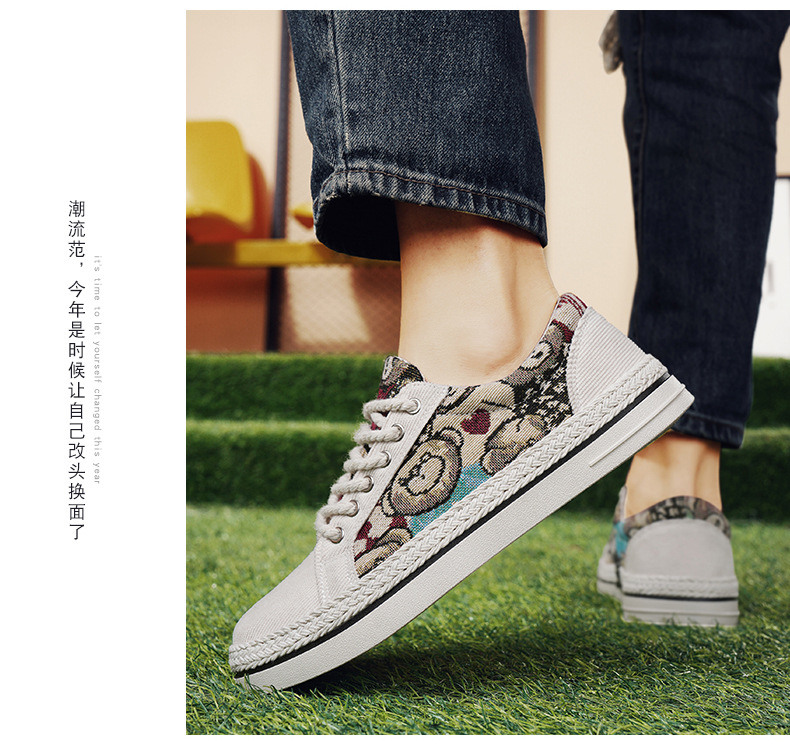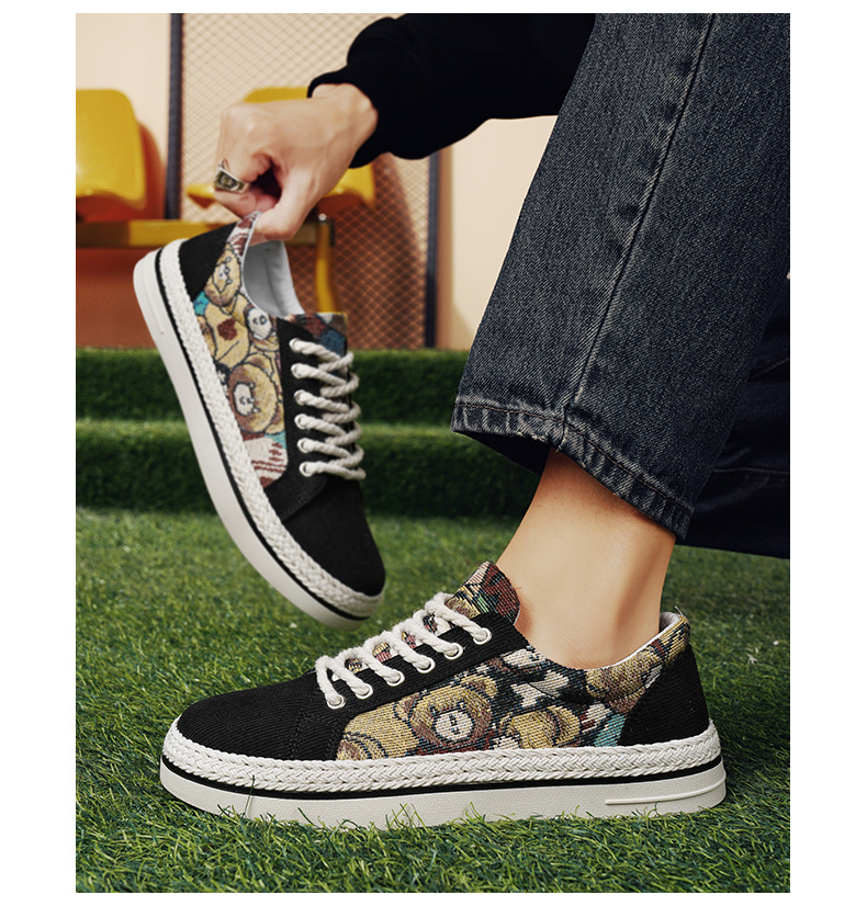 새로운 봄과 가을 트렌디 한 올 매치 홍콩 스타일 린넨 스포츠 캐주얼 스니커즈 오래된 베이징 천 슈즈를 2024 남성 신발스토어 가기