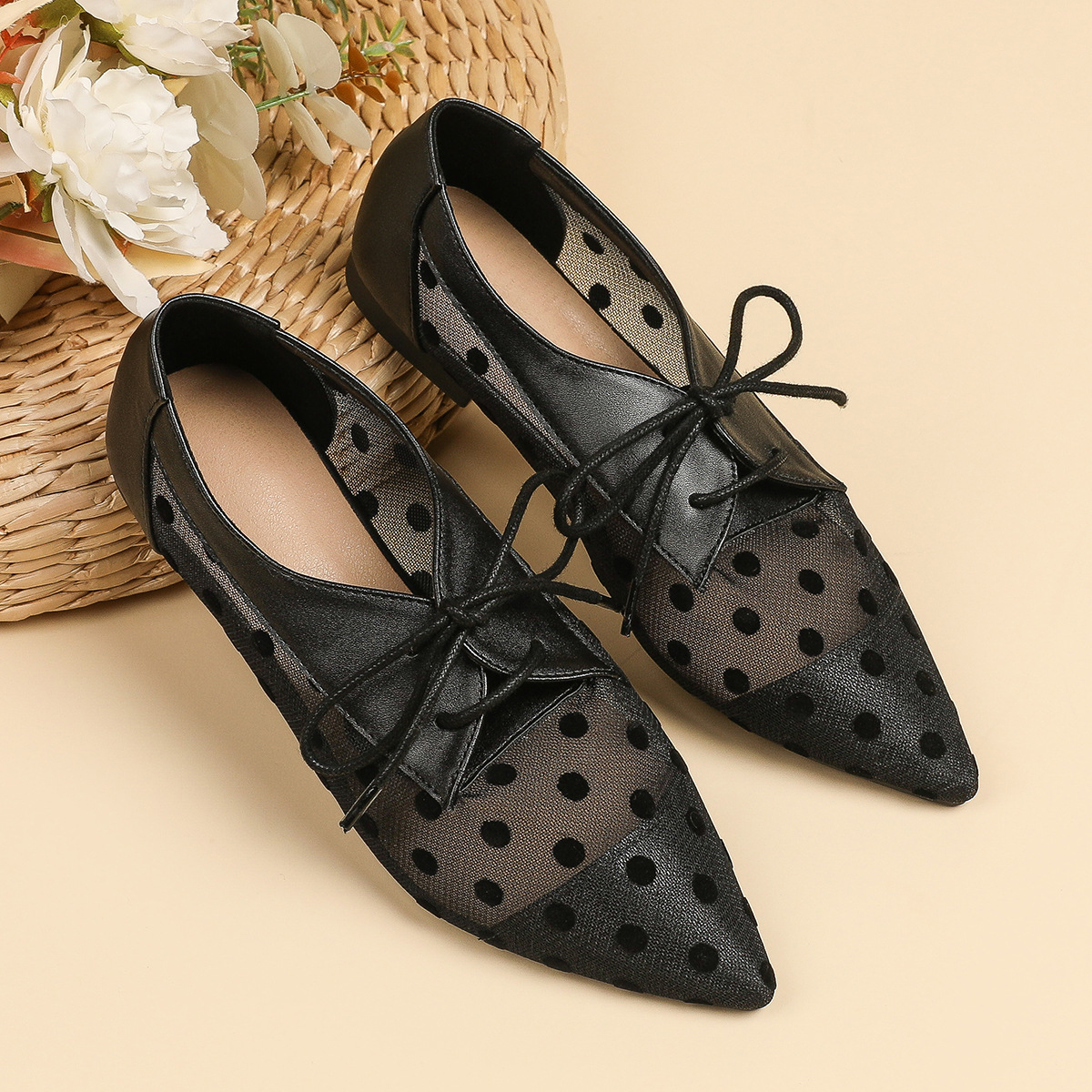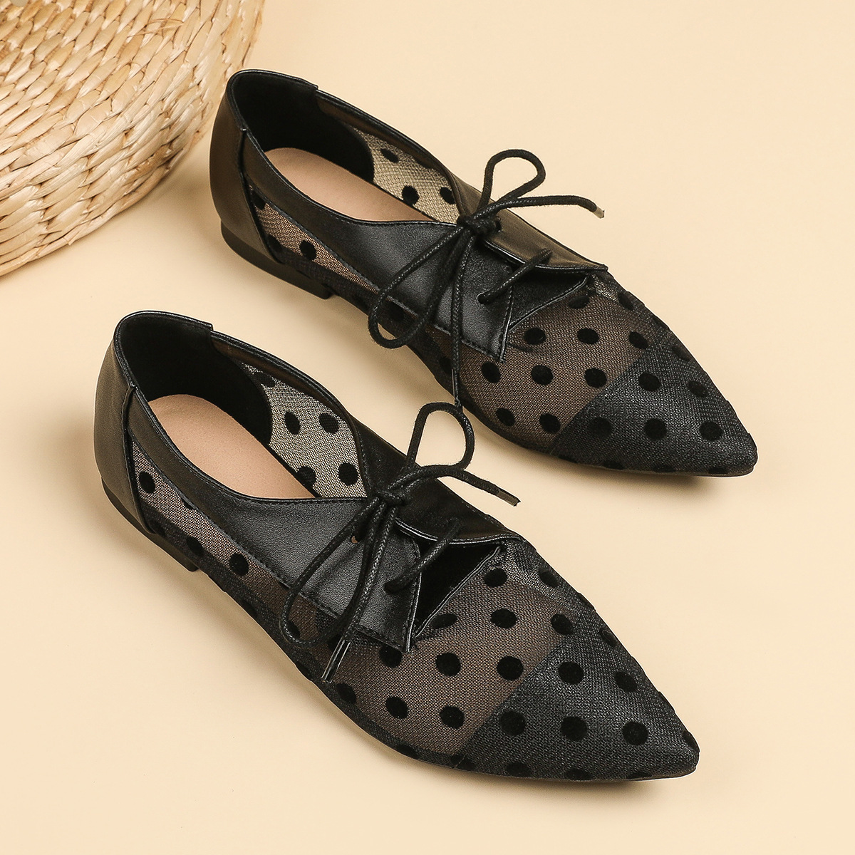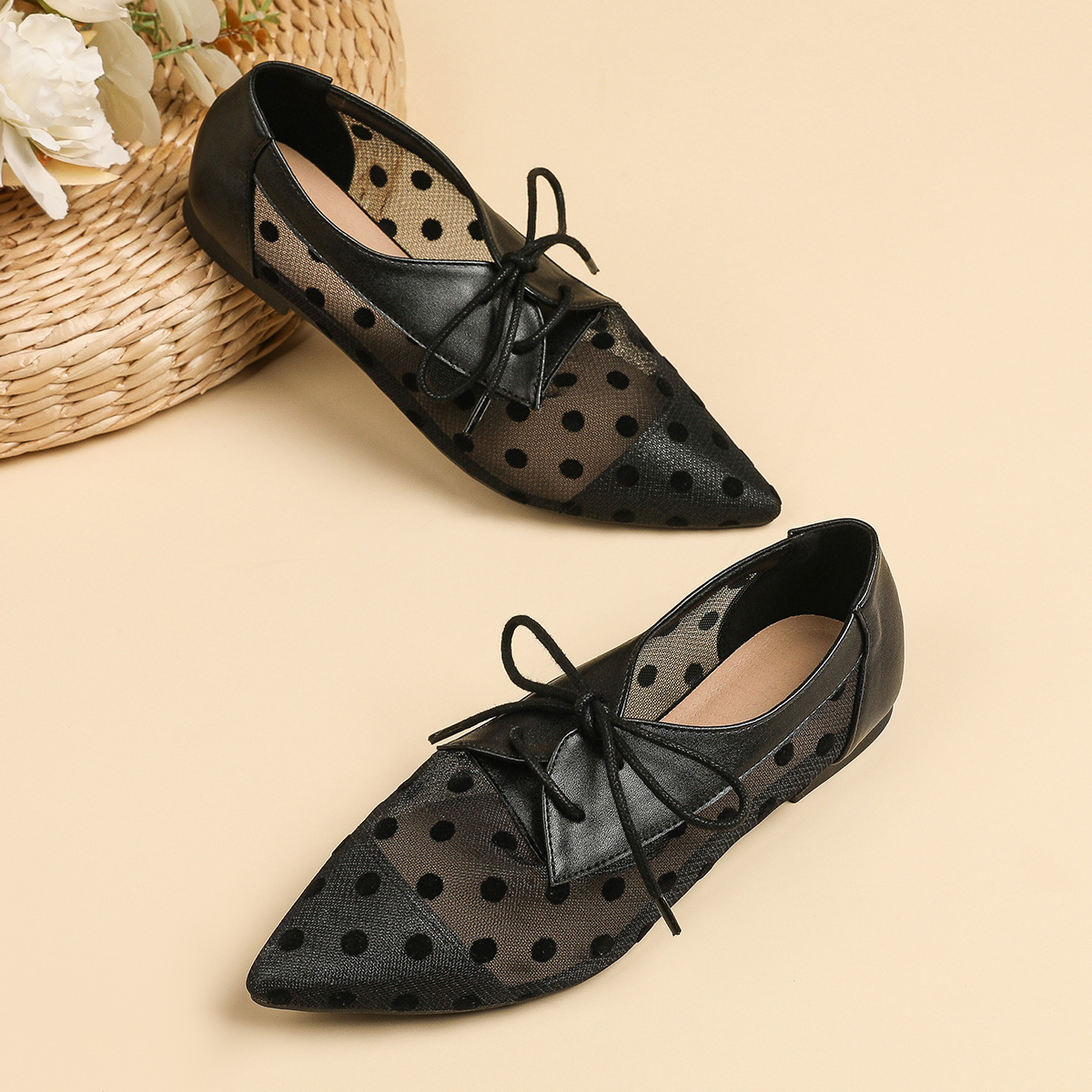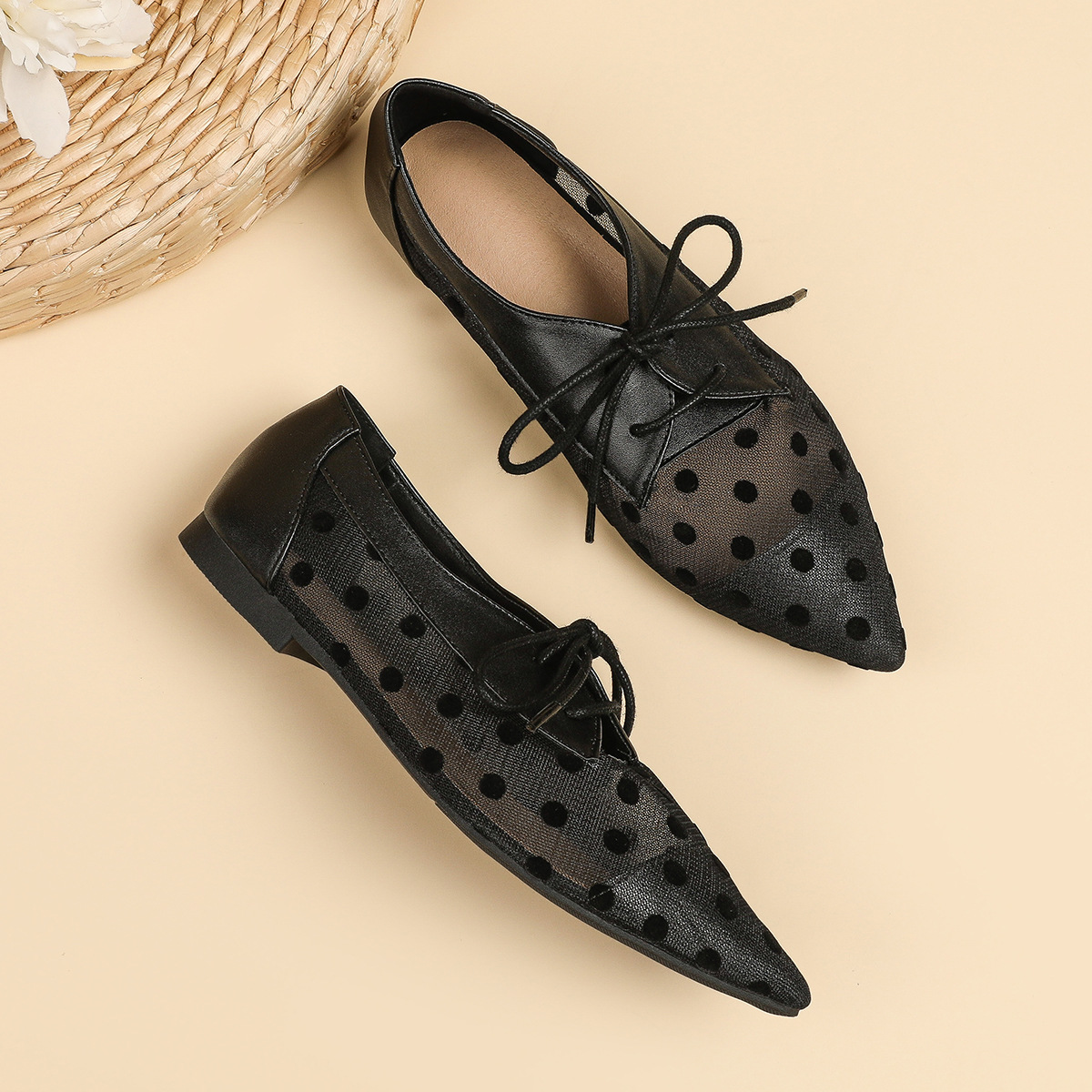 소량 주문 가능 동남아시아 스타일 뾰족코 메쉬 레이스업 플랫 여성화 물방울 무늬 통기성 샌들 대형 사이즈 35-45스토어 가기