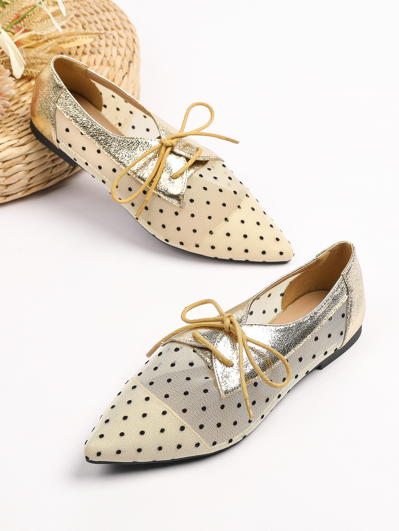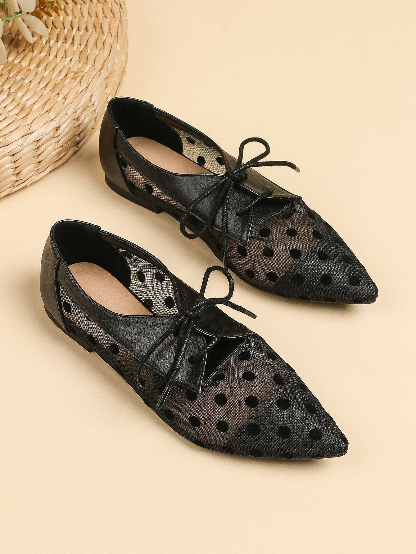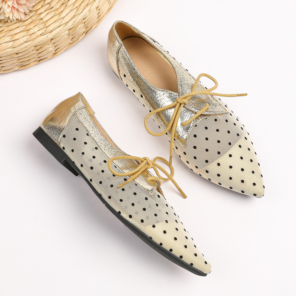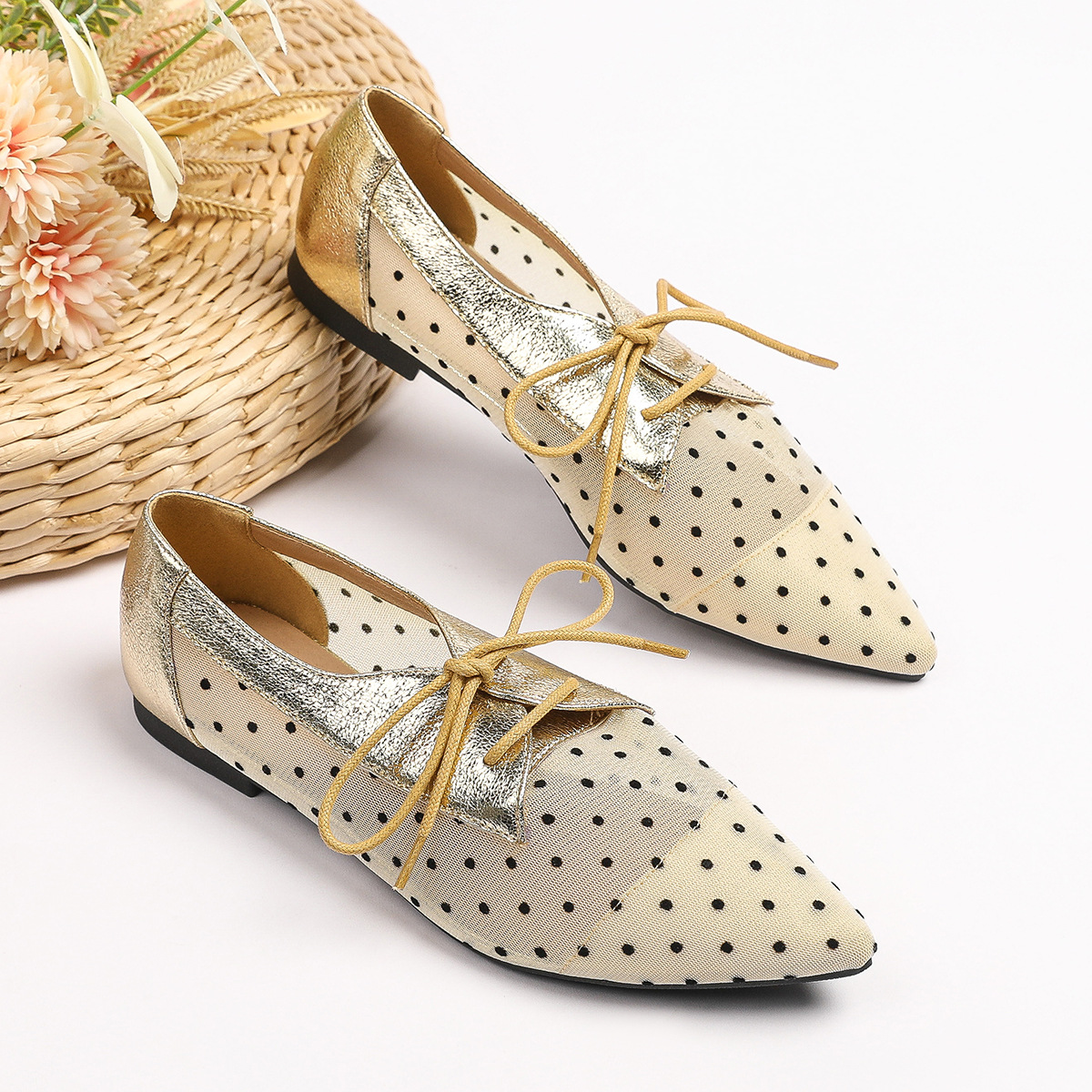 소량 주문 가능 동남아시아 스타일 뾰족코 메쉬 레이스업 플랫 여성화 물방울 무늬 통기성 샌들 대형 사이즈 35-45스토어 가기