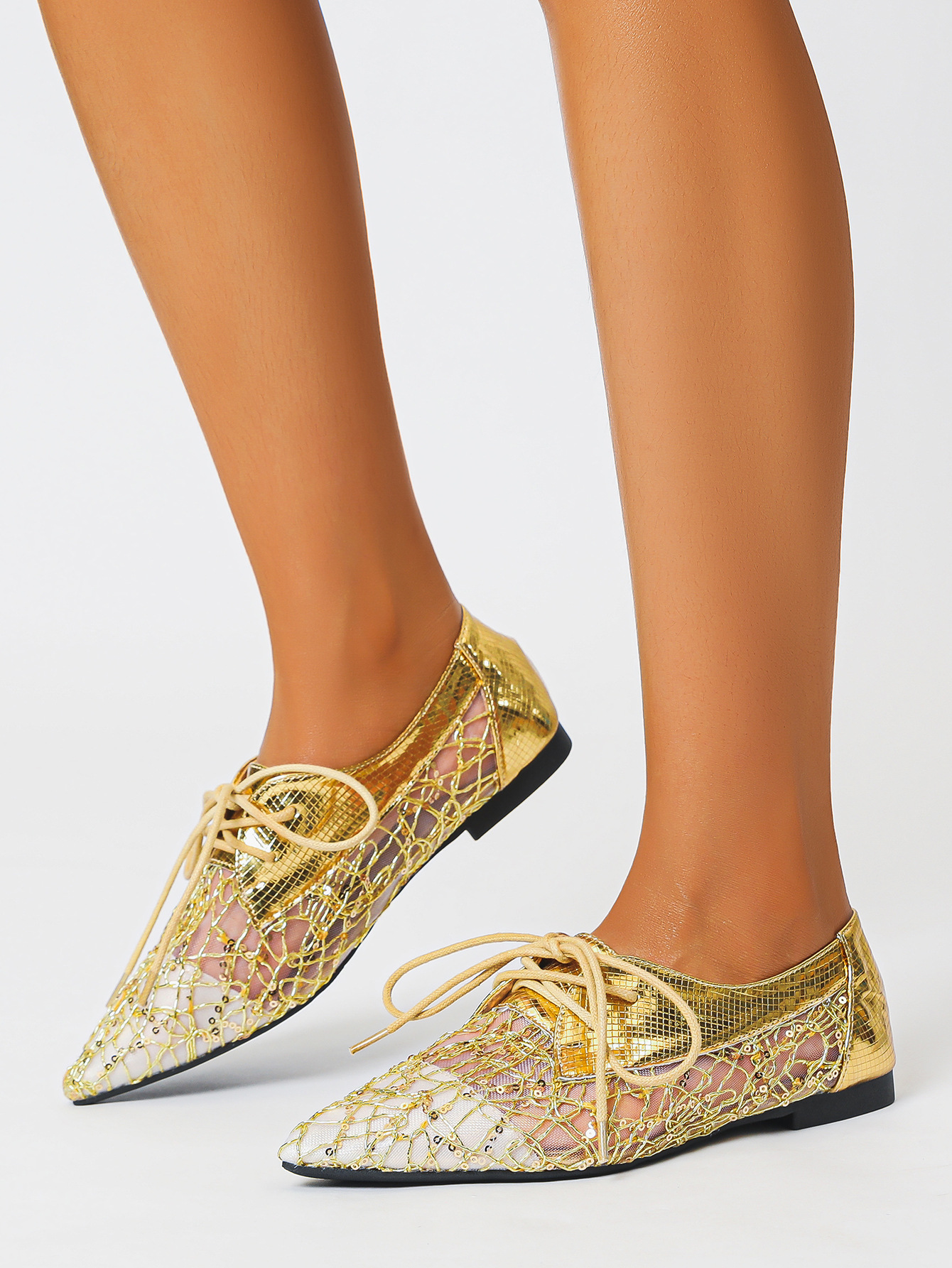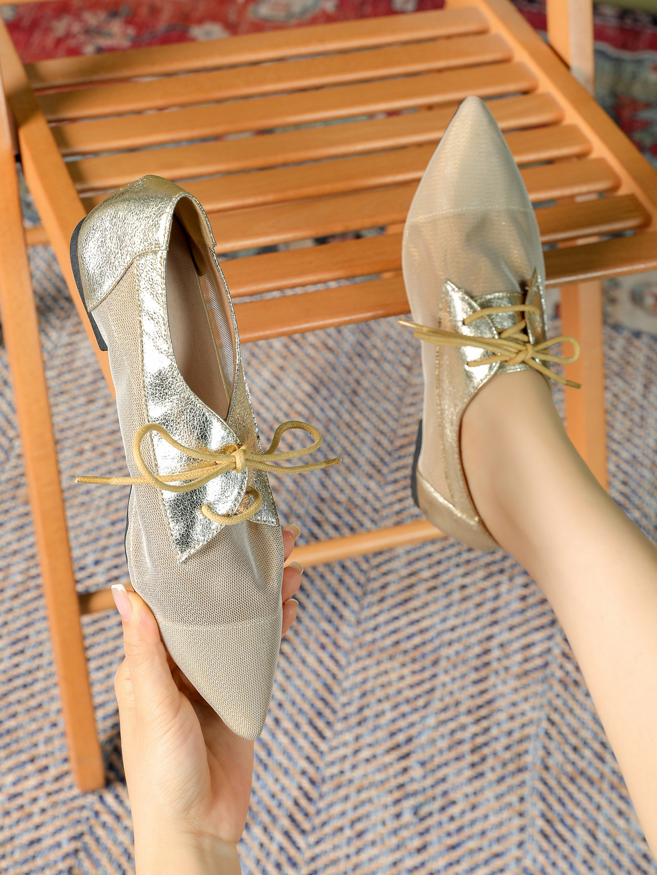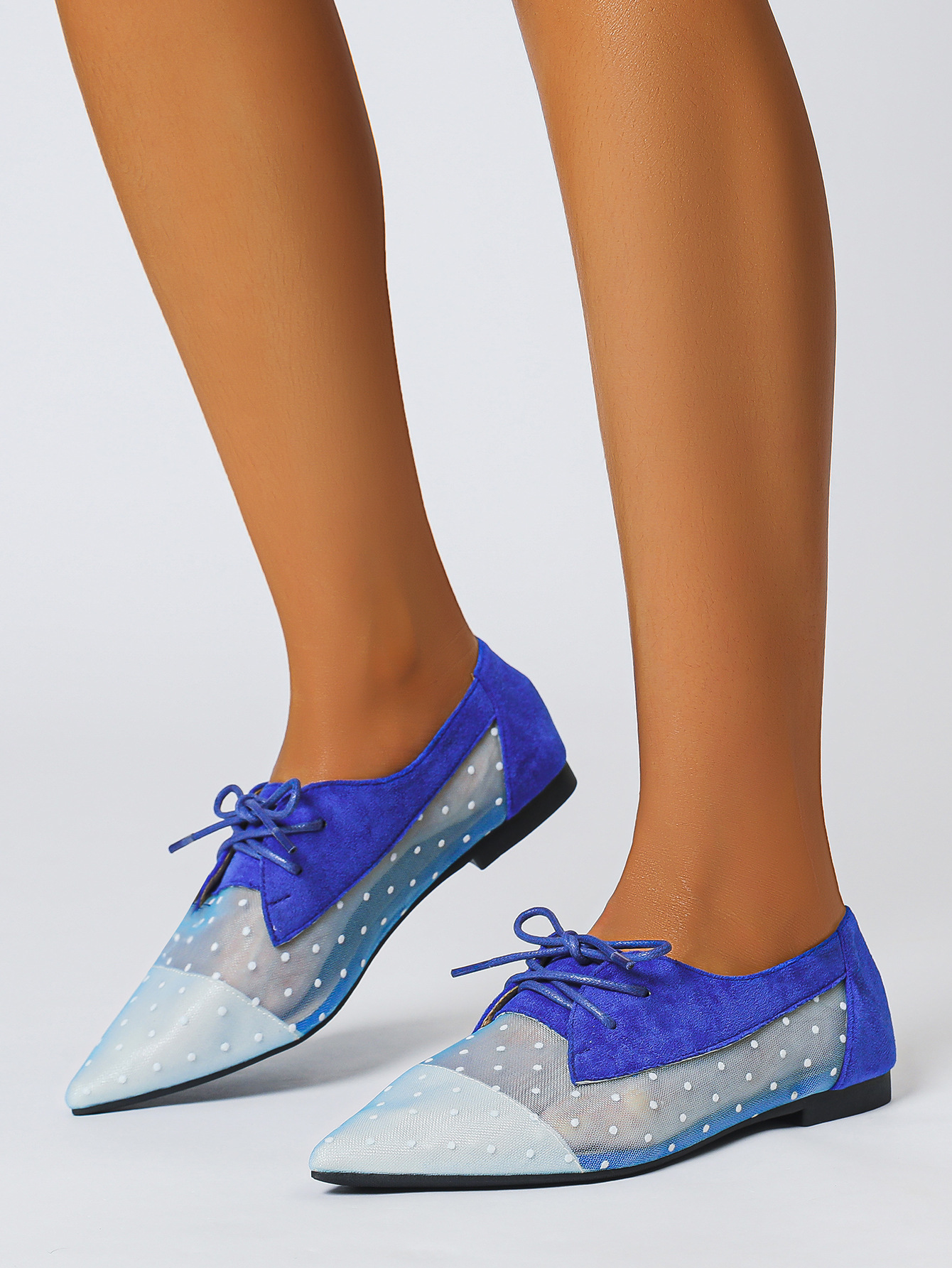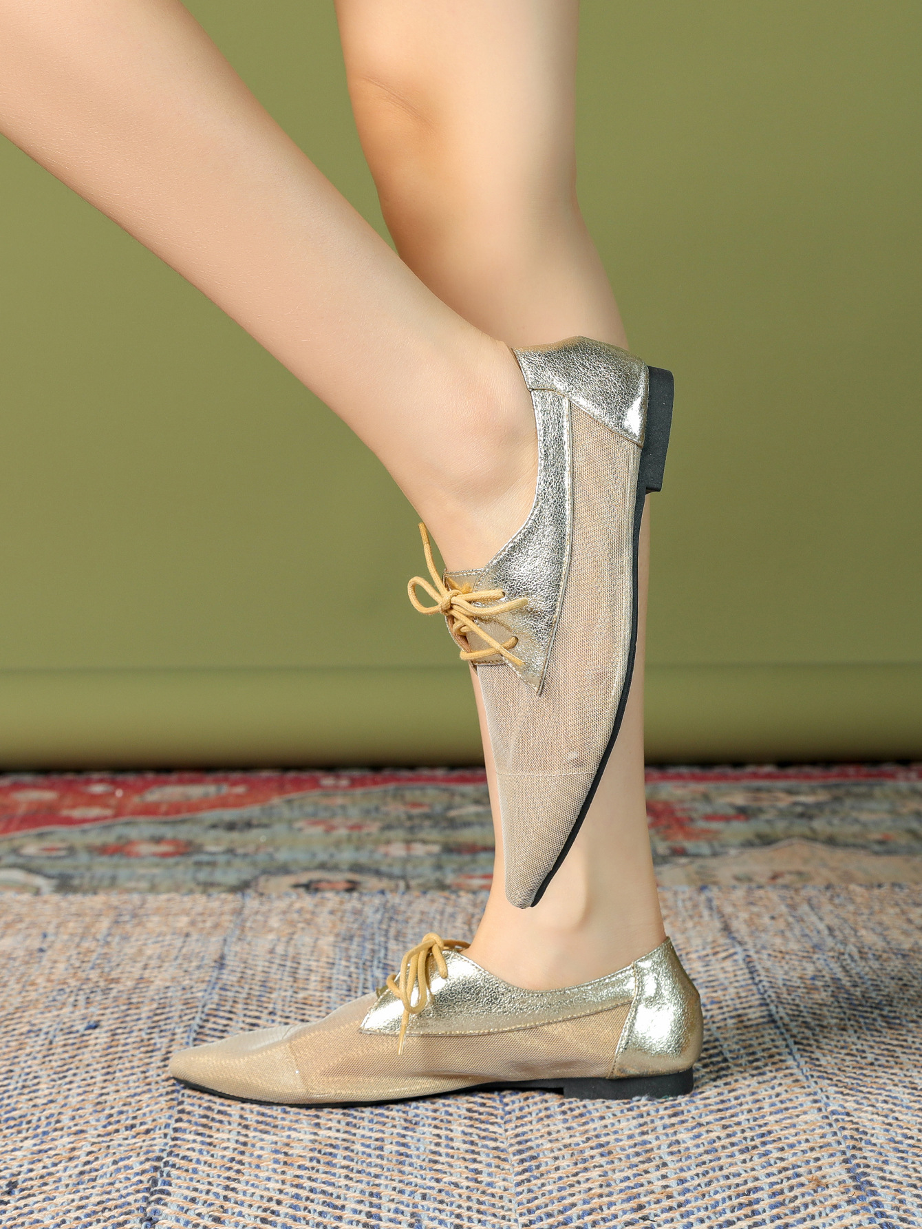 소량 주문 가능 동남아시아 스타일 뾰족코 메쉬 레이스업 플랫 여성화 물방울 무늬 통기성 샌들 대형 사이즈 35-45