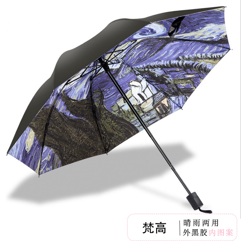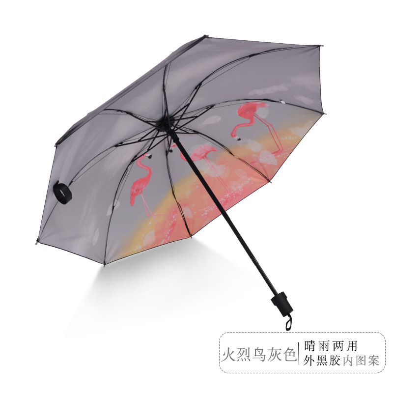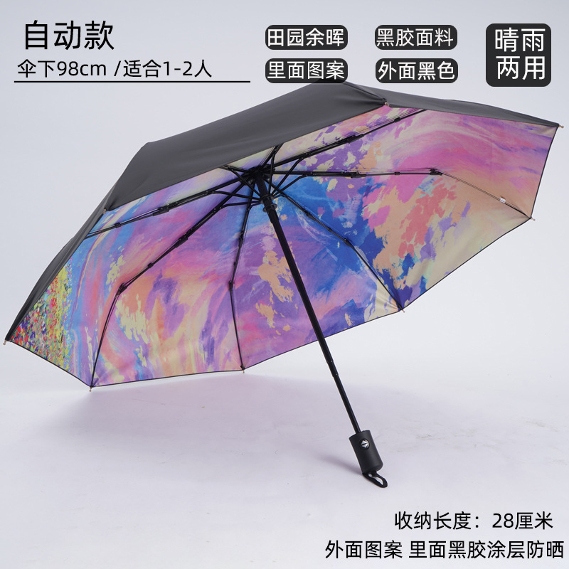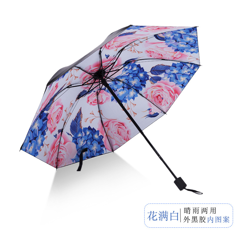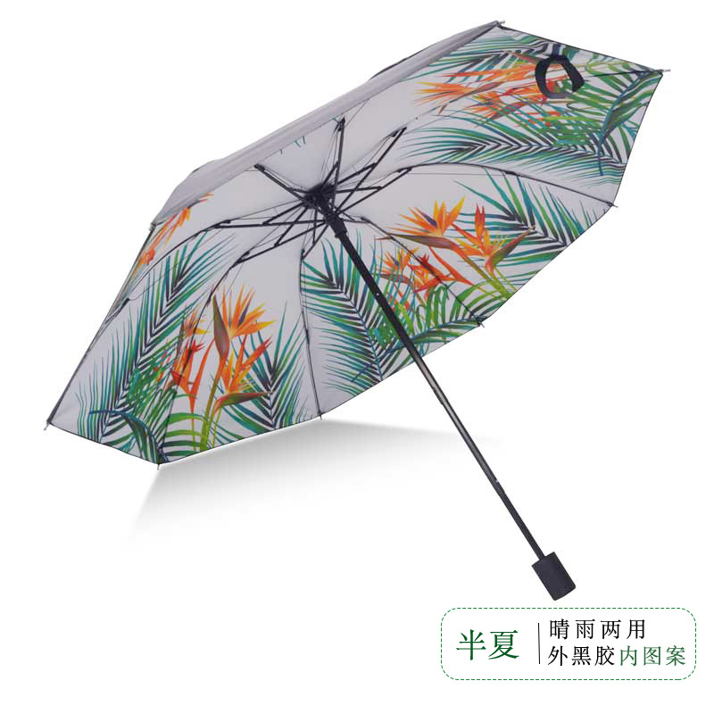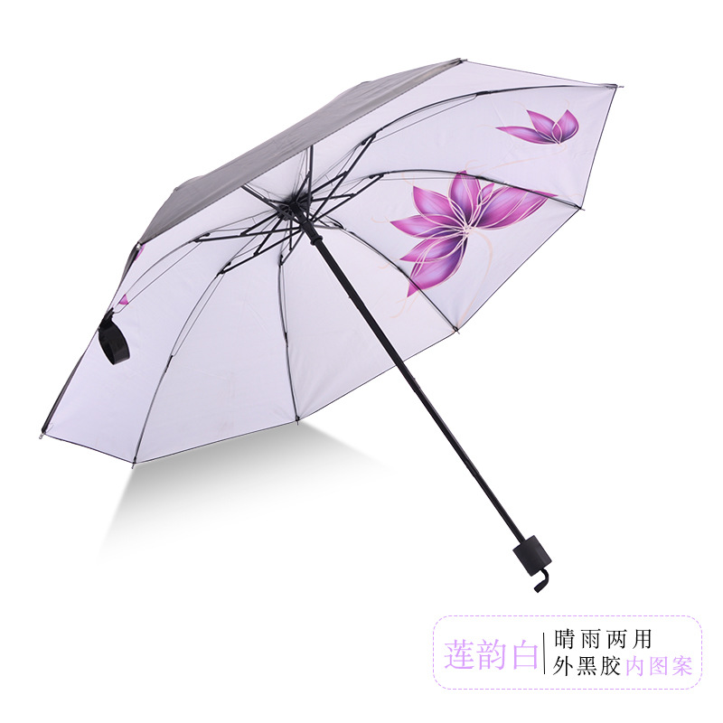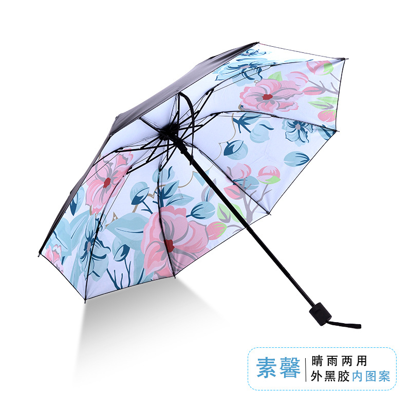 伞的图案在里面,外面是黑色黑胶,防晒涂层,晴雨两用