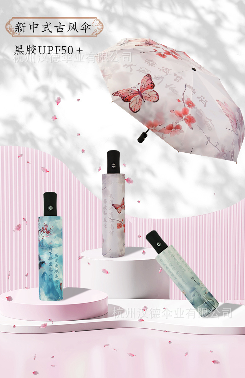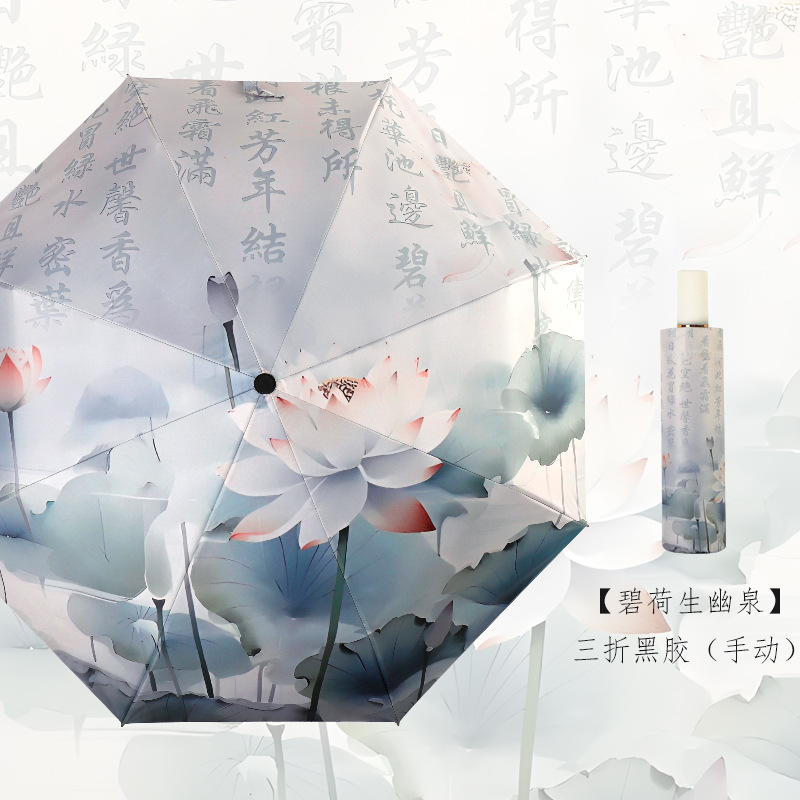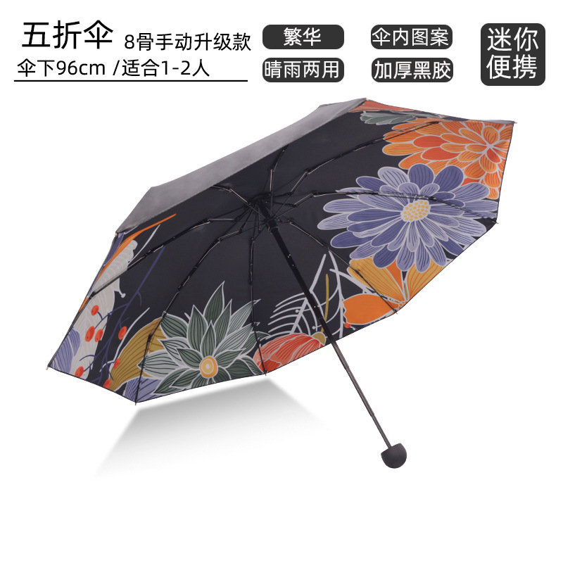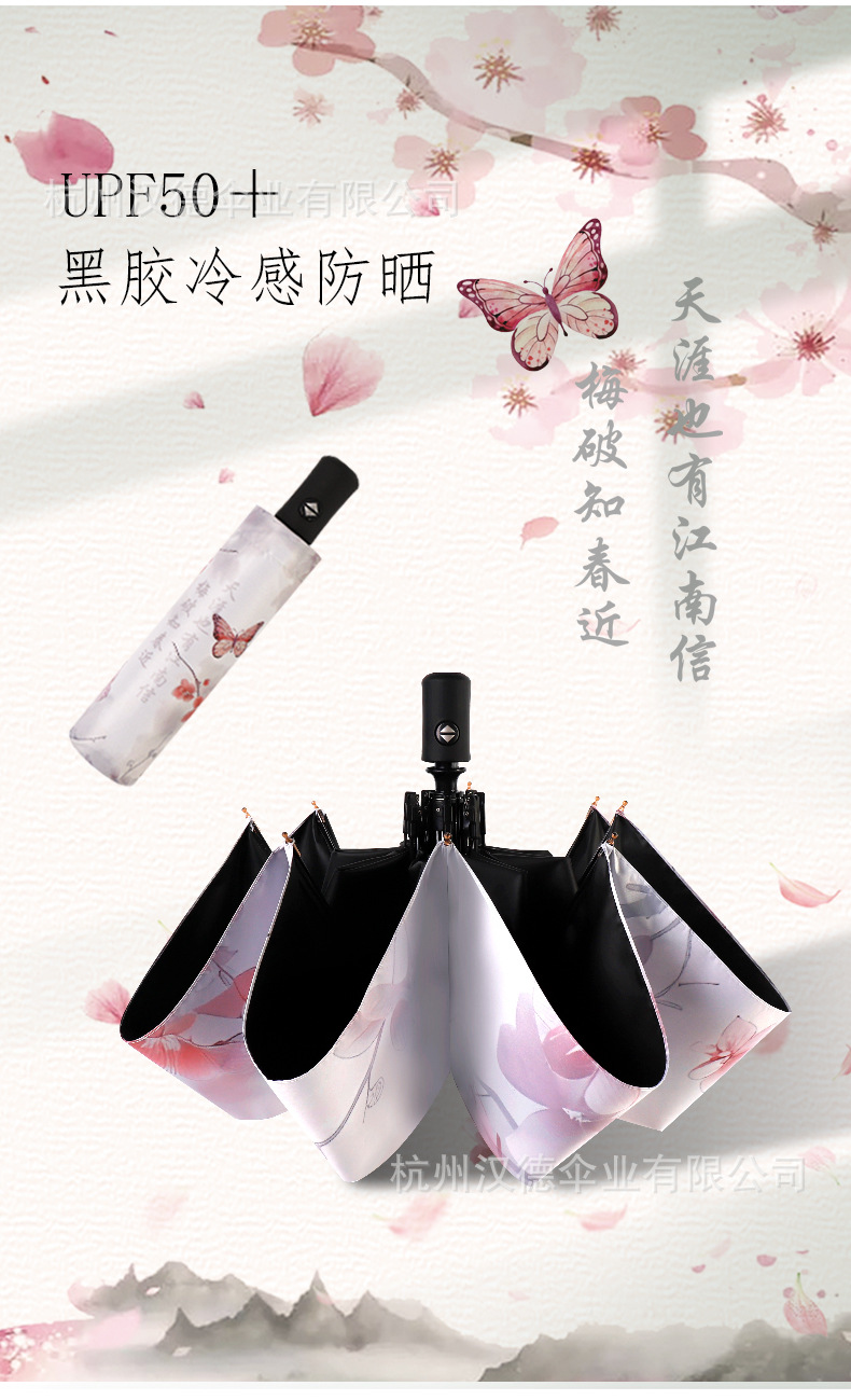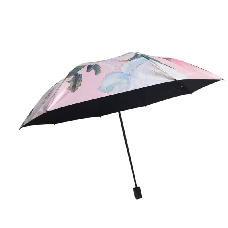 伞的图案在里面,外面是黑色黑胶,防晒涂层,晴雨两用